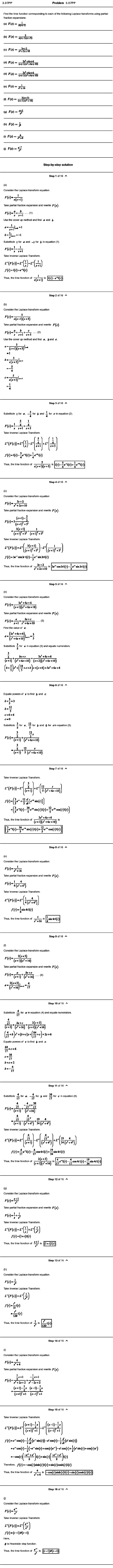 Find the time function corresponding to each of the following Laplace transforms using partial-