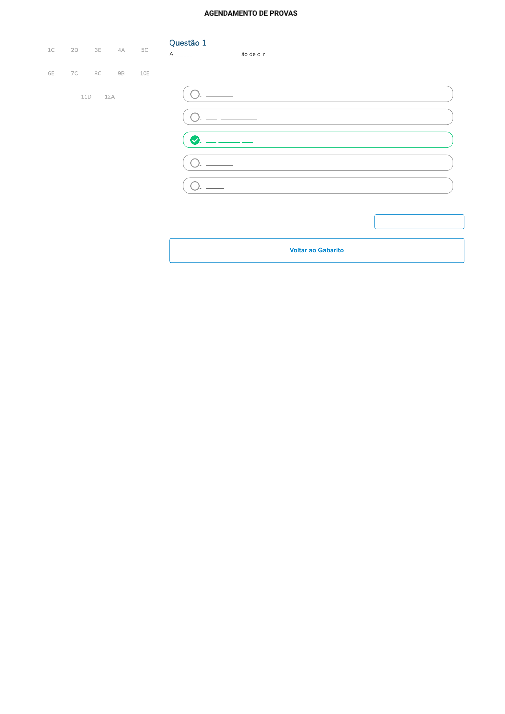 1C 2D 3E 4A 5C 6E 7C 8C 9B 10E 11D 12A Voltar ao Gabarito Questão 1 A ___________ é uma infecção de caráter recorrente. Ocorre presença de pequenas vesículas, acompanhadas de dor e coceira local, que podem aparecer em qualquer parte do corpo, mas são mais comuns nos lábios e na região genital. Complete a lacuna com a patologia correta. A. Resfriado B. Alergia de contato C. Herpes simples D. Contusão E. Úlcera Próxima