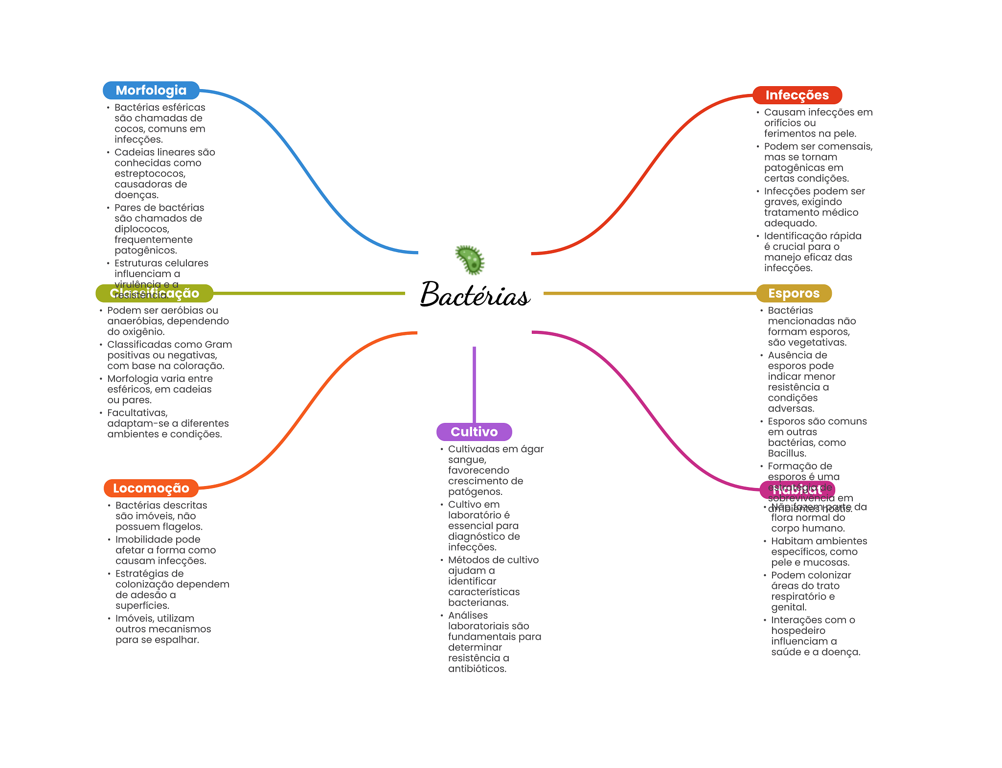 Morfologia Infecções Bactérias esféricas são chamadas de Causam infecções em orifícios ou cocos, comuns em ferimentos na pele. infecções. Podem ser comensais, Cadeias lineares são mas se tornam conhecidas como patogênicas em estreptococos, causadoras de certas condições. doenças. Infecções podem ser Pares de bactérias graves, exigindo tratamento médico são chamados de adequado. diplococos, frequentemente Identificação rápida patogênicos. é crucial para manejo eficaz das Estruturas celulares influenciam a infecções. virulência e a Bactérias Esporos Podem ser aeróbias ou Bactérias anaeróbias, dependendo mencionadas não do oxigênio. formam esporos, Classificadas como Gram são vegetativas. positivas ou negativas, Ausência de com base na coloração. esporos pode Morfologia varia entre indicar menor esféricos, em cadeias resistência a ou pares. condições adversas. Facultativas, adaptam-se a diferentes Esporos são comuns ambientes e condições. Cultivo em outras bactérias, como Cultivadas em ágar Bacillus. sangue, favorecendo Formação de crescimento de esporos é uma Locomoção patógenos. sobrevivencia em Bactérias descritas Cultivo em da são imóveis, não laboratório é flora normal do possuem flagelos. essencial para corpo humano. Imobilidade pode diagnóstico de Habitam ambientes afetar a forma como infecções. específicos, como causam infecções. Métodos de cultivo pele e mucosas. Estratégias de ajudam a Podem colonizar colonização dependem identificar áreas do trato de adesão a características respiratório e bacterianas. genital. Imóveis, utilizam Análises laboratoriais são Interações com outros mecanismos hospedeiro para se espalhar. fundamentais para influenciam a determinar saúde e a doença. resistência a antibióticos.
