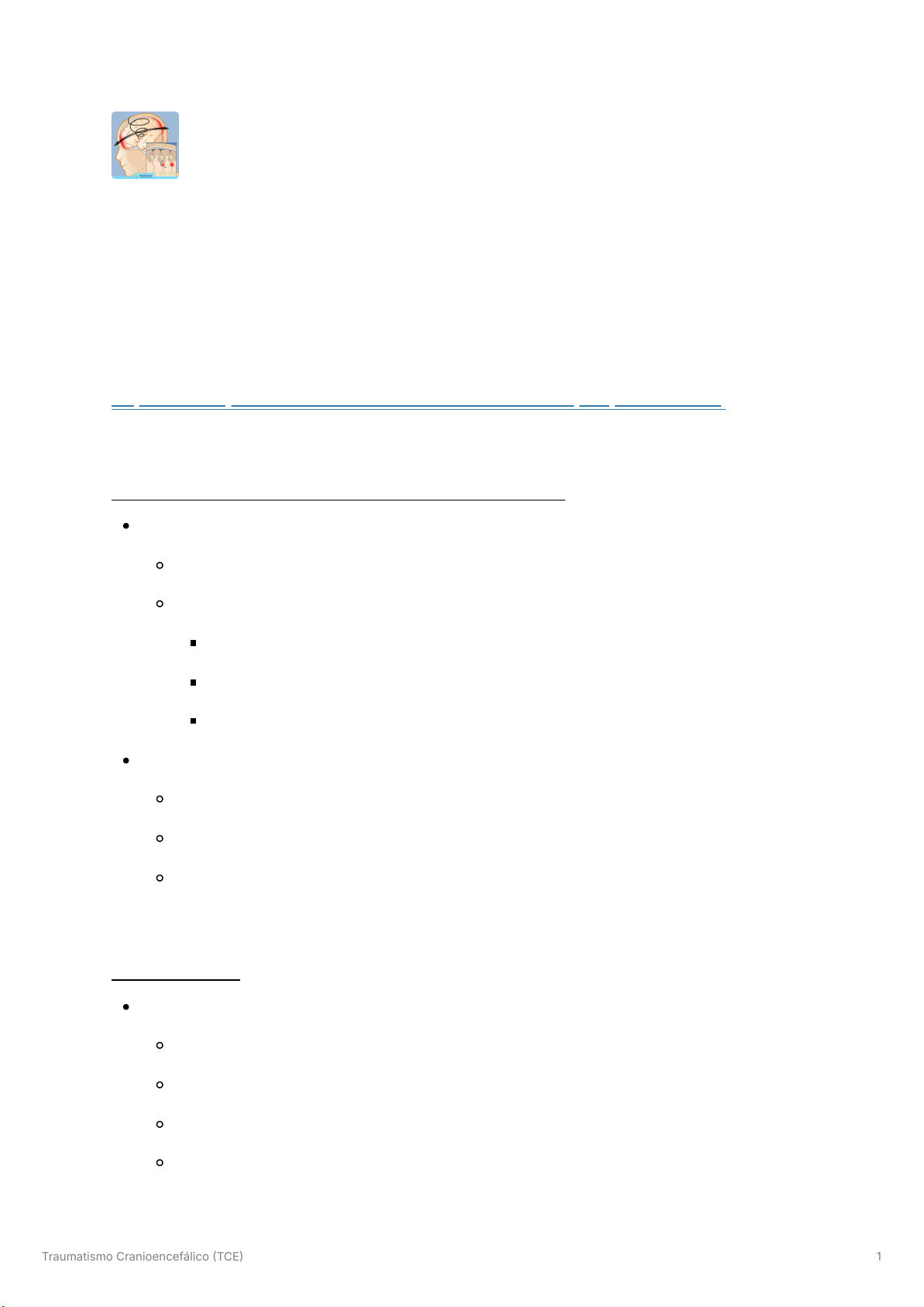 Traumatismo Cranioencefálico TCE 1 Traumatismo Cranioencefálico (TCE) https://www.youtube.com/live/RTGsC1W9kA4?si=R5psSyVD9BIvrwvi > AVALIAÇÃO E CLASSIFICAÇÃO DO TCE inicial ABCDE do trauma ECG 3 a 15p abertura ocular 4p resposta verbal 5p resposta motora 6p classificação de gravidade leve: 1315 mais comum moderado: 912 grave: 8 IOT > TCE LEVE concussão: disfunção cerebral aguda diagnóstico clínico contusão: lesão indentificada na imagem confusão mental + amnésia lacunar RNC, cefaleia, desequilíbrio, náusea, tontura https://www.youtube.com/live/RTGsC1W9kA4?si=R5psSyVD9BIvrwvi Traumatismo Cranioencefálico TCE 2 critérios de gravidade IMG perda de consciência ou amnésia 30 min ECG 15 após 2h do trauma cefaleia grave ou progressiva, sinais neurológicos focais ou crise epiléptica 2 episódios de vômito rigidez de nuca ou limitação na movimentação do pescoço idade 65a sinais de fratura de base/crânio mecanismo de alta energia no trauma Canadian CT Score Rule > TCE MODERADO E GRAVE lesão intracraniana primária: direta, não tem como prevenir secundária: PREVENÇÃO! lesões primárias extra-axiais HED hematoma epidural (extra-dural) HSD hematoma subdural entre dura-máter e aracnoide HSA hemorragia intraventricular intra-axiais contusão/hemorragia intraparenquimatosa LAD lesão axional difusa fraturas Traumatismo Cranioencefálico TCE 3 HEMATOMA EPIDURAL entre dura-máter e crânio ruptura artéria meníngea média trauma de alta energia crescimento em formato de lente biconvexa hipertensão intracraniana > lesões secundárias: isquemia e herniação QC Traumatismo Cranioencefálico TCE 4 intervalo lúcido com rápida deterioração neurológica cefaleia, vômito RNC, convulsão, déficit focal herniação de UNCUS anisocoria (midríase ipsilateral à lesão) + déficit motor contralateral HEMATOMA SUBDURAL ruptura VENOSA veias pontes/superficiais córtex atrofiado formato de “lua crescenteˮ mais comum - traumas de menor energia predomina em idosos evolução aguda: em dias crônica: em semanas cefaleia, convulsão novas déficit focal comprometimento cognitivo TRATAMENTO Traumatismo Cranioencefálico TCE 5 agudo: craniotomia + drenagem crônico: drenagem eletiva ou expectante CONTUSÃO HEMORRAGIA INTRAPARENQUIMATOSA golpe frontal e temporal anterior contra-golpe parietal e occipital imagem: lesão - hipodensidade HIP hiperdensidade TTO observação exceto de sangramento extenso com efeito de massa ou HIP cerebelar LESÃO AXONAL DIFUSA trauma “microscópicoˮ movimentos rotacionais, aceleração e desaceleração acidente automobilístico Traumatismo Cranioencefálico TCE 6 rompimento dos axônios QC RNC SEM INTERVALO LÚCIDO TC “normalˮ pequenas hemorragias não compatível com a gravidade do quadro TTO expectante e suporte FRATURAS CRANIANAS linear: poucas repercussões afundamento: risco de HED exposta: HED infecção base: hemorragia em fossa posterior sinal do guaxinim e Battle rino e otoliquorreia sinal do duplo halo = líquor diferenciar com sangue Traumatismo Cranioencefálico TCE 7 > MANEJO TCE PCO2 3035 mmHg hiperventilação sedação e analgesia cabeceira elevada DVE salina hipertônica ou manitol corticoide proscrito! > TCE EM CRIANÇAS indicação de TC TODAS com ECG 15 e/ou RNC 2a se tiver fratura de crânio palpável 2a se tiver fratura de BASE de crânio síndrome do bebê sacudido bb apático, irritável, letárgico sem sinal de sepse ou outro sistema pode ou não haver sinais externos QC HSD hemorragia retiniana encefalopatia > ANOTAÇÕES DE AULA Traumatismo Cranioencefálico TCE 8 > TOPOGRAFIA pele/scalp periósteo hematoma subgaleal CD GELO! 🧊🧊 osso - fratura: linear: conduta conservadora afundamento exposição de massa óssea: ferimento extenso + perda da continuidade do periósteo + hipertensão intracraniana > MANIFESTAÇÕES CLÍNICAS RNC nível sonolência obnubilação torpor coma conteúdo confusão mental - concussão (desaceleração e aceleração) desorientação amnésia anterógrada e retrógrada reverberação dor NA cabeça cefaleia até 1 semana depois = cefaleia pós-trauma - analgésico e AINE náusea e/ou vômito déficit focal anisocoria Traumatismo Cranioencefálico TCE 9 reação apenas ao estímulo doloroso crise epiléptica ESCALA DE COMA DE GLASGOW ABERTURA OCULAR 4 espontânea 3 comando verbal 2 dor 1 sem resposta MELHOR RESPOSTA VERBAL 5 orientado 4 confuso 3 resposta inapropriada/palavras 2 sons incompreensíveis 1 sem resposta MELHOR RESPOSTA MOTORA 6 obedece 5 retira estímulo doloroso 4 localiza estímulo doloroso - flexão normal - resposta motora inespecífica 3 resposta em flexão - decorticação funciona do mesencéfalo para baixo mesencéfalo: núcleo rubro - flexão de MMSS ECG 4 descerebrado ECG 5 decorticado RESPOSTA PUPILAR pupilas normorreagentes 0 anisocoria = 1 midríase bilateral = 2 GRAVIDADE DO TCE ECG 38p = grave IOT 912p = moderado 1315p = leve Traumatismo Cranioencefálico TCE 10 2 resposta em extensão - descerebração mesencéfalo lesado, funciona da ponte para baixo ponte: extensão de MMSS e MMII 1 sem resposta funciona apenas o bulbo - midriático Bônus EME preferir diazepam: seda menos fenitoína 4 ampolas, se não tiver BIC faz 1 ml/min pode causar flebite dilui em 100 mL SF correr em 90 min HIPERTENSÃO INTRACRANIANA RNC postura patológica anisocoria tríade de Cushing > DIAGNÓSTICOS DIFERENCIAIS FRATURA DE CRÂNIO Traumatismo Cranioencefálico TCE 11 palpação > não precisa do RX TC CONTUSÃO qualquer mecanismo de trauma: alto ou baixo confusão mental, déficit focal CD observação cisternas da base - “prognósticoˮ HEMATOMA EXTRADURAL EPIDURAL trauma de alta energia jovens 40a, homens envelhecimento: dura mater gruda no osso > subdural déficit motor + intervalo lúcido + coma CD CRANIOTOMIA HEMATOMA SUBDURAL AGUDO trauma de alta energia meia idade 4060 anos lesão intraparenquimatosa associada pior prognóstico que o epidural CD CX HEMATOMA SUBDURAL