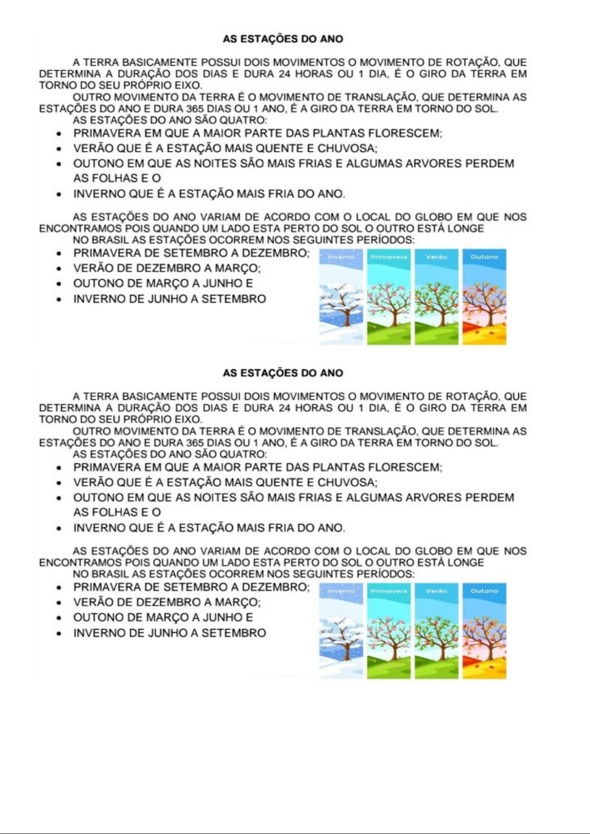 1-As estações do ano acontecem devido à inclinação da terra em relação ao sol. No Brasil, dividimos as mudanças no clima em quatro estações. Quais ...