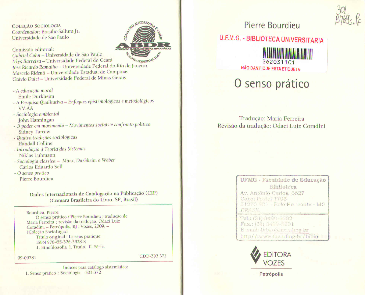 301 COLEÇÃO SOCIOLOGIA Universidade de São Paulo AUTORIZADA Pierre Bourdieu Coordenador: Brasílio Sallum Jr. U.F.M.G. BIBLIOTECA UNIVERSITARIA ABDR Comissão editorial: ASSOCIAÇÃO BRASILEIRA DE DIREITOS REPROGRÁFICOS Gabriel Cohn Universidade de São Paulo Irlys Barreira Universidade Federal do Ceará DIRETTO AUTORAL 262031101 José Ricardo Ramalho Universidade Federal do Rio de Janeiro NÃO DANIFIQUE ESTA ETIQUETA Marcelo Ridenti - Universidade Estadual de Campinas Otávio Dulci Universidade Federal de Minas Gerais senso prático A educação moral Émile Durkheim A Pesquisa Qualitativa Enfoques epistemológicos e metodológicos VV.AA Sociologia ambiental John Hanningan Tradução: Maria Ferreira poder em movimento Movimentos sociais e confronto político Revisão da tradução: Odaci Luiz Coradini Sidney Tarrow Quatro tradições sociológicas Randall Collins Introdução à Teoria dos Sistemas Niklas Luhmann Sociologia clássica Marx, Durkheim e Weber Carlos Eduardo Sell senso prático Pierre Bourdieu UFMG Faculdade de Educação Biblioteca Dados Internacionais de Catalogação na Publicação (CIP) Av. Antônio Carlos, 6627 (Câmara Brasileira do Livro, SP, Brasil) Caixa Postal 1703 31270 Belo Horizonte MG BRASIL Bourdieu, Pierre senso prático / Pierre Bourdieu ; tradução de Tel.: Maria Ferreira ; revisão da tradução, Odaci Luiz Coradini. Petrópolis, RJ : Vozes, 2009. (Coleção Sociologia) E-mail: Título original : Le sens pratique ISBN 978-85-326-3928-8 1. Etnofilosofia I. Título. II. Série. CDD-303.372 EDITORA 09-09781 VOZES Índices para catálogo sistemático: 1. Senso prático : Sociologia 303.372 Petrópolisisso, é preciso retornar à prática, lugar da dialética do opus operatum e do modus operandi, dos produtos objetivados e dos produtos in- corporados da prática histórica, das estruturas e dos 3 Os condicionamentos associados a uma classe particular de condições de existência produzem habitus, sistemas de disposições Estruturas, habitus, práticas duráveis e transponíveis, estruturas estruturadas predispostas a funcionar como estruturas estruturantes, ou seja, como princípios objetivismo constitui mundo social como um espetáculo geradores e organizadores de práticas e de representações que po- oferecido a um observador que adota "um ponto de vista" sobre a dem ser objetivamente adaptadas ao seu objetivo sem supor a inten- ação e que, ao importar ao objeto os princípios de sua relação com ção consciente de fins e domínio expresso das operações necessá- objeto, faz como se estivesse destinado somente ao conhecimento e rias para alcançá-los, objetivamente "reguladas" e "regulares" sem como se todas as interações com ele se reduzissem às trocas simbóli- em nada ser produto da obediência a algumas regras e, sendo tudo cas. Esse ponto de vista é que se adota a partir das posições eleva- isso, coletivamente orquestradas sem ser o produto da ação organi- das da estrutura social de onde mundo social se oferece como uma zadora de um maestro². representação no sentido da filosofia idealista, mas também da pintura e do teatro e de onde as práticas não são senão papéis tea- trais, execuções de partituras ou aplicações de planos. A teoria da prática como prática evoca, contra materialismo positivista, que 1. A atualização dos pressupostos inerentes à construção objetivista se encontrou re- os objetos de conhecimento são construídos, e não passivamente re- tardada, paradoxalmente, pelos esforços de todos os que, em linguística como em an- gistrados e, contra idealismo intelectualista, que princípio dessa tropologia, tentaram "corrigir" modelo estruturalista recorrendo ao "contexto" ou à "situação" para explicar as variações, as exceções e os acidentes (em vez de fazer de- construção é sistema das disposições estruturadas e estruturantes les, como os estruturalistas, simples variantes, absorvidas na estrutura) e que assim que se constitui na prática e que é sempre orientado para funções se economizaram um questionamento radical do modo de pensamento objetivista, práticas. Pode-se, com efeito, com o Marx das Teses sobre Feuerbach, quando simplesmente não caíram na livre escolha de um puro sujeito sem ligações abandonar ponto de vista soberano a partir do qual idealismo nem raízes. Assim, método chamado situational analysis, que consiste em "obser- var as pessoas nas diferentes situações sociais" a fim de determinar "como os indiví- objetivista ordena mundo sem ser obrigado a lhe abandonar as- duos podem exercer escolhas nos limites de uma estrutura social particular" (cf. pecto ativo" da apreensão do mundo ao reduzir conhecimento a GLUCKMAN, M. "Ethnographic data in british social Sociological um registro: basta para isso se situar na "atividade real como tal", ou Review, IX (1), mar./1961, 5-17. VAN VELSEN, J. The Politics of Kinship A seja, na relação prática com mundo, essa presença pré-ocupada e Study in Social Manipulation among the Lakeside Tonga. Manchester: Manchester University Press, 1964 [reed. 1971]) permanece enclausurada na alternativa da regra ativa no mundo pela qual o mundo impõe sua presença, com suas e da exceção, que Leach (muitas vezes invocado pelos adeptos desse método) expri- urgências, suas coisas por fazer ou por dizer, suas coisas feitas para me com muita clareza: "Postulo que os sistemas estruturais nos quais todas as vias de serem ditas, que comandam diretamente os gestos ou as palavras ação social são estritamente institucionalizadas são impossíveis. Em todo sistema viável, sem jamais se revelar como um espetáculo. Trata-se de escapar ao deve existir uma esfera em que indivíduo é livre para escolher de modo a manipular sistema a seu favor" (LEACH, "On certain unconsidered aspects of double descent realismo da estrutura ao qual objetivismo, momento necessário da systems". Man, LXII, 1962, 133). ruptura com a experiência primeira e da