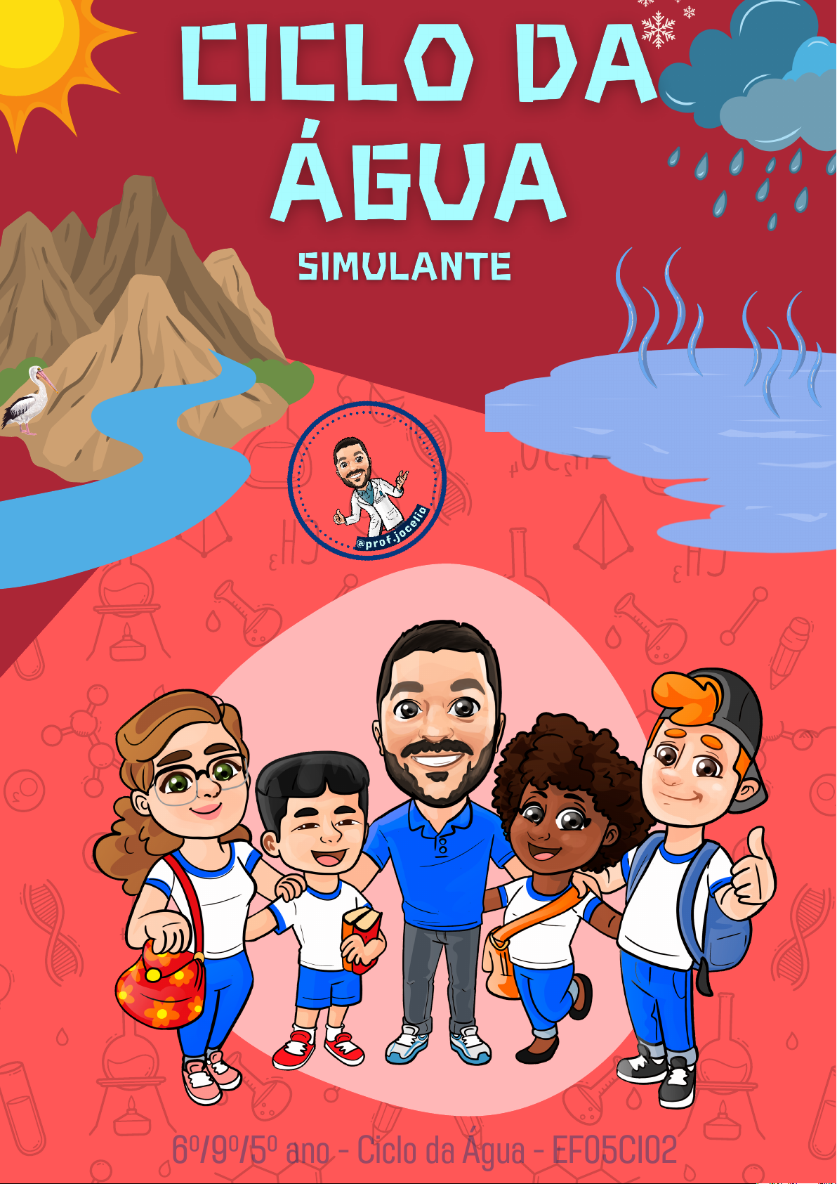 Ciências Anos Finais e Iniciais do EF 6º/9º/5º ano - Ciclo da Água - EF05CI026º/9º/5º ano - Ciclo da Água - EF05CI02 https://novaescola.org.br/planos-de-aula/habilidades/ef05ci02 https://novaescola.org.br/planos-de-aula/habilidades/ef05ci02 https://novaescola.org.br/planos-de-aula/habilidades/ef05ci02 https://novaescola.org.br/planos-de-aula/habilidades/ef05ci02 https://novaescola.org.br/planos-de-aula/habilidades/ef05ci02 https://novaescola.org.br/planos-de-aula/habilidades/ef05ci02 https://novaescola.org.br/planos-de-aula/habilidades/ef05ci02 https://novaescola.org.br/planos-de-aula/habilidades/ef05ci02 Ciências: Anos Finais e Iniciais do EF Unidade Temática (EF05CI02:) Aplicar os conhecimentos sobre as mudanças de estado físico da água para explicar o ciclo hidrológico e analisar suas implicações na agricultura, no clima, na geração de energia elétrica, no provimento de água potável e no equilíbrio dos ecossistemas regionais (ou locais). Vida e Evolução Anos: 6º/5º/9º ano Ciclo da Água Objeto de Conhecimento Habilidade(s) https://novaescola.org.br/planos-de-aula/habilidades/ef05ci02 ow PROIBIDO: Compartilhar em redes sociais ou em drive. PROIBIDO: vender ou distribuir para amigos ou colegas. o que pode ? o que não pode ? Imprimir e utilizar para uso pessoal; Utilzar em sala de aula de forma física e digital. Todo o conteúdo deste arquivo está protegido pela Lei Nº 9610/98 que consolida a legislação sobre direitos autorais. @prof.jocelio CICLO DA ÁGUA Simulante Cola Aqui Cola Aqui Cola Aqui Cola Aqui @prof.jocelio CICLO DA ÁGUA Simulante CONDENSAÇÃO EVAPORAÇÃO PRECIPITAÇÃO TRANSPIRAÇÃO INFILTRAÇÃO Cola Aqui @prof.jocelioCICLO DA ÁGUA Simulante Cola Aqui Cola Aqui Cola Aqui CONDENSAÇÃO PRECIPITAÇÃO EV AP OR AÇ ÃO TRANSPIRAÇÃO Cola Aqui INFILTRAÇÃO Cola Aqui @prof.jocelio CICLO DA ÁGUA Simulante Cola Aqui Cola Aqui Cola Aqui CONDENSAÇÃO PRECIPITAÇÃO EV AP OR AÇ ÃO TRANSPIRAÇÃO Cola Aqui INFILTRAÇÃO @prof.jocelio RESUMÃO DO CICLO DA ÁGUA Ciclo da Água EVAPORAÇÃO TRANSPIRAÇÃO CONDENSAÇÃO PRECIPTAÇÃO FILTRAÇÃO ________________________________________________________________________ ________________________________________________________________________ _______________________________________________________________________ _______________________________________________________________________ _______________________________________________________________________ _______________________________________________________________________ ________________________________________________________________________ ________________________________________________________________________ ___________________________________________________________________________ _________________________________________________________________________ @prof.jocelio Ciclo da Água EVAPORAÇÃO TRANSPIRAÇÃO CONDENSAÇÃO PRECIPTAÇÃO FILTRAÇÃO @prof.jocelio EVAPORAÇÃO CONDENSAÇÃO PRECIPITAÇÃO TRANSPIRAÇÃO FILTRAÇÃO é a primeira etapa, é a mudança da água do estado líquido para o gasoso. Na hidrosfera as águas dos oceanos absorvem energia térmica do sol e mudam para o estado gasoso. quando vapor d’água chega à atmosfera ocorre a condensação – a água volta para o estado líquido. A formação das nuvens ocorre pela aproximação das gotículas de água, pois em elevadas altitudes a temperatura é menor. é a transformação de água líquida em vapor d'água . A água sai das plantas pelas folhas, que possuem aberturas muito pequenas e liberam a água excedente, já que é nessa parte da planta que a água é direcionada para participar da fotossíntese. é como a água cai na superfície da Terra, chuva, neve ou granizo. Os vapores de água condensados na atmosfera retornam para a Terra pelas mudanças de temperatura e ação do vento. quando a chuva cai, a água pode seguir diferentes caminhos dependendo de onde ocorreu a precipitação, pode ser absorvida pelas plantas, escoar para rios e lagos, pode infiltrar. ACESSE: @PROF.JOCELIO VAMOS ADQUIRIR TAMBÉM !? CLIQUE AQUI https://profjocelio.com.br/produto/super-combo-recursos-2023/ https://profjocelio.com.br/produto/super-combo-recursos-2023/
