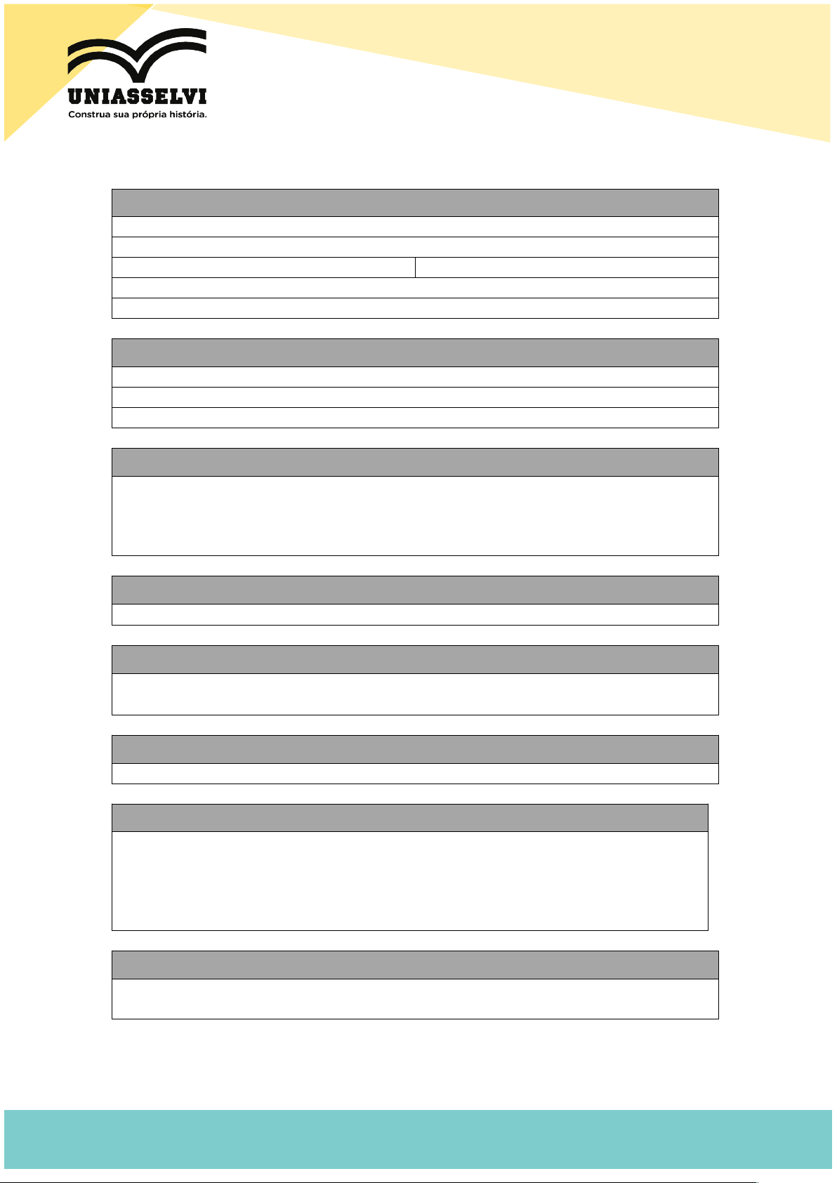 CENTRO UNIVERSITÁRIO LEONARDO DA VINCI NÚCLEO DE EDUCAÇÃO A DISTÂNCIA - NEAD RELATÓRIO DE PRÁTICA VIRTUAL E POLO HUB IDENTIFICAÇÃO 1. Acadêmico: 2. Matrícula: 3. Curso: ENFERMAGEM 4. Turma: 5. Disciplina: ASSISTENCIA DE ENERMAGEM 6. Tutor(a) Externo(a): DADOS DA PRÁTICA 1. Título: AULA PRÁTICA SONDAGEM VESICAL 2. Semestre: 4º SEMESTRE 3. Data: INTRODUÇÃO Apresente aqui uma breve introdução sobre o assunto abordado durante a prática. Escreva até 2 parágrafos e considere toda a parte inicial da prática. Não esqueça de citar autores para embasar sua introdução. OBJETIVOS · Identifique os objetivos através de tópicos. MATERIAIS · Insira aqui todas as vidrarias, equipamentos e reagentes utilizados ao longo da prática. METODOLOGIA Insira o passo a passo para a realização da prática. RESULTADOS E DISCUSSÕES Discuta todos os dados obtidos ao longo da prática. Neste espaço você pode abordar os questionamentos que são propostos na seção “Avaliação de Resultados” que é apresentada no roteiro da prática virtual. Não esqueça de destacar se os objetivos foram atingidos e as dificuldades encontradas. REGISTRO FOTOGRÁFICO Durante a prática realize 1 registro fotográfico em que você aparece executando a prática. Você pode tirar um selfie. REFERÊNCIAS Insira aqui as referências usadas para desenvolver seu relatório. image1.png image2.png