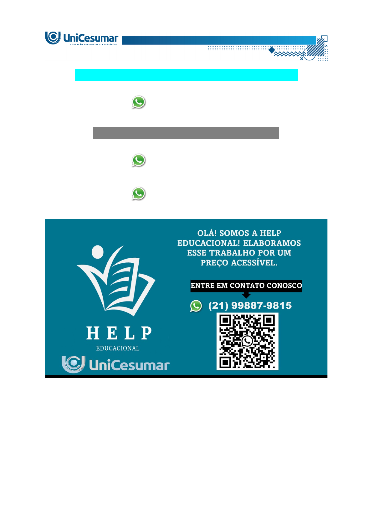 OLÁ! SOMOS A HELP EDUCACIONAL! ELABORAMOS ESSE TRABALHO POR UM PREÇO ACESSÍVEL.