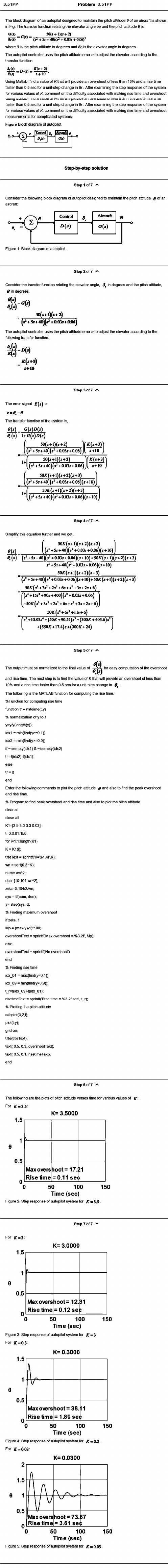 Figure 4; Step response of autopilot system for K — 03-
