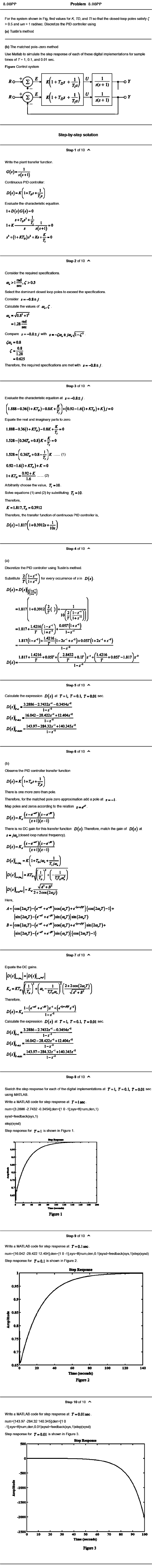 > 0.5 and wn > 1 rad/sec. Discretize the PID controller using