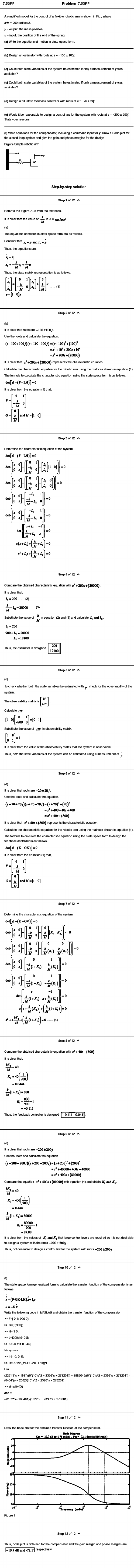 (f) Write equations for the compensator, including a command input for y. Draw a Bode plot for