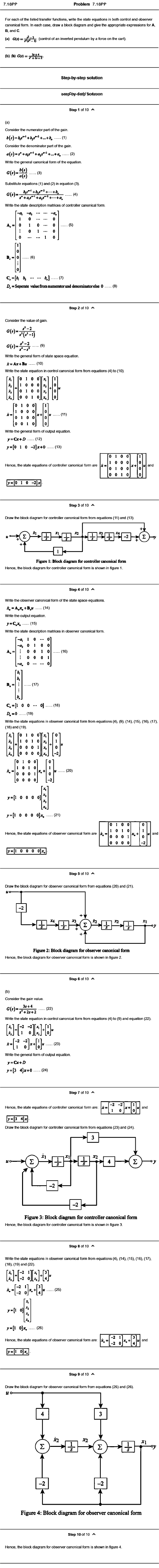 For each of the listed transfer functions, write the state equations in both control and observer