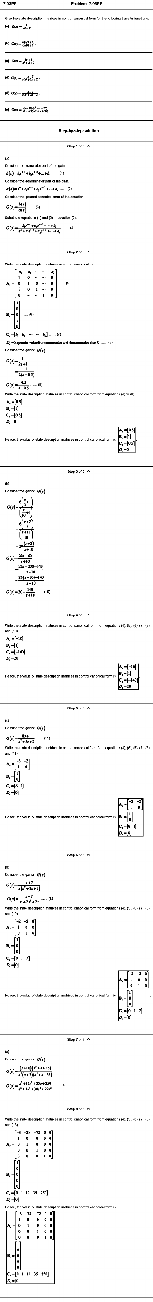 Write the state description matrices in control canonical form.