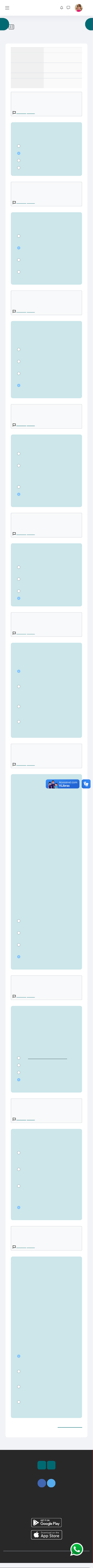 QUESTIONÁRIO 02 Situação Finalizada Iniciado sexta-feira, 6 mar. 2026, 03:40 Concluído sexta-feira, 6 mar. 2026, 03:46 Duração 6 minutos 7 segundos Nota 20,00 de um máximo de 20,00(100%) Questão 1 Completo Atingiu 2,00 de 2,00 Marcar questão Questão 2 Completo Atingiu 2,00 de 2,00 Marcar questão Questão 3 Completo Atingiu 2,00 de 2,00 Marcar questão Questão 4 Completo Atingiu 2,00 de 2,00 Marcar questão Questão 5 Completo Atingiu 2,00 de 2,00 Marcar questão Questão 6 Completo Atingiu 2,00 de 2,00 Marcar questão Questão 7 Completo Atingiu 2,00 de 2,00 Marcar questão Questão 8 Completo Atingiu 2,00 de 2,00 Marcar questão Questão 9 Completo Atingiu 2,00 de 2,00 Marcar questão Questão 10 Completo Atingiu 2,00 de 2,00 Marcar questão Terminar revisão Fornecido por Moodle --> Escolha uma opção: São determinantes do empreendedorismo, EXCETO: a. Planejamento. b. Análise. c. Coerência. d. Acompanhamento e controle. Escolha uma opção: São exemplos de negócios com sazonalidade bem deUnida: a. Animais de estimação, móveis, livros. b. Sorveterias, hotéis de praia, materiais escolares. c. Automóveis, televisores, computadores. d. Roupas, alimentos, materiais esportivos. Escolha uma opção: Integridade, liderança, visão de oportunidade, comunicação e relacionamento são: a. Características comuns apenas aos intraempreendedores. b. Características comuns apenas a alguns empreendedores. c. Características comuns apenas aos empreendedores natos. d. Características comuns a todos os empreendedores. Escolha uma opção: Correr riscos calculados diz respeito a: a. Contratar as pessoas certas para os cargos. b. Colaborar com os empregados ou se colocar no lugar deles, se necessário, para terminar um trabalho. c. Não correr riscos. d. Avaliar alternativas e calcular riscos deliberadamente. Escolha uma opção: Que fator representa a medida direta do sucesso de um negócio? a. O sucesso de seus colaboradores. b. A imagem da empresa perante o mercado. c. O número de clientes. d. A lucratividade. Escolha uma opção: NÃO representa uma consequência da implantação da responsabilidade social nas empresas: a. Diminuição da lucratividade. b. Ganho de imagem perante os consumidores. c. Maior atração de investidores. d. Maior Udelização dos clientes. Escolha uma opção: Leia as aUrmativas sobre empreendedorismo corporativo, segundo Hashimoto, e, em seguida, marque a alternativa CORRETA: I. Muitas vezes um problema grave da organização serve como estopim para a revisão de paradigmas e pressupostos que levam a um processo de ruptura e busca de novos conceitos que aumentam a competitividade e a eUcácia. II. Permitir que as pessoas tenham a liberdade de conduzir iniciativas pessoais e não só ignorar os fracassos daí decorrentes, mas incentivar o erro como processo de aprendizado deve ser evitado em qualquer empresa. III. Há uma necessidade crescente de promover uma cultura interna de inovação como fonte de competitividade, evidenciando que as cabeças pensantes dos departamentos de P&D (Pesquisa e Desenvolvimento) não estão dando conta da demanda por novidades e melhorias nos produtos e serviços oferecidos ao mercado. a. Todas as alternativas são verdadeiras. b. Apenas a aUrmativa II é verdadeira. c. Apenas a aUrmativa I é verdadeira. d. Apenas as aUrmativas I e III são verdadeiras. Escolha uma opção: DeUnir o negócio é a questão estratégica mais importante e deve ser de responsabilidade da diretoria da organização, uma vez que se criará o contexto dentro do qual todas as demais questões estratégicas deverão ser consideradas. É CORRETO dizer que a deUnição do negócio: a. Nenhuma das alternativas. b. Deve ser ampla. c. Deve ser restrita. d. Não deve ser ampla e nem restrita. Escolha uma opção: Os empresários responsáveis agem da seguinte maneira, EXCETO: a. Preocupam-se com a saúde, a segurança e o bem-estar geral de trabalhadores e consumidores. b. Tratam os clientes, os parceiros comerciais e os concorrentes com indiferença e apatia. c. Motivam os seus trabalhadores, proporcionando-lhes formação e oportunidades de desenvolvimento. d. Agem como bons cidadãos na comunidade local. Escolha uma opção: Analise as aUrmativas abaixo, marque V para verdadeira, F para falsa e, em seguida, assinale a alternativa CORRETA: ( ) O Instituto Brasileiro do Meio Ambiente (IBAMA), por ser uma organização sem Uns lucrativos, pertence ao terceiro setor. ( ) Igrejas e instituições religiosas, no Brasil, pertencem a primeiro setor. ( ) O Greenpeace é uma associação que tem em seu escopo defender o meio ambiente e pertence ao terceiro setor. ( ) É comum no Brasil e no mundo que organizações do terceiro setor Unanciem projetos do segundo setor. a. F F V F. b. F V F V. c. F F V V. d. V F V F. Entre em contato ! ✉ Siga nossas redes sociais Você acessou como Raílla Alves de Souza (Sair) Baixar o aplicativo móvel. Mudar para o tema recomendado para o seu dispositivo Baixar o aplicativo móvel. 〈 ! 06/03/2026, 3:47 AM Página 1 de 1