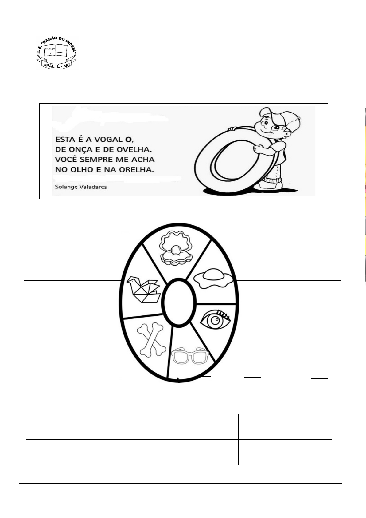 ESCOLA ESTADUAL “BARÃO DO INDAIÁ” Endereço: Rua DR ANTONIO AMADOR, 639 – CENTRO – ABAETÉ -MG PROJETO LER E ESCREVER 4º GUIA ORTOGRÁFICO - O o Escreva o nome dos desenhos: Banco de palavras: ônibus onça ontem onze oca orelha óleo ótimo oito oceano onda ouro image1.emf image2.jpeg image3.png image4.png