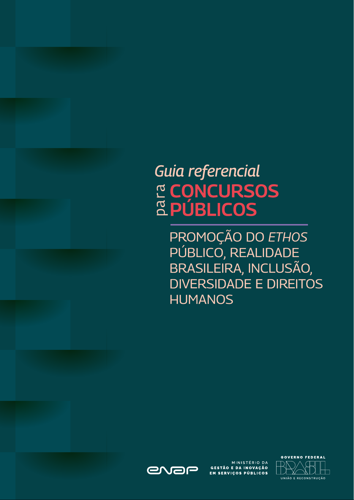 Aviso! Esta obra da Escola Nacional de Administração Pública está licenciada com uma Licença Creative Commons Atribuição-NãoComercial-SemDerivações 4.0 Internacional. Enap SAIS – Área 2-A – 70610-900 Brasília-DF, Brasil Ficha catalográfica elaborada pela equipe da Biblioteca Graciliano Ramos da Enap _______________________________________________________________________ G9431 Guia referencial para concursos públicos: promoção do ethos público, realidade brasileira, inclusão, diversidade e direitos humanos / Alexandre de Ávila Gomide… [et al.]. -- Brasília: Enap; MGI, 2023. 188 p. : il. Inclui bibliografia ISBN: 978-65-87791-35-7 1. Serviço Público. 2. Concurso Público. 3. Capacitação. 4. Gestão de Pessoas. I. Título. II. Gomide, Alexandre de Ávila. CDD 331.795 ______________________________________________________________ Bibliotecária: Tatiane de Oliveira Dias – CRB1/2230 https://creativecommons.org/licenses/by-nc-nd/4.0/deed.pt_BR https://creativecommons.org/licenses/by-nc-nd/4.0/deed.pt_BR Escola Nacional de Administração Pública – Enap Presidenta Betânia Lemos Diretora Executiva Natália Teles da Mota Diretor de Altos Estudos Alexandre de Ávila Gomide Diretora de Educação Executiva Iara Cristina da Silva Alves Diretor de Desenvolvimento Profissional Braulio Figueiredo Alves da Silva Diretor de Gestão Interna Lincoln Moreira Jorge Junior Diretora de Inovação Camila Medeiros Autores Alexandre de Ávila Gomide Bruno de Paula Moraes Carlos Uchôa Frederico de Morais Andrade Coutinho Gabriela Lotta José Celso Cardoso Júnior Luiz Coimbra Barbosa Maria Aparecida Chagas Ferreira Paula Tereza de Carvalho Penha Rafael Vieira Fernandes de Castro Leitura e revisão crítica Adriana Avelar Alves Adriana Schelb da Rocha Alexandre de Ávila Gomide Ana Cláudia Alves de Medeiros Silva Anna Paula Feminella Antonio Fiuza Barbara Cristina da Silva Monteiro Carlos Uchôa Cecília Nayara Rosa Morais Cilair Rodrigues de Abreu Cynthia Beltrao De Souza Guerra Curado Cristina Kiomi Mori Danilo Bertazzi Danilo Ferreira Delton Aparecido Felipe Diogo Lima Douglas Andrade da Silva Eduardo Gomor dos Santos Elaine Barbosa Fabiany Glaura Alencar e Barbosa Felix Garcia Lopez Fernando André Santana de Souza Fernando de Souza Coelho Frederico de Morais Andrade Coutinho Gabriela Lotta Henrique Cunha Pimentel Filho Escola Nacional de Administração Pública – Enap Henrique Glaeser Iara Cristina da Silva Alves Iraneide Soares da Silva Isis Dantas Menezes Zornoff Taboas Janira Trípodi Borja José Celso Cardoso Júnior Luiz Coimbra Barbosa Marcelo Henrique Romano Tragtenberg Márcia Regina de Lima Silva Marco Aurelio Alves Da Cruz Marcos Guillen Esteves Maria Aparecida Chagas Ferreira Maria da Penha Barbosa da Cruz Maria Luiza Rodrigues de Aquino Marilene Ferrari Lucas Alves Filha Otto Vinicius Agra Figueiredo Paula Tereza de Carvalho Penha Raul de Paiva Santos Renata Florez Rocha Roberta Tiemi Saita Roseli Faria Sales Augusto dos Santos Sheila Cristina Tolentino Barbosa Tatiana Dias Silva Thais Lemos Ribeiro Thiago Bezerra Vilar Escola Nacional de Administração Pública – Enap Organização Ana Cláudia Alves de Medeiros Silva Maria Aparecida Chagas Ferreira Thiago Bezerra Vilar Revisão gramatical Marina Vieira Marinho Desenho instrucional Priscila Campos Pereira Capa, projeto gráfico e editoração eletrônica Amanda Soares Moreira Editoração eletrônica Haruo Silva Takeda Sumário Apresentação ......................................7 Antes do Concurso Público ........12 Durante o Concurso Público ......23 Depois do Concurso Público ......89 Para Consultar ................................95 Apresentação Tenho a satisfação de apresentar este Guia Referencial para Concursos Públicos: promoção do ethos público, realidade brasileira, inclusão, diversidade e direitos humanos. Um trabalho realizado em parceria, escuta ativa e colaboração voluntária entre dezenas de pessoas de importantes instituições como: Enap, Ipea, Fundação Getúlio Vargas, República.org, Universidade do Estado do Rio Grande do Norte, Universidade Federal do ABC, Universidade Federal de Ouro Preto, Instituto de Estudos Sociais e Políticos da Universidade do Estado do Rio de Janeiro, Casa Civil, Ministério da Igualdade Racial, Ministério da Justiça e Segurança Pública, Ministério do Planejamento e Orçamento, Ministério dos Povos Indígenas, Ministério das Mulheres, Ministério dos Direitos Humanos, e Associação Brasileira de Pesquisadores Negros. Como ponto de partida, a constatação de que concursos públicos no Brasil são a primeira e mais importante etapa de contratação de pessoas a partir das quais todas e quaisquer ações de governo podem se realizar. Nesse sentido, muito ao contrário de poder ser considerada uma etapa meramente burocrática da gestão pública, trata- se de um momento dos mais estratégicos para o sucesso de qualquer projeto de Estado voltado ao desenvolvimento nacional. Deste modo, depois de uma forte queda no número de vagas em concursos e provimentos de servidores públicos federais no período compreendido entre 2016 e 2022, o Governo Federal autorizou mais de 10 mil vagas em 2023, entre novos certames e provimentos adicionais de concursos que já estavam em andamento. Com isso, ao final do processo, cerca de 100 órgãos da administração pública federal serão contemplados com novos servidores e servidoras de forma quase simultânea, ajudando a recompor parte das capacidades de Estado indispensáveis ao processo de governar e implementar políticas públicas. Por isso, a proposta deste Guia vem na direção de reconstruir capacidades institucionais e fortalecer a própria democracia no Brasil com um convite a todas as pessoas que pensam o fortalecimento do Estado e a vocação pública. Chamamos os agentes dos concursos públicos a alinhar os processos de seleção com princípios de promoção do ethos público e conheciment