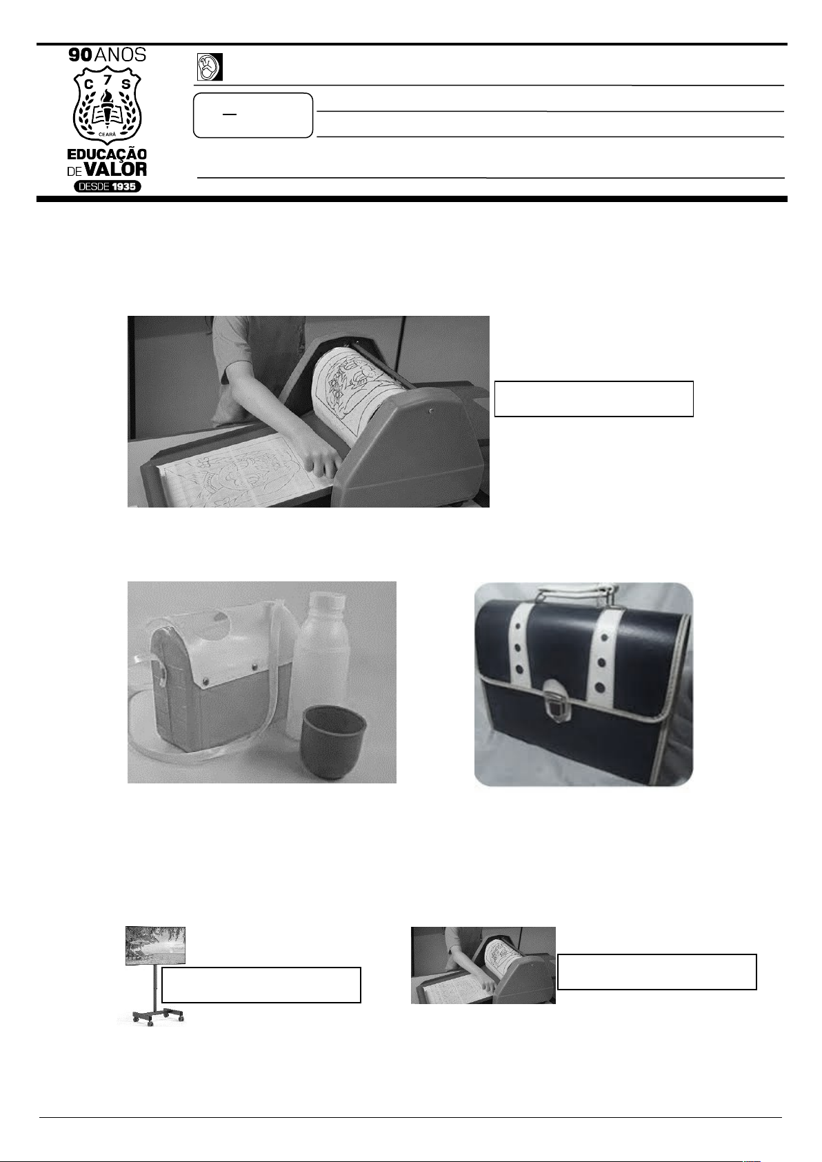 ATIVIDADE ADAPTADA DE HISTÓRIA ALAN Turnos: Manhã/Tarde Data: ______/______/2025 Ensino Fundamental 2o Profas.: Aluno(a): No.: Turma: Avaliação Progressiva de Ciências – N1 3o Ano | Ensino Fundamental | Manhã/Tarde 6 2025/CIÊN/AP/2ªET/EF-2ªET-MT-3ºANO-M-3035-CHICÃO-29-05-2025 ESCOLA ANTIGAMENTE AS ESCOLAS ANTIGAMENTE NÃO TINHAM COMPUTADORES, NEM COPIADORAS. AS ATIVIDADES ERAM FEITAS NO MIMEOGRÁFO. MIMEÓGRAFO AS LANCHEIRAS E MOCHILAS QUE AS CRIANÇAS USAVAM ERAM BEM DIFERENTES DAS USADAS HOJE EM DIA. 1. SUA LANCHEIRA É IGUAL OU DIFERENTE DA LANCHEIRA MOSTRADA NA IMAGEM? ( ) IGUAL ( ) DIFERENTE 2. MARQUE O EQUIPAMENTO QUE TEM NA SUA ESCOLA. ( ) ( ) MIMEÓGRAFO TELEVISÃO 3. O QUE VOCÊ COLOCA NA SUA MOCHILA DA ESCOLA? ________________________________________________________________ CENTRAL DE ATENDIMENTO: 4006.77772025/CIÊN/AP/2ªET/EF-2ªET-MT-3ºANO-M-3035-CHICÃO-29-05-2025 image3.png image4.png image5.png image1.png image2.png image6.jpeg image7.png image8.png image9.emf
