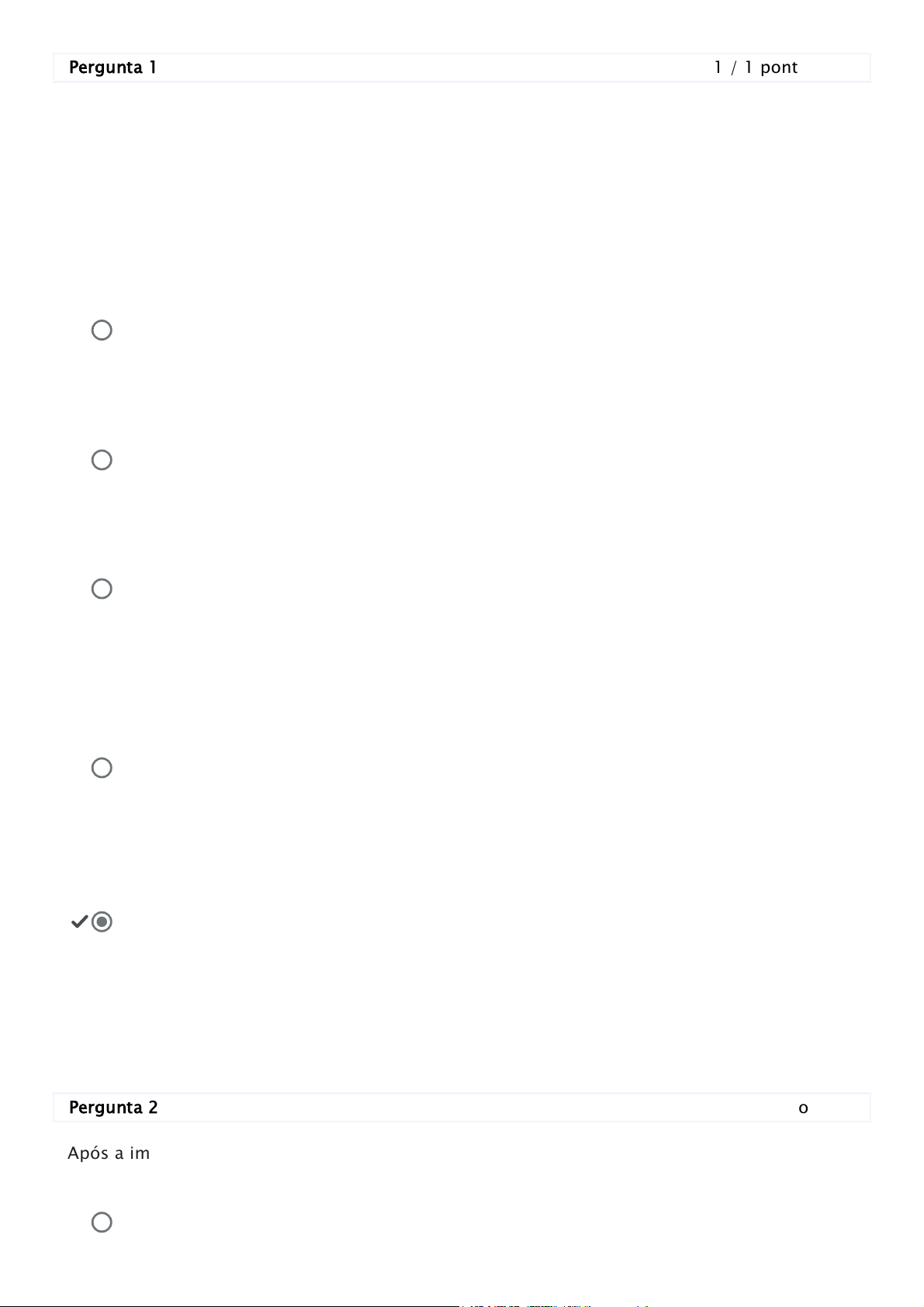Pergunta 1 1 / 1 ponto De acordo com Pais (2011), os espaços evocam respostas emocionais e podem inibir comportamentos. O local das salas de aula e escolas são capazes de motivar ou desmotivar a leitura. No contexto escolar, diversos espaços podem promover as condições desejáveis de leitura: sala de aula, pátio de recreios, corredores, alamedas, biblioteca e salas de leitura. São muitas as possibilidades de criação de espaços agradáveis para o favorecimento da leitura na escola. Será que oferecer um “espaço” é suficiente para promover a leitura e formar leitores? Considerando essa situação, qual a melhor opção a ser pensada? Pergunta 2 1 / 1 ponto Após a implementação da BNCC, mudou-se o foco com que os conteúdos deverão ser trabalhados em sala de aula. A divisão agora é por: Existem espaços planejados de acordo com as necessidades das crianças, o que nos leva a refletir sobre a diferença entre espaço e ambiente. O espaço é tudo o que cerca ou envolve os seres vivos e as coisas, já ambiente se define como um lugar mais ou menos demarcado. Sendo assim, é necessário planejar o espaço de forma estratégica para que ele fique de acordo com o ambiente. Existem espaços planejados de acordo com as necessidades das crianças, o que nos leva a refletir sobre a diferença entre espaço e ambiente. O espaço é tudo o que cerca ou envolve os seres vivos e as coisas, já ambiente, define-se como um lugar mais ou menos demarcado. Sendo assim, basta haver apenas um local determinado para a leitura. Existem espaços planejados de acordo com as necessidades das crianças, o que nos leva a refletir sobre a diferença entre espaço e ambiente. O espaço é tudo o que cerca ou envolve os seres vivos e as coisas, já ambiente se define como um lugar mais ou menos demarcado. Sendo assim, não basta haver simplesmente um local determinado para a leitura, é necessário planejar o ambiente de forma estratégica e estimulante para que os alunos se sintam acolhidos e tenham vontade de ler e permanecer ali. Existem espaços planejados de acordo com as necessidades das crianças, o que nos leva a refletir sobre a diferença entre espaço e ambiente. O espaço se define como um já demarcado, já ambiente seria apenas o que envolve as coisas. Sendo assim, não basta haver simplesmente um local determinado para a leitura, é necessário planejar o ambiente de forma estratégica e estimulante para que os alunos se sintam acolhidos e tenham vontade de ler e permanecer ali. Existem espaços planejados de acordo com as necessidades das crianças, o que nos leva a refletir sobre a diferença entre espaço e ambiente. O espaço se define como um lugar mais ou menos demarcado, já ambiente seria tudo o que cerca ou envolve os seres vivos e as coisas. Sendo assim, não basta haver simplesmente um local determinado para a leitura, é necessário planejar o ambiente de forma estratégica e estimulante para que os alunos se sintam acolhidos e tenham vontade de ler e permanecer ali. Unidades metodológicas. Pergunta 3 1 / 1 ponto A BNCC, no que se refere à área de produção textual, mantém muitos dos princípios adotados nos Parâmetros Curriculares Nacionais (PCNs). Sobre o tema, analise as seguintes asserções e a relação proposta entre elas: I. Um desses princípios é o da centralidade do texto e dos gêneros textuais. O ensino da produção textual escrita deve ser contextualizado e articulado ao uso social da língua. POR ISSO II. Devemos considerar os aspectos ambientais e linguísticos, além de que o texto produzido pelo aluno (seja ele oral ou escrito) deve ter funções como a correção do professor com base em modelos pré-definidos. Assinale a alternativa correta: Pergunta 4 1 / 1 ponto O fenômeno que chamamos de variação de registro está atribuído à capacidade de uma mesma pessoa empregar as diferentes formas da língua em situações comunicativas diferentes, na intenção de adequar a forma e o vocabulário a cada situação. Esse uso da língua pode apresentar variações de aspectos, como indica Cavalcante (2013). De acordo com o autor, que variações são essas? I. Grau de informalismo: informalidade da linguagem de acordo com a situação de comunicação em que se vive pois, essa variação demonstra a habilidade que o sujeito tem de adequação aos contextos comunicativos diversos. II. Modalidade: diferenças entre a escrita e a fala. Na língua falada, por exemplo, há um intercâmbio direto entre falante e ouvinte, o que não ocorre na língua escrita. Por isso, os interlocutores utilizam outros elementos no processo de comunicação como gestos, entonação, expressões faciais, entre outros. III. Sintonia: o ajuste que o falante realiza na estruturação de seus textos, a partir de informações que tem sobre o seu interlocutor. Está correto o que é apresentado em: Unidades interdisciplinares. Unidades de conhecimento. Unidades de componentes curriculares. Unidades temáticas. As asserções I e II são proposições verdadeiras e a II é uma justificativa da I. A asserção I é uma proposição verdadeira e a II é uma proposição falsa. A asserção I é uma proposição falsa e a II é uma proposição verdadeira. As asserções I e II são proposições verdadeiras, mas a II não é uma justificativa da I. As asserções I e II são proposições falsas. I, II e III. III, apenas. Pergunta 5 0 / 1 ponto Segundo Travaglia (2009), trabalhando a gramática na perspectiva da interação comunicativa e do funcionamento textual-discursivo dos elementos da língua, o professor conseguirá fazer a real integração entre os diferentes aspectos do ensino-aprendizagem da língua materna: ensino de gramática, leitura (compreensão de textos), redação (produção de textos orais e escritos) e vocabulário. Dentro de uma perspectiva textual- interativa, o autor propõe que: I. A aula de leitura (compreensão de textos) seja um exercício de busca e l