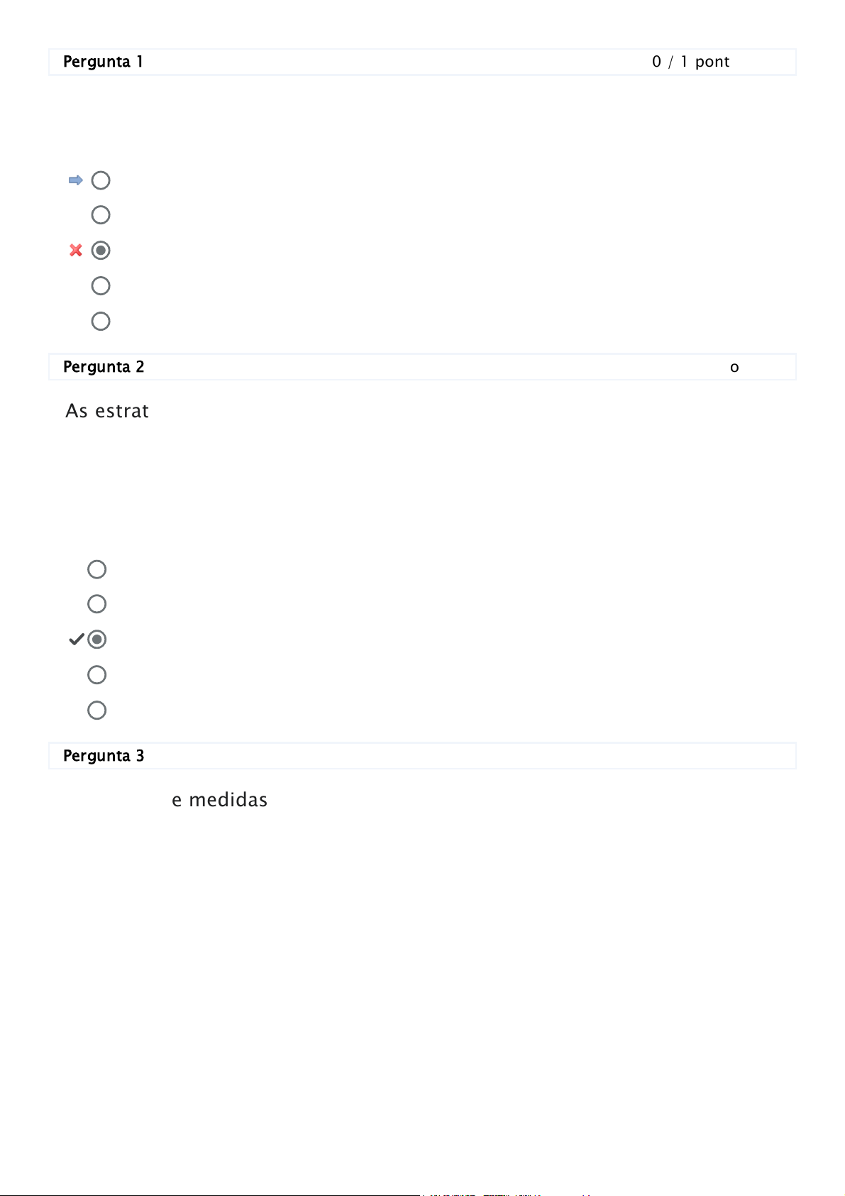 Pergunta 1 0 / 1 ponto Considerando as ações das operações matemáticas básicas, a quantas diferentes ações está ligada a subtração? Pergunta 2 1 / 1 ponto As estratégias que utilizam metodologia de resolução de problemas têm mostrado bons resultados no interesse do aluno e na aprendizagem da matemática. Uma prática metodológica docente que deve ser repensada por não ser a mais adequada para o trabalho com resolução de problemas é a das aulas: Pergunta 3 1 / 1 ponto Grandezas e medidas constituem um importante eixo do processo de alfabetização matemática. Sobre as diferentes formas de trabalhar este tema, é correto afirmar: I. Deve-se buscar construir situações-problema que expressem o uso das medidas no contexto do aluno. II. A utilização de textos literários dificilmente permite o trabalho com a temática da forma recomentada. III. É importante que a criança consiga comparar grandezas de uma mesma natureza. 3. 4. 2. 6. 5. focadas em projetos. com material manipulativo. expositivas. interdisciplinares. com computador. IV. Deve-se ensinar ao aluno representações numéricas e simbólicas de diferentes grandezas. V. Grandezas e medidas devem ser representadas, exclusivamente, na forma numérica. Está correto o que se afirma em: Pergunta 4 1 / 1 ponto Dentre os objetivos do ensino fundamental, estão o desenvolvimento do espírito de investigação, o desenvolvimento da capacidade de resolver problemas e a argumentação sobre as conjecturas, sendo que as pesquisas investigativas recebem também destaque nos temas transversais. Essa tendência apresenta as seguintes fases: I. Introdução da tarefa a ser desenvolvida; II. Realização da investigação; III. Discussão dos resultados. Assinale a alternativa com a(s) afirmativa(s) correta(s): Pergunta 5 1 / 1 ponto Durante o ensino fundamental, as aprendizagens devem concorrer para assegurar aos estudantes o desenvolvimento de competências gerais, que consubstanciam, no âmbito pedagógico, os direitos de aprendizagem e desenvolvimento. De acordo com a BNCC, é competência geral da educação: Somente II, III e IV. Somente I, III e IV. Somente I e III. Somente I, II, III e V. Somente III e IV. Apenas I e II. Apenas I. Apenas I e III. I, II e III. Apenas II. I - Enfrentar situações-problema em múltiplos contextos, incluindo-se situações imaginadas, não diretamente relacionadas com o aspecto prático-utilitário, expressar suas respostas e sintetizar conclusões, utilizando diferentes registros e linguagens (gráficos, tabelas, esquemas, além de texto escrito na língua materna e outras linguagens para descrever algoritmos, como fluxogramas, e dados); II - Valorizar e utilizar os conhecimentos historicamente construídos sobre o mundo físico, social, cultural e digital para entender e explicar a realidade, continuar aprendendo e colaborar para a construção de uma sociedade justa, democrática e inclusiva; III - Valorizar e fruir as diversas manifestações artísticas e culturais, das locais às mundiais, e também participar de práticas diversificadas da produção artístico-cultural; IV - Conhecer-se, apreciar-se e cuidar de sua saúde física e emocional, compreendendo-se na diversidade humana e reconhecendo suas emoções e as dos outros, com autocrítica e capacidade para lidar com elas. Assinale a alternativa com a(s) afirmativa(s) correta(s): Pergunta 6 1 / 1 ponto Sobre a dimensão educacional do programa Etnomatemática, preconizado pelo educador matemático brasileiro Ubiratan D`Ambrósio, analise as afirmativas a seguir: I - A Etnomatemática, enquadrada numa concepção multicultural, ignora a matemática acadêmica e incorpora a matemática do momento cultural, contextualizada na Educação Matemática; II – A Etnomatemática reconhece o conhecimento matemático gerado pelas diferentes manifestações culturais dos povos, tais como na arte e Apenas II e III. Apenas III e IV. Apenas I e II. Apenas II, III e IV. Apenas I e IV. na religião, ao mesmo tempo em que não rejeita a matemática acadêmica; III - O programa Etnomatemática busca reconhecer na educação a importância das várias culturas e tradições na formação de uma nova civilização. Assinale a alternativa com a(s) afirmativa(s) correta(s): Pergunta 7 1 / 1 ponto São propriedades da adição: Pergunta 8 1 / 1 ponto Trabalhar com números racionais no ensino fundamental, nas séries iniciais, não é algo fácil, reafirmamos que o conceito de número racional e as suas formas de representação fracionária e decimal são os principais pontos a serem trabalhados, entretanto, dependendo da maturidade das crianças e o quanto elas já compreenderam sobre números racionais, as operações podem ser trabalhadas. No entanto, ressaltamos que o lúdico se faz necessário para esse ensino, pois, de acordo com Piaget (1976), as crianças (ensino fundamental) estão na fase do concreto. Com isso, analise as afirmativas: I – Jogo de cartas; II – Bingo de frações; III – Dominó de adição e subtração de frações; Apenas III. Apenas I e III. Apenas I. Apenas II. Apenas II e III. Comutativa, associativa, distributiva e fechamento da adição. Comutativa, associativa, elemento neutro e distributiva. Associativa, distributiva, elemento neutro e fechamento da adição. Comutativa, associativa, elemento neutro e fechamento da adição. Associativa, distributiva, comutativa e elemento neutro. IV – Adição e subtração de números decimais; V – Multiplicação de números decimais. Assinale a alternativa que apresenta a(s) afirmativa(s) com relação ao ensino de números racionais: Apenas II. Apenas I e II. Apenas II, III, IV e V. Apenas I, II, III e V. Apenas III.