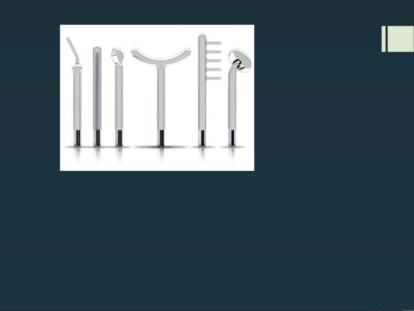 Alta Frequência Prof. Esp. Debora Y. I. Garcia Introdução Técnica que utiliza correntes alternadas de elevada tensão e baixa intensidade em que os gases argón, chenon ou neon, em contato com o oxigênio do ar transformam-se em ozônio. (oliveira e Perez, 2008) Introdução É um aparelho emissor de “faíscas” eletromagnéticas por meio de eletrodos monopolares emissores confeccionados em vidro em uma base metálica. Introdução Os parâmetros de frequência e tensão pode variar de acordo com o fabricante. A corrente ao atravessar o eletrodo adquire diferentes tonalidades de acordo com o conteúdo do mesmo, no caso do vácuo á corrente adquire uma luminescência azulada e na presença do gás neon alaranjada Mecanismo de ação O uso do aparelho de alta frequência na superfície da pele provoca a formação de ozônio O3 e este por ser uma substância instável se decompõe em oxigênio molecular O2 e em oxigênio atômico O. O2 + Faíscamento = O3 Ação É oxigenante, melhora a oxigenação tissular (da pele). É estimulante, pois há aumento da circulação sanguínea. Homeostático, (cauteriza e cicatriza) – estancando o sangramento. Reduz a resistência elétrica da pele. Ação Efeito térmico Vasodilatador Bactericida Bacteriostática Fungicida Anti-inflamatório Oxigenante Efeito térmico O seu principal efeito é a produção de calor e como consequência o aumento da vasodilatação periférica local. Segundo Miedes, 1999 o efeito térmico é obtido inversamente proporcional à superfície do eletrodo. Cuidado!!! O uso incorreto de alta frequência pode causar queimaduras! Apesar de parecer inofensivo, por se tratar de uma corrente alternada, ou seja, ora positivo, ora negativo, e onda eletromagnética, as oscilações de polos positivo e negativo são muito rápidas, transformando a energia eletromagnética em calor. Os eletrodos com menor superfície (ex. Fulgurador), concentram mais em um ponto os efeitos térmicos do aparelho de alta frequência, podendo causar queimaduras. Vasodilatador Através do estímulo da circulação periférica, causando o efeito hiperemiante (vermelhidão). Assim como no efeito térmico, a hiperemia também só ocorre com uso de intensidade alta por um tempo maior de aplicação, portanto esse efeito não é verificado. Bactericida e Bacteriostática Bactericida: elimina bactérias anaeróbias. Bacteriostática: diminui a proliferação de bactérias aeróbias. O ozônio possui ação muito oxidante e, portanto, é um bom bactericida, germicida e antiséptico em geral Antiinflamatório e fungicida Fungicida: eliminação de fungos. Antiinflamatório: utilizado nos processos de reparo tecidual pois é comum nesses casos a presença de germes e bactérias que acabam por dificultar a resolução do processo inflamátorio. Indicações A maioria das indicações tem como base a ação bactericida do gerador de alta frequência. Desinfecção após limpeza de pele Desinfecção do couro cabeludo em casos de seborréia (ação fungicida) Hidratação e revitalização facial Indicações Pós depilação: foliculite pois é causada normalmente pela presença de bactérias oportunistas que estão na pele e penetram no poro após extração; Solução de continuidade da pele: úlceras ou feridas abertas Psoríase: fechamento das lesões Tratamento de Peticulose Afecções ungueais Eletrodos Eletrodos Saturador (tem uma “mola” dentro): utilizado no faiscamento indireto é o único indicado para ser utilizado com cosméticos, pois aumenta a vascularização da pele. Eletrodos Standart (cebolinha ou colher): usa-se em faiscamento direto ou fluxação. Esférico (cebolão): seu formato anatômico facilita a passagem, usado em fluxação ou faiscamento direto. Eletrodos Forquilha: utilizado no pescoço, mamas e braços em faiscamento direto ou fluxação. Eletrodos Fulgurador ou cauterizador: usado para tratamento de pele acneica com faiscamento direto. Eletrodos Rolo é utilizado com o método de aplicação direto/efluviação. Recomendado para peles com rosácea e hiperêmicas ou lesões pápulo-pustulosas que não podem ser esvaziadas Eletrodos o eletrodo Pente faz estímulo dos vasos capilares, irrigando a raiz e os bulbos do cabelo. Além disso, o uso da Alta Frequência em tratamentos capilares auxilia na prevenção da queda de cabelos. Eletrodos Eletrodo cachimbo ou rabo de baleia indicado para tratamento ungueal Técnicas de aplicação Direta, fluxação ou efluviação Faíscamento direto Indireto ou saturação Fulguração A junção entre o eletrodo e o ponta do eletrodo não deve tocar a pele da cliente, nem ser tocado pela esteticista, pois há a possibilidade de um choque elétrico muito forte Fluxação Direta Fluxação ou Efluviação: usa-se essa técnica com passagem lenta e por igual dos eletrodos, geralmente eletrodos com superfície plana, em contato direto sobre a pele. Pode-se utilizar o auxílio de uma gaze para o melhor deslizamento do eletrodo. Esta forma de aplicação promove efeito descongestivo e calmante, diminuindo a hiperemia (vermelhidão). Fluxação Direta Esta técnica é indicada nos casos de: pós depilação, tratamentos capilares com o eletrodo pente, pós limpeza de pele onde necessita-se da ação bactericida, fungicida e bacteriostática do ozônio. Mais comum eletrodo standart Fluxação Direta Faíscamento Faiscamento direto: Aplica-se com o eletrodo um pouco afastado da pele provocando faíscas, nesse método de aplicação ocorre a formação de Ozônio. Esta técnica é indicada nos casos de: pós depilação, tratamentos capilares com o eletrodo pente, pós limpeza de pele como bactericida e fungicida. Faíscamento Saturação o cliente segura o eletrodo saturador em uma das mãos e a bobina na outra, (retirar objetos de metal que o cliente esteja usando) o profissional atua na pele deste cliente realizando tamborilamento ou pinçamento. Essa técnica permite tonificar e estimular as ter