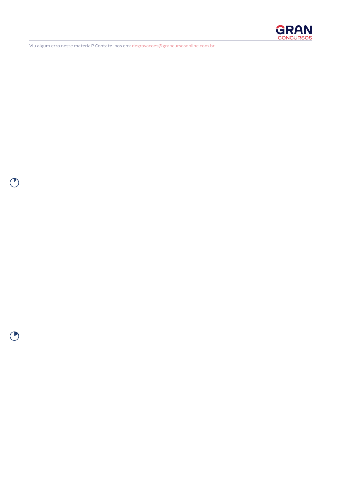 1www.grancursosonline.com.br Viu algum erro neste material? Contate-nos em: degravacoes@grancursosonline.com.br Artigo II LÍNGUA PORTUGUESA ARTIGO II CASOS EM QUE NÃO HAVERÁ CONTRAÇÃO: A contração não ocorre antecedendo o verbo no infinitivo com sujeito expresso. Se a palavra que vier após a preposição funcionar como sujeito do verbo que aparece à frente, não é possível fazer a contração. Exemplo: Está na hora do almoço; Exemplo: Está na hora de o almoço ficar pronto. Como “o almoço” é o sujeito do verbo “ficar”, a contração NÃO é recomendada! Os verbos no infinitivo são os terminados em -ar, -er e -ir. Existem três formas nominais: infinitivo, gerúndio e particípio. Para identificar o sujeito pergunta-se ao verbo ‘quem?’ ou ‘o que?’. Elementos preposicionados não podem exercer a função de núcleo do sujeito. Por isso, no exemplo, usa-se ‘de o almoço’ ao invés de ‘do almoço’. A contração não ocorre com qualquer artigo que faça parte do título de alguma obra. Conforme orienta o professor Celso Cunha, deve-se: Ou evitar a contração, pelo modelo: “Camões é o autor de Os Lusíadas”. O nome da obra é ‘Os Lusíadas’, então não se pode contrair, pois o artigo faz parte do nome da obra. Ou indicar pelo apóstrofo a supressão da vogal da preposição: “Camões é o autor d´Os Lusíadas”. IDENTIFICAÇÃO DOS ARTIGOS: O ‘a’ pode ser preposição, artigo definido feminino, pronome oblíquo e pronome demonstrativo. O ‘a’ pode ser artigo definido masculino, pronome oblíquo e pronome demonstrativo. O artigo definido demonstra a intenção que se tem consciência e conhecimento de quem é o substantivo ao qual está se referindo. A preposição é um termo invariável. Todos que se referirem ao substantivo na oração vão obedecer a ele. Exemplo: As canecas. ‘Canecas’ é um substantivo feminino e plural. O artigo ‘as’ concorda com o substantivo. Artigo versus Pronome Oblíquo Átono: Os pronomes oblíquos átonos o, a, os, as atuam como complemento de verbo, logo acompanham um verbo, e não um substantivo. O artigo acompanha um substantivo. O pronome oblíquo acompanha o verbo. 5m 10m 2www.grancursosonline.com.br Viu algum erro neste material? Contate-nos em: degravacoes@grancursosonline.com.br Artigo II LÍNGUA PORTUGUESA Há pronomes substantivos e adjetivos. O pronome pode acompanhar um substan- tivo, mas também pode retomar uma ideia citada ocupando o espaço do substantivo. Exemplo: – Não via meus amigos há muitos anos; minha esposa também não via as amigas dela há muito tempo. Decidimos ligar para eles. Eu os convidei para um almoço, e depois ela as convidou para um jantar. Foi ótimo. ‘Eles’, pronome pessoal, retoma ‘meus amigos’. ‘Convidei’ é um verbo e ‘os’ é um pro- nome oblíquo que retoma ‘amigos’. Na frase, ‘as’ retoma ‘amigas’. A relação do pronome é sempre diante de um verbo, retomando uma ideia que já foi citada para evitar a repetição. Um texto coeso é um texto que evita a repetição. Artigo versus Pronome Demonstrativo: O artigo sempre acompanha o substantivo. Os pronomes demonstrativos o, a, os, as aparecem em alguns casos: antes de pro- nome relativo que, antes da preposição de e quando substitui um termo ou uma frase inteira. Tais pronomes podem ser substituídos por aquele(a/s) ou aquilo. Exemplo: – As (= aquelas) que ficam na frente da sala são normalmente discrimi- nadas, já os (=aqueles) do “fundão” são os carismáticos, sendo meninos ou meninas. A verdade é que uma turma só é boa se seus componentes também o (isso = bons) forem. O ‘que’ é um pronome relativo. Para descobrir se um pronome é demonstrativo é feita a troca por ‘aquele(a)’ ou ‘aquilo’. 15m 20m 25m � Este material foi elaborado pela equipe pedagógica do Gran Concursos, de acordo com a aula preparada e ministrada pela professora Letícia Carneiro Bastos. A presente degravação tem como objetivo auxiliar no acompanhamento e na revisão do con- teúdo ministrado na videoaula. Não recomendamos a substituição do estudo em vídeo pela lei- tura exclusiva deste material.