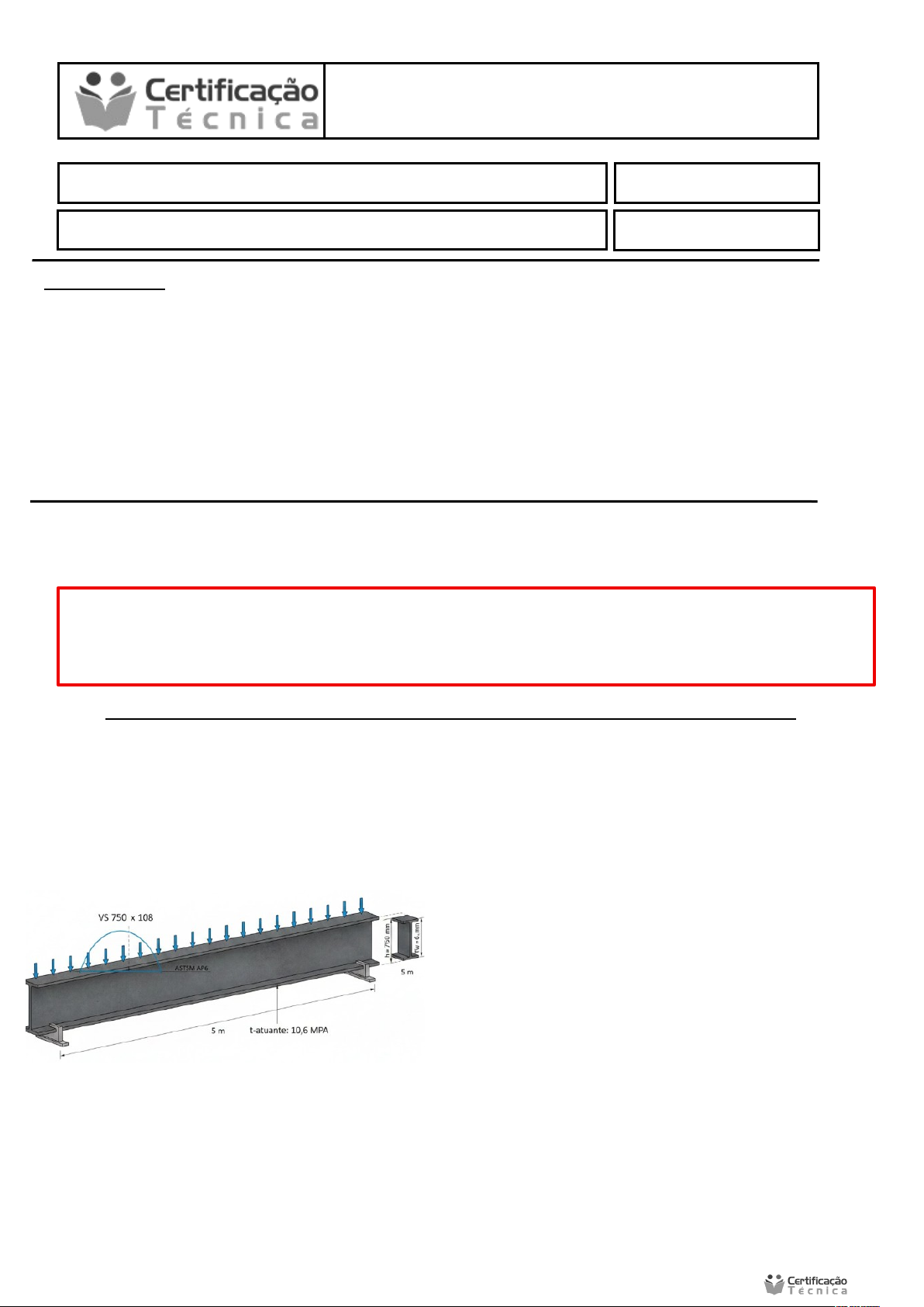 Perfil: VS 750 x 108 (Viga Soldada: altura de 750mm e massa de 108 kg/m).