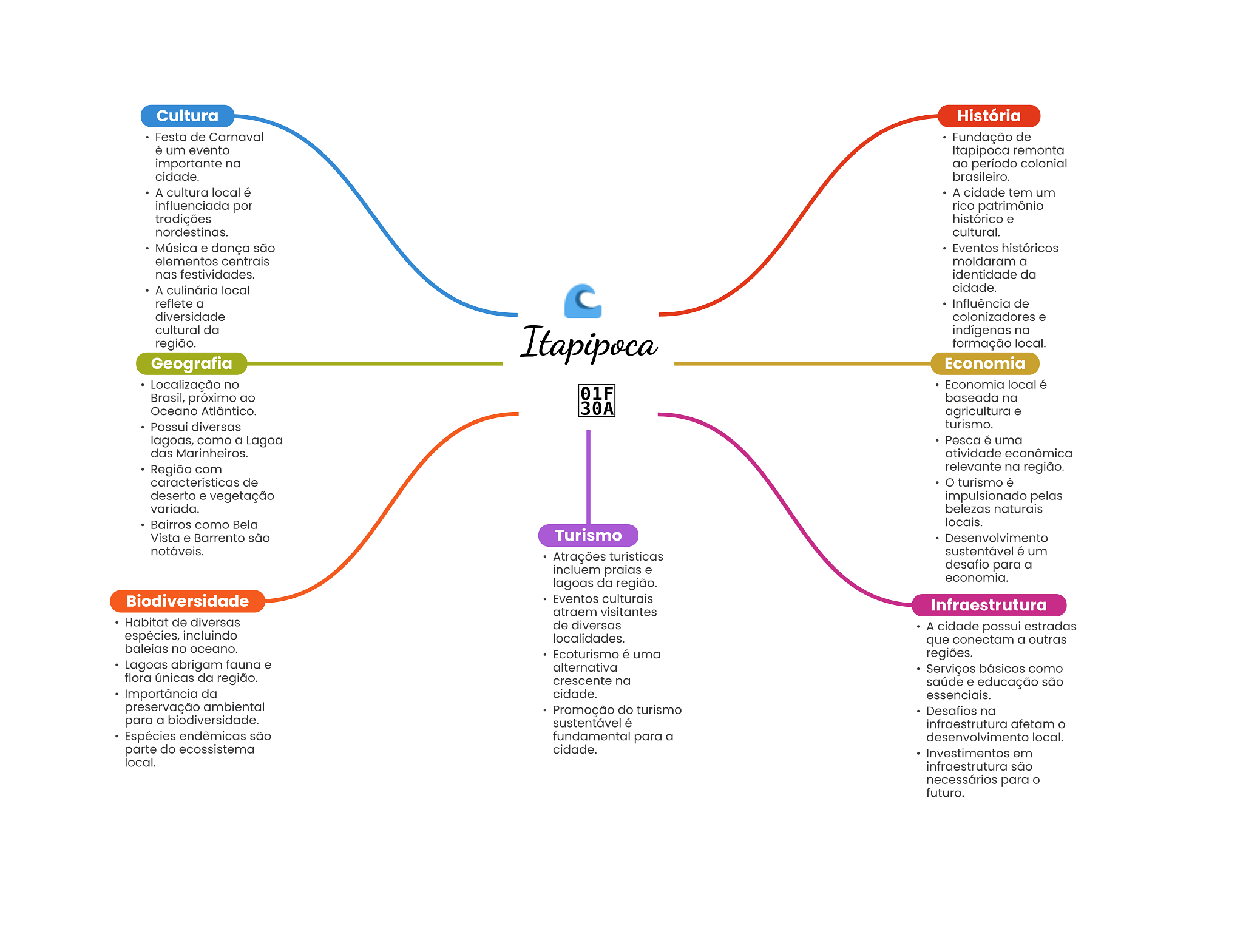 Cultura História Festa de Carnaval Fundação de é um evento Itapipoca remonta importante na ao período colonial cidade. brasileiro. A cultura local é A cidade tem um influenciada por rico patrimônio tradições histórico e nordestinas. cultural. Música e dança são Eventos históricos elementos centrais moldaram a nas festividades. identidade da A culinária local cidade. reflete a Influência de diversidade colonizadores e cultural da Itapipoca indígenas na região. formação local. Geografia Economia Localização no Economia local é Brasil, próximo ao 01F baseada na Oceano Atlântico. 30A agricultura e Possui diversas turismo. lagoas, como a Lagoa Pesca é uma das Marinheiros. atividade econômica Região com relevante na região. características de O turismo é deserto e vegetação impulsionado pelas variada. belezas naturais Bairros como Bela locais. Vista e Barrento são Turismo Desenvolvimento notáveis. sustentável é um Atrações turísticas incluem praias e desafio para a lagoas da região. economia. Biodiversidade Eventos culturais Infraestrutura atraem visitantes Habitat de diversas de diversas A cidade possui estradas espécies, incluindo localidades. que conectam a outras baleias no oceano. Ecoturismo é uma regiões. Lagoas abrigam fauna e alternativa Serviços básicos como flora únicas da região. crescente na saúde e educação são Importância da cidade. essenciais. preservação ambiental Promoção do turismo Desafios na para a biodiversidade. sustentável é infraestrutura afetam o Espécies endêmicas são fundamental para a local. parte do ecossistema cidade. Investimentos em local. infraestrutura são necessários para futuro.