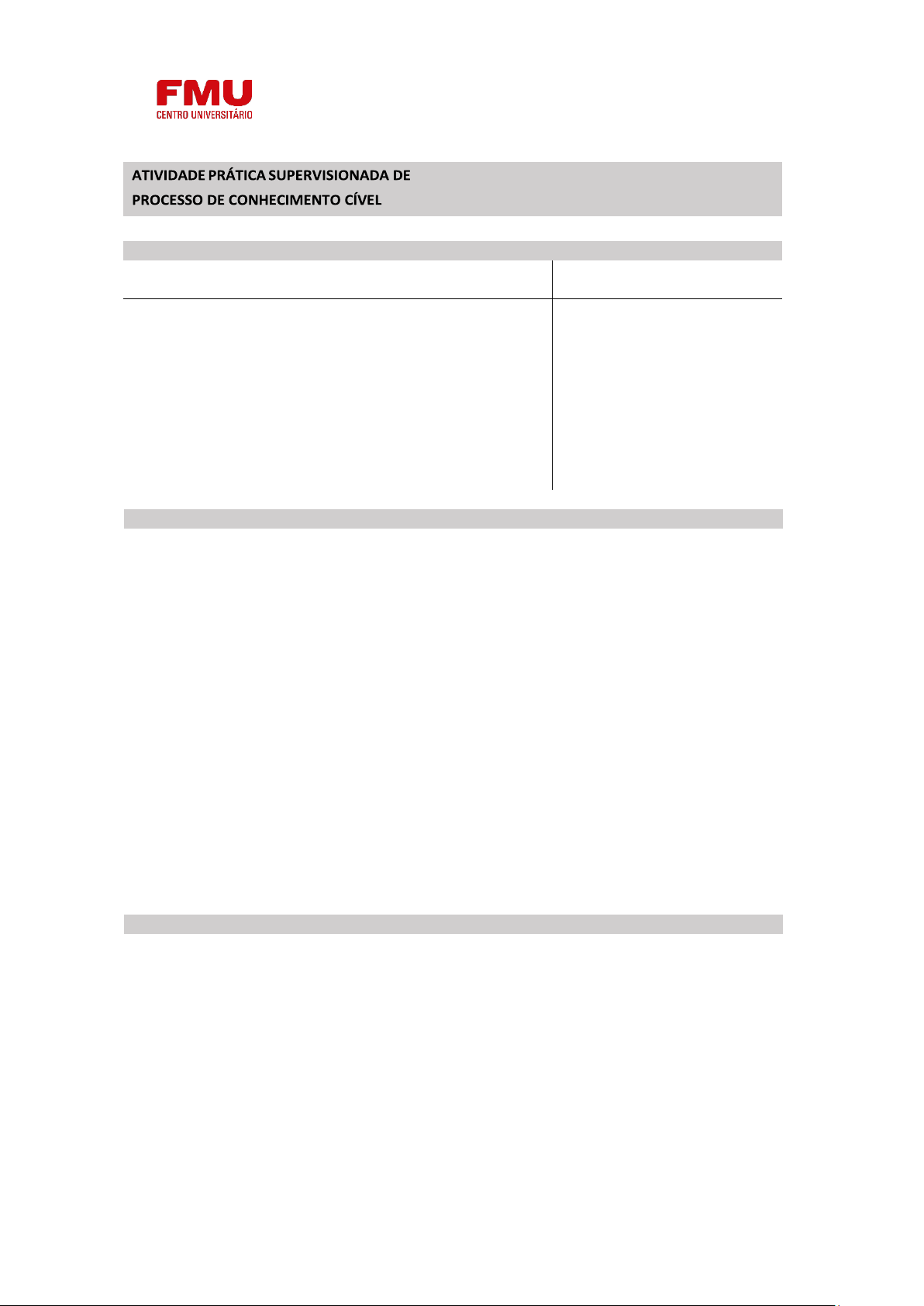 OBJETIVOS DE APRENDIZAGEM COMPETÊNCIAS RELACIONADAS I,II,III,IV,V,VI,VII,VIII,IX,X,XI,XII,XIII, XIV 1. Reconhecer a relevância dos tipos societários no atual Estado de Direito. 2. Compreender a inter-relação entre os diversos tipos societários enquanto instrumentos de atuação econômica. 3. Relacionar os vários tipos societários em sua dimensão normativa. 4. Interpretar a aplicar as normas jurídicas pertinentes ao manejo correto do Direito Societário quanto à sustentabilidade. 5. Visualizar a aplicação do Direito Societário em caso concreto; Opção 1 - Elaboração de uma petição inicial, com base no artigo 319 do Código de Processo Civil, a partir de um caso concreto e/ou hipotético divulgado pelo professor. Opção 2 Elaboração de uma contestação, a partir de um caso concreto e/ou hipotético divulgado pelo professor. Opção 3 Pesquisa e análise (direcionada pelo professor) de uma decisão judicial e/ou acórdão que verse sobre: - indeferimento de petição inicial; - julgamento antecipado do mérito; - sentença terminativa ou definitiva; - tutelas provisórias. A avaliação da Atividade Prática Supervisionada (APS) será realizada pelo professor da disciplina, considerando a completa aderência aos requisitos solicitados. Alunos que cumprirem integralmente todas as exigências de entrega receberão 1,0 ponto, que será somado à nota da Avaliação N2. Importante: Entregas não realizadas, incompletas ou que não correspondam ao solicitado não serão pontuadas. Atualizada em 2025.2 pelo professor Indira Chelini e Silva Pietoso ATIVIDADES A SEREM DESENVOLVIDAS AVALIAÇÃO