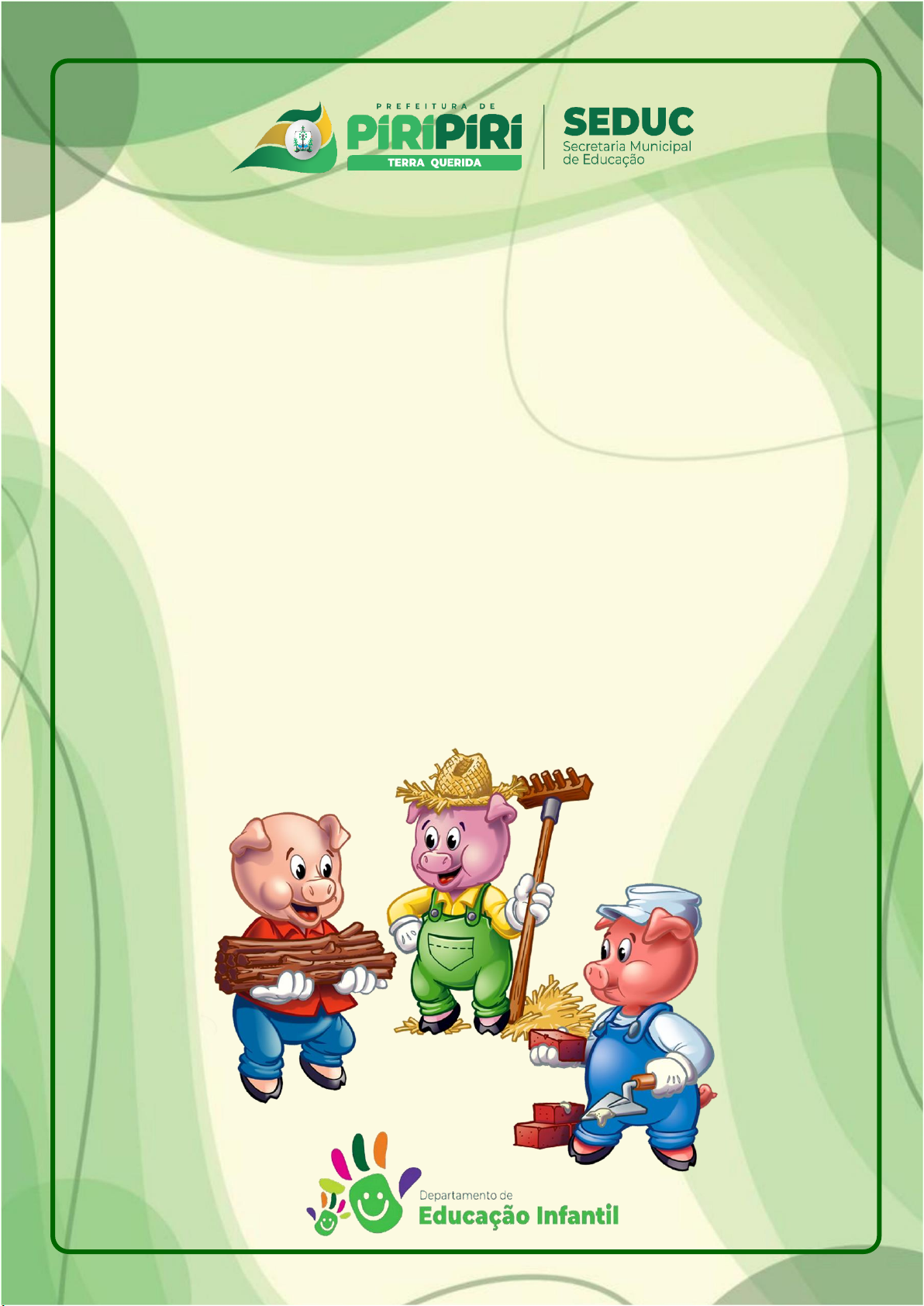 CADERNO 02/2023 – 27/02 a 10/03 Pré 2 Esse caderninho pertence a: ____________________________ Caderno Pedagógico 01 ESCUTA, FALA, PENSAMENTO E IMAGINAÇÃO – LINGUAGEM Hora da história! 1. Dê um belo colorido. Secretaria Municipal de Educação – Dep. de Educação Infantil Escola: __________________________________________________________ Professor: ________________________________ Data: ____/____/2023 Eu sou:__________________________________________________________ Antes de pintar, conte: - Quem eles são? - Fazem parte de qual historinha? - Quem é o vilão dessa história? - Quais são as características de cada porquinho? - E você? É mais preguiçoso ou mais corajoso? 02 2. Use o espaço abaixo para desenhar as casas dos 3 porquinhos: 3. Circule as vogais das palavras abaixo e as repita nos espaços indicados. ________________ ________________ ________________ ________________ ________________ Porquinhos casa 03 ESCUTA, FALA, PENSAMENTO E IMAGINAÇÃO – LINGUAGEM 1. Escreva a letra inicial do nome de cada desenho: Secretaria Municipal de Educação – Dep. de Educação Infantil Escola: __________________________________________________________ Professor: ________________________________ Data: ____/____/2023 Eu sou:__________________________________________________________ 2. Vamos revisar as vogais! Pinte os desenhos com os nomes iniciados pela vogal destacada: a e i o u 04 ESCUTA, FALA, PENSAMENTO E IMAGINAÇÃO – LINGUAGEM 1. Junte as vogais e forme os encontros vocálicos. Leia. Secretaria Municipal de Educação – Dep. de Educação Infantil Escola: __________________________________________________________ Professor: ________________________________ Data: ____/____/2023 Eu sou:__________________________________________________________ 05 2. Vamos recapitular as vogais. 3. Capriche na escrita das palavrinhas que já estudamos. 06 ESCUTA, FALA, PENSAMENTO E IMAGINAÇÃO – LINGUAGEM Um bichinho diferente... Secretaria Municipal de Educação – Dep. de Educação Infantil Escola: __________________________________________________________ Professor: ________________________________ Data: ____/____/2023 Eu sou:__________________________________________________________ 07 1. Vamos praticar. 08 ESPAÇOS, TEMPOS, QUANTIDADES E TRANSFORMAÇÕES – MATEMÁTICA 1. Que turminha legal! São os números de 0 a 10! Pinte. - Escreva nos quadrinhos os números de 0 a 10: Secretaria Municipal de Educação – Dep. de Educação Infantil Escola: __________________________________________________________ Professor: ________________________________ Data: ____/____/2023 Eu sou:__________________________________________________________ 09 10 10 2. Vamos colorir todos os números escondidos, diga o nome de cada um deles. 11 ESPAÇOS, TEMPOS, QUANTIDADES E TRANSFORMAÇÕES – MATEMÁTICA 1. Ligue os desenhos iguais: Secretaria Municipal de Educação – Dep. de Educação Infantil Escola: __________________________________________________________ Professor: ________________________________ Data: ____/____/2023 Eu sou:__________________________________________________________ 12 2. Encontre e pinte a imagem diferente: 3. Complete as asas das borboletas com o mesmo desenho: 13 ESPAÇOS, TEMPOS, QUANTIDADES E TRANSFORMAÇÕES – MATEMÁTICA 1. Agrupe os animais de acordo com a quantidade indicada no quadro. Secretaria Municipal de Educação – Dep. de Educação Infantil Escola: __________________________________________________________ Professor: ________________________________ Data: ____/____/2023 Eu sou:__________________________________________________________ 14 2. Recorte e cole a quantidade correspondente a cada numeral: 15 ESPAÇOS, TEMPOS, QUANTIDADES E TRANSFORMAÇÕES – MATEMÁTICA 1. Circule apenas o sapo pequeno. 2. Pinte o cachorro grande. Secretaria Municipal de Educação – Dep. de Educação Infantil Escola: __________________________________________________________ Professor: ________________________________ Data: ____/____/2023 Eu sou:__________________________________________________________ 16 3. Observe e responda: 17 O EU, O OUTRO E O NÓS – NATUREZA E SOCIEDADE 1. A Criança: Desenhe ou recorte uma fotografia sua, carimbe o seu polegar na identidade e com ajuda de um adulto preencha os campos abaixo: Secretaria Municipal de Educação – Dep. de Educação Infantil Escola: __________________________________________________________ Professor: ________________________________ Data: ____/____/2023 Eu sou:__________________________________________________________ 18 O EU, O OUTRO E O NÓS – NATUREZA E SOCIEDADE 1. Higiene pessoal: Observe as cenas e pinte-as: Dê um nome à personagem e crie uma história sobre as cenas. Conte para o pessoal de casa ou para sua turminha na escola. Secretaria Municipal de Educação – Dep. de Educação Infantil Escola: __________________________________________________________ Professor: ________________________________ Data: ____/____/2023 Eu sou:__________________________________________________________ 19 TRAÇOS, SONS, CORES E FORMAS – ARTE 1. Vamos contornar o quadrado. 2. Vamos contornar o retângulo. Secretaria Municipal de Educação – Dep. de Educação Infantil Escola: __________________________________________________________ Professor: ________________________________ Data: ____/____/2023 Eu sou:__________________________________________________________ 20 TRAÇOS, SONS, CORES E FORMAS – ARTE 1. Com ajuda de um adulto, recorte as peças e brinque com seus amigos. Jogo da memória Os três porquinhos Secretaria Municipal de Educação – Dep. de Educação Infantil Escola: __________________________________________________________ Professor: ________________________________ Data: ____/____/2023 Eu sou:__________________________________________________________ 21 CORPO, GESTOS E MOVIMENTOS – MOVIMENTO 1. Cubra os percursos: Secretaria Municipal de Educação – Dep. de Educação Infantil