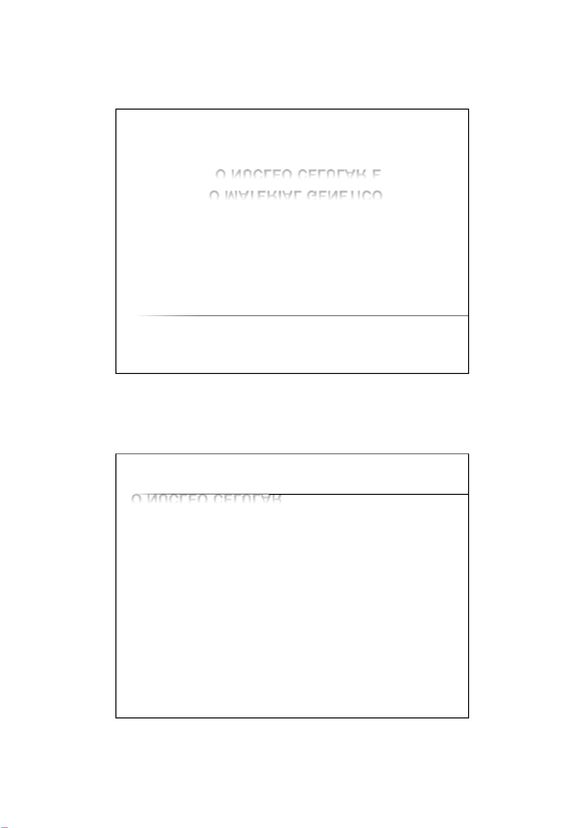 23/10/2016 1 O NÚCLEO CELULAR E O MATERIAL GENÉTICO Citologia/Histologia Profa. Mariana Félix O NÚCLEO CELULAR � Presente apenas em células eucarióticas � Local onde se encontram os cromossomos � O núcleo comanda todas as funções celulares e reações metabólicas � Durante o processo de divisão celular, o núcleo é desintegrado 23/10/2016 2 NÚCLEO NÚCLEO � A maioria das células eucariontes apresentam apenas um núcleo � Exceções: � alguns protozoários ciliados - binucleados � sincício cardíaco – multinucleados � Hemácias - anucleadas 23/10/2016 3 � Geralmente o núcleo apresenta forma arredondada e central, mas a forma e a localização depende do tipo celular. � Existem núcleos segmentados, ovóides, elípticos, ramificados e irregulares. NÚCLEO 23/10/2016 4 NÚCLEO � Componentes do núcleo celular: NÚCLEO 23/10/2016 5 � 1- Carioteca ou envelope nuclear � Membrana dupla de lipoproteínas justapostas � Membrana externa dá continuidade e forma o RE � Membrana interna – forrada pela lâmina nuclear, filamentos proteicos que sustentam e dão forma ao núcleo NÚCLEO NÚCLEO 23/10/2016 6 � Poros nucleares � Complexas estruturas proteicas denominadas complexos do poro � Formados por vários tipos de proteínas � Funcionam como uma válvula, selecionando as moléculas que entram e saem do núcleo � Defeitos : acarretam doenças graves, ex. Talassemia (anemia) NÚCLEO PORO NUCLEAR 23/10/2016 7 � 2- Nucleoplasma � Também conhecido como cariolinfa, matriz nuclear � Solução aquosa que envolve o material genético e os nucléolos � Composta por água, íons, enzimas, moléculas de ATP, nucleotídeos. NÚCLEO � 3- Cromatina � Conjunto de filamentos (cromossomos) presente no núcleo � Se cora intensamente � Heterocromatina – filamentos condensados � Eucromatina – filamentos frouxos correspondentes aos genes ativos do DNA. NÚCLEO 23/10/2016 8 � Eucromatina � Heterocromatina NÚCLEO � 4- Nucléolo � Massa densa e arrendondada localizada no interior do núcleo � Constituído de aglomerado de ribossomos em processo de amadurecimento, RNA ribossômico, e DNA (genes responsáveis pela produção dos ribossomos) � Normalmente são observados 2 por núcleo. NÚCLEO 23/10/2016 9 � Astrócito (célula da glia) apresentanto nucléolo proeminente NÚCLEO 23/10/2016 10 O MATERIAL GENÉTICO � Cromossomos humanos � Longos filamentos de DNA ligados a moléculas proteicas chamadas histonas � As células humanas possuem 23 pares de cromossomos, totalizando 46, com exceção dos gametas. MATERIAL GENÉTICO Diferentes níveis de condensação do DNA. (1) Cadeia simples de DNA . (2) Filamento de cromatina (DNA com histonas). (3) Cromatina condensada em interfase com centrômeros. (4) Cromatina condensada em profase. (Existem agora duas cópias da molécula de DNA) (5) Cromossomo em metafase 23/10/2016 11 � A fita de DNA enrolada na histona recebe o nome de nucleossomo. � Os nucleossomos vizinhos se associam como uma mola helicoidal – recebendo o nome de solenóide. � Durante o processo de divisão o solenóide enrola sobre si mesmo – estado de alta compactação do cromossomo. MATERIAL GENÉTICO MATERIAL GENÉTICO 23/10/2016 12 � Antes do início da divisão a célula duplica o seu material genético para dividí-lo entre as células filhas � O cromossomo compacto é chamado de cromátide, e quando duplicado apresenta a cromátide-irmã. � Os filamentos são idênticos e estão aderidos por proteínas específicas – coesinas. MATERIAL GENÉTICO � A região que mantém as cromátides-irmãs aderidas geralmente se localiza num estrangulamento que recebe o nome de centrômero. � A posição do centrômero, determina o tamanho dos braços cromossômicos, classificando – os em: � Metacêntrico, submetacêntrico, acrocêntrico e telocêntrico MATERIAL GENÉTICO 23/10/2016 13 MATERIAL GENÉTICO � O centrômero divide as cromátides em duas partes, que se denominam braços. O braço curto, é designado por p, e o braço longo por q. 23/10/2016 14 A- metacêntrico B- submetacêntrico C- acrocêntrico D- telocêntrico DNA � Sigla correspondente de ácido desoxiribonucleico. � É considerado a identidade genética do ser vivo. MATERIAL GENÉTICO 23/10/2016 15 � Descoberto em meados do século XIX � cientista - Johann Friedrich Miescher � Estudos de leucócitos da secreção purulenta dos ferimentos. � Denominou a substância rica em nitrogênio e fósforo de nucleína � Watson e Crick, em 1953, desvendaram sua estrutura MATERIAL GENÉTICO � Estrutura molecular do DNA � Fita dupla em α hélice (estrutura helicoidal) � As fitas são cadeias complementares compostas de nucleotídeos . � As cadeias complementares estão ligadas por pontes de hidrogênio entre bases nitrogenadas específicas dos nucleotídios. MATERIAL GENÉTICO 23/10/2016 16 MATERIAL GENÉTICO � Nucleotídeos � São as unidades das cadeias do material genético � São moléculas ricas em energia � Formadas por um grupamento fosfato, uma pentose (glicídio – desoxirribose) e uma base nitrogenada MATERIAL GENÉTICO 23/10/2016 17 � A molécula de açúcar (desoxirribose) e a base nitrogenada formam o nucleosídeo � Nucleosídeo + grupamento fosfato = nucleotídeo MATERIAL GENÉTICO � As bases nitrogenadas podem ser classificadas em dois grupos: � Purinas � Pirimidinas MATERIAL GENÉTICO 23/10/2016 18 � Bases nitrogenadas púricas (purinas): � Adenina � Guanina � Bases nitrogenadas pirimídicas (pirimidinas): � Timina � Citosina � Uracila (RNA) MATERIAL GENÉTICO MATERIAL GENÉTICO 23/10/2016 19 MATERIAL GENÉTICO � Os genes são sequências de nucleotídeos que codificam uma fita complementar de RNA, esta deve ser traduzida em proteínas pelos ribossomos MATERIAL GENÉTICO 23/10/2016 20 � A eucromatina corresponde aos genes que estão ativos na célula. � Os genes sã
