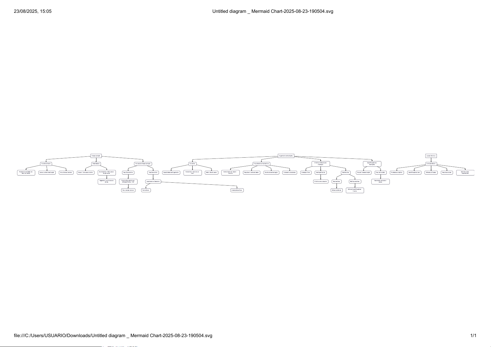 Desapropriação Conceitos Gerais Perda da propriedade em favor do Estado Justa e prévia indenização Ato unilateral estatal Modalidades Comum - Interesse coletivo Sancionatória - Não cumpre função social Pagamento com títulos da dívida Processo de Desapropriação Fase Declaratória Portaria Declaratória de Utilidade Pública - DUP Fixa o estado do bem Fase Executória Levantamento Cadastral Planta Geral Avaliação dos Bens Engenharia de Avaliações Conceitos Especialidade da Engenharia Determina o valor de um bem Não é ciência exata Procedimentos Avaliatórios Conhecimento do objeto - Vistoria Pesquisa e coleta de dados Escolha da metodologia Tratamento dos dados Critérios e Métodos de Avaliação Avaliação Total Avaliação Parcial Critério antes e depois Benfeitorias Reprodutivas Método da Renda Não Reprodutivas Método Quantificação de Custos Especificação das Avaliações Grau de Fundamentação Grau de Precisão Depende de mercado e dados Laudos Técnicos Conteúdo Básico Finalidade e objetivo Identificação do bem Métodos utilizados Resultado e data Assinatura dos responsáveis 23/08/2025, 15:05 Untitled diagram _ Mermaid Chart-2025-08-23-190504.svg file:///C:/Users/USUARIO/Downloads/Untitled diagram _ Mermaid Chart-2025-08-23-190504.svg 1/1