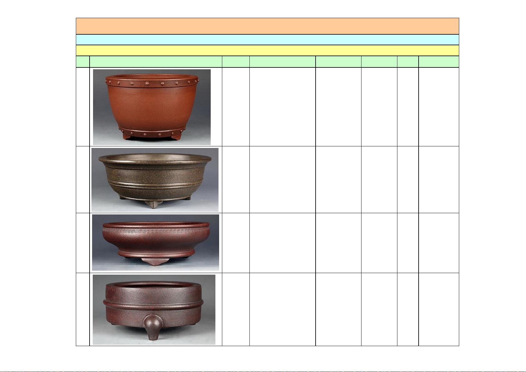YIXING BONSAI POTS TEL:0086-0510-87422891 FAX:0086-0510-87405570 E-MAIL:BONSAIPOT@FOXMAIL.COM HTTP://WWW.CHINA-YXCERAMIC.COM 2023-2024 SMALL ROUND SHAPE NO. PHOTO Item No. DESCRIPTION PRODUCT SIZE SINGLE PRICE IN USD CBM OF EACH MINIMUM ORDER QTY HAND MADE JS5002 UNGLAZED ROUND 15X9.5CM 7.5 0.001 20PCS 2 BONSAI POT HAND MADE 3 JS5003 UNGLAZED ROUND 18X7CM 5.5 0.002 20PCS BONSAI POT 4 HAND MADE JS5004 UNGLAZED ROUND 18.5X6.5CM 5.5 0.001 20PCS BONSAI POT 5 HAND MADE JS5005 UNGLAZED ROUND 15X7CM 5 0.001 20PCS BONSAI POT 第 1 页,共 5 页 9X4CM 6 4PCS/SET 9X4.5CM JS5006 UNGLAZED MINI ROUND 9.5X7CM 10 0.002 20SETS BONSAI POT 5.7X2.5CM HAND MADE 7 JS5007 UNGLAZED ROUND 12.5X6CM 4.5 0.001 20PCS BONSAI POT HAND MADE 8 JS5008 UNGLAZED ROUND 11.5X8CM 4.5 0.001 20PCS BONSAI POT HAND MADE JS5009 UNGLAZED ROUND 14.5X5CM 4.5 0.001 20PCS 9 BONSAI POT HAND MADE 10 JS5010 UNGLAZED ROUND 16.5X7.5CM 4.5 0.001 20PCS BONSAI POT 第 2 页,共 5 页 HAND MADE JS5012 UNGLAZED ROUND 21.5X8CM 5.5 0.001 20PCS 11 BONSAI POT HAND MADE JS5013 UNGLAZED ROUND 12X4CM 5.5 0.001 20PCS 12 BONSAI POT HAND MADE 13 JS5015 UNGLAZED ROUND 15X4CM 5.5 0.001 20PCS BONSAI POT HAND MADE JS5016 UNGLAZED ROUND 12X5.5CM 5.5 0.001 20PCS 14 BONSAI POT HAND MADE JS5017 UNGLAZED ROUND 19X8CM 5.5 0.001 20PCS 15 BONSAI POT 第 3 页,共 5 页 16 HAND MADE JS5019 UNGLAZED ROUND 15X10.5CM 5 0.001 20PCS BONSAI POT HAND MADE 17 JS5021 UNGLAZED ROUND 23X8.5CM 8.5 0.001 20PCS BONSAI POT HAND MADE 18 JS5022 UNGLAZED ROUND 21X7.0CM 5 0.001 20PCS BONSAI POT 19 HAND MADE JS5023 UNGLAZED ROUND 22.5X11CM 5.5 0.001 20PCS BONSAI POT HAND MADE 20 JS5024 UNGLAZED ROUND 12X12.5CM 5.5 0.001 20PCS BONSAI POT 第 4 页,共 5 页 HAND MADE 21 JS5025 UNGLAZED ROUND 14X8.5CM 5.5 0.001 20PCS BONSAI POT 第 5 页,共 5 页