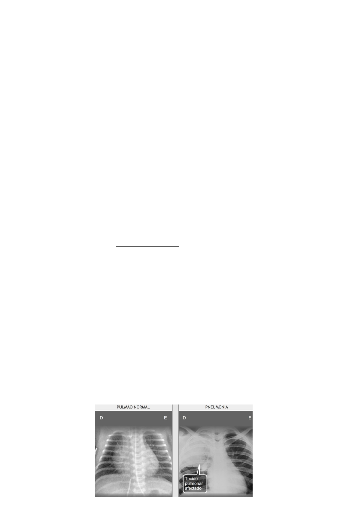 PNEUMOLOGIA A2 INSUFICIÊNCIA RESPIRATÓRIA/PULMONAR Distúrbio no qual o nível de O2 no sangue fica baixo ou o nível de CO2 fica alto. A insuficiência respiratória pode ocorrer de 2 maneiras: Insuficiência Respiratória Hipoxêmica (O2 baixo) ou Insuficiência Respiratória Hipercárbica (CO2 alto). · Insuficiência Respiratória Hipoxêmica (O2 baixo)= Pneumonia grave, Excesso de Líquidos nos pulmões, Fibrose Pulmonar · Insuficiência Respiratória Hipercárbica (CO2 alto)= Asma, DPOC Os sintomas incluem falta de ar, cianose, arritmias. PNEUMONIA Segundo a OMS, a pneumonia (PNM) é a segunda maior causa de morte por doença respiratória. E é definida por uma infecção aguda do parênquima pulmonar. A PNM pode ser classificada quanto ao agente causador e o local onde a infecção foi adquirida. Quanto ao agente causador temos pneumonia bacteriana, viral ou fúngica. Quando é fúngica está relacionada à pacientes imunodeprimidos – como aqueles com câncer, aids e hiv. Os principais tipos de pneumonia são: Pneumonia Adquirida na Comunidade (COMUNITÁRIA), Pneumonia Adquirida no Hospital (NOSOCOMIAL) e Pneumonia Associada à Ventilação Mecânica (PAV). A PNM é uma patologia que apresenta padrão sazonal, isso é, apresenta relação com condições climáticas. Estações como Inverno e Outono se tornam alarmantes para doenças respiratórias. O grupo mais afetado pela PNM é crianças e idosos. Em crianças pode-se incluir idade inferior a 6m, PIG, desmame precoce, desnutrição e baixa cobertura vacinal. Já a população idosa, podemos associar aos riscos devido a fragilidade imunológica e a presença de doenças crônicas. Os sintomas incluem febre, dispneia (falta de ar), dor no peito e secreção purulenta. No exame de imagem como raio-x e tomografia do tórax há presença de opacidade e consolidação pulmonar. Num pulmão saudável vemos o ar preto e o contorno das costelas em branco, já no caso de pneumonia vemos áreas brancas “soltas” no pulmão. DERRAME PLEURAL O pulmão é uma das maiores regiões de drenagem linfática do corpo. O sistema linfático pulmonar tem a função de remover o excesso de líquido e impurezas da região pulmonar, mantendo o equilíbrio entre o que é produzido e o que é reabsorvido. Quando o corpo tem retenção de líquidos — como em pacientes com insuficiência renal — parte desse excesso pode se acumular nos pulmões. O sistema linfático tenta drenar esse fluido e eliminar o que não deveria estar ali. Quando o organismo detecta um agente infeccioso (bactéria, vírus etc.), os macrófagos entram em ação. Eles fazem fagocitose, isto é, engolem e destroem esses agentes. Durante esse processo, há liberação de substâncias inflamatórias, o que causa inchaço (edema) e produção de secreção (muco ou catarro). · O catarro, na verdade, é uma forma de defesa — o corpo está tentando eliminar os resíduos da infecção e das células destruídas. O líquido pleural é um fluido normal que existe em pequena quantidade entre as duas membranas que revestem o pulmão (a pleura visceral e a pleura parietal). Ele serve para lubrificar e permitir o deslizamento dos pulmões durante a respiração. Quando há excesso desse líquido, ocorre o derrame pleural. Esse líquido pode ter composições diferentes dependendo da causa: · Doença infecciosa → líquido rico em células inflamatórias e proteínas; · Doença renal ou cardíaca → líquido mais “translúcido”, resultado de retenção de água no corpo; · Tumores → líquido com células anormais e proteínas elevadas. Nos lobos inferiores dos pulmões, há pequenos orifícios chamados estomas linfáticos, por onde o líquido pleural é drenado para o sistema linfático. Se o sistema não dá conta — por excesso de produção ou bloqueio — o líquido se acumula, e é necessário fazer uma drenagem pleural para análise laboratorial. Essa análise identifica proteínas, sangue, albumina e globulinas, ajudando a descobrir a causa do derrame. Consequências do acúmulo de líquido: · A pressão dentro da cavidade torácica cresce; · Os pulmões têm dificuldade de expandir; · As trocas gasosas (oxigênio e CO₂) ficam comprometidas; · E há desequilíbrio entre a produção e a reabsorção do fluido. Causas comuns do derrame pleural · Infecções pulmonares intensas (como pneumonias); · Tumores pulmonares; · Insuficiência renal (retenção de líquidos no corpo); · Problemas cardíacos (como insuficiência congestiva); · Alterações inflamatórias ou autoimunes. Em todos esses casos, o sistema linfático tenta “dar conta” de eliminar o excesso de líquido, mas, quando não consegue, o acúmulo leva ao derrame pleural. Derrame pleural é definido como acúmulo excessivo de líquido entre as pleuras. · Pleuras= membranas que envolvem o pulmão, parietal e visceral. Os espaços entre as pleuras contêm líquido, esse líquido serve para permitir o deslizamento entre as pleuras O diagnóstico de derrame pleural é feito através da radiografia de tórax, na posição LAURELL, ou em decúbito lateral (Nessa posição, o paciente é colocado deitado de lado, com as mãos sobre a cabeça, para que a radiografia mostre com clareza a movimentação do líquido pleural). O exame nessa posição é essencial porque imagens em posições comuns podem confundir o líquido com outras patologias, como atelectasias ou infiltrações pulmonares. A radiografia em casos de DP se mostra infiltração e opacidade na base pulmonar com apagamento das costelas. Há 2 tipos de líquido pleural: TRANSUDATO e EXSUDATO. O líquido transudato não apresenta sinais de infecção, sendo um líquido que vem de outras áreas do corpo (ex: Insuficiência cardíaca respiratória). Já o líquido exsudato é rico em células inflamatórias resultantes de infecção ou inflamação, contendo proteínas e restos celulares (ex: derrame parapneumônico). No derrame pleural h