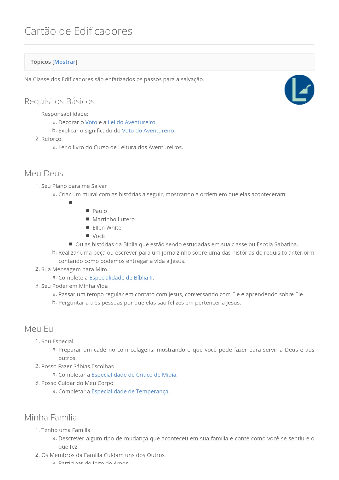 javascript: https://mda.wiki.br/imagem@Logo_Edificadores https://mda.wiki.br/Voto_dos_Aventureiros https://mda.wiki.br/Lei_dos_Aventureiros https://mda.wiki.br/Voto_dos_Aventureiros https://mda.wiki.br/Especialidade_de_B%C3%ADblia_II https://mda.wiki.br/Especialidade_de_Cr%C3%ADtico_de_M%C3%ADdia https://mda.wiki.br/Especialidade_de_Temperan%C3%A7a_(aventureiros) https://mda.wiki.br/Especialidade_de_S%C3%A1bio_Mordomo https://mda.wiki.br/Hino_Nacional_Brasileiro https://mda.wiki.br/Estudos_da_Natureza_(aventureiros) https://mda.wiki.br/Cart%C3%A3o_de_Edificadores/
