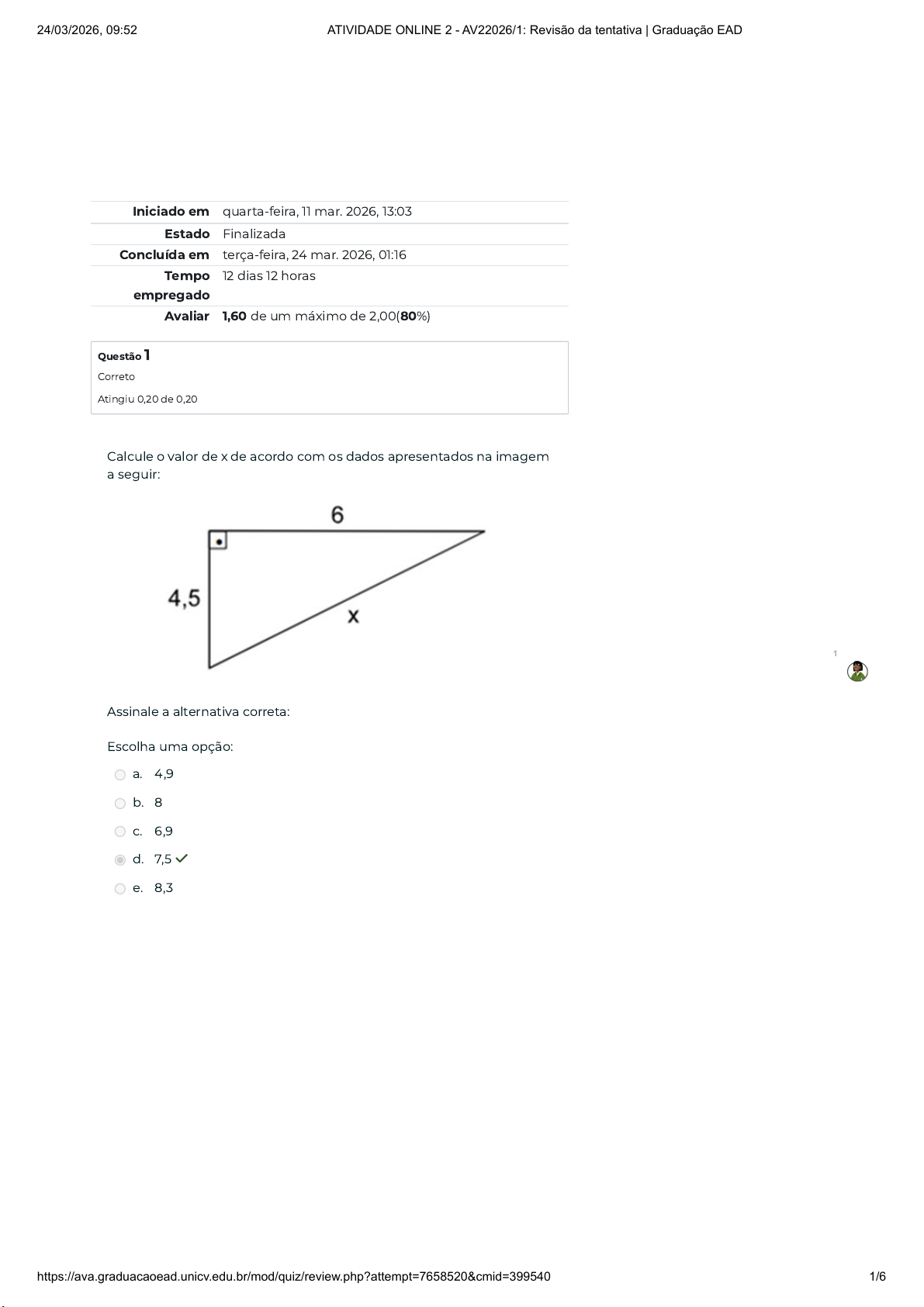 24/03/2026, 09:52 ATIVIDADE ONLINE 2 - AV22026/1: Revisão da tentativa | Graduação EAD