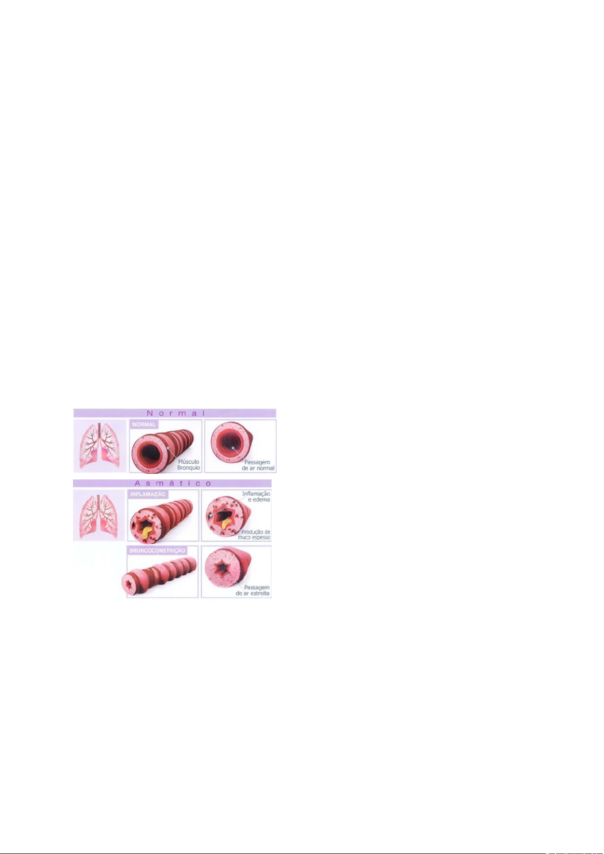 ASMA É uma doença caracterizada pelo aumento da responsividade da traquéia e brônquios a vários estímulos, que se manifesta por estreitamento difuso das vias aéreas variando de severidade espontaneamente ou como resultado de terapia. (AMERICAN THORACIC SOCIETY, 1962) É o estreitamento generalizado das vias brônquicas, cuja intensidade pode variar em curto espaço de tempo, seja espontaneamente, seja por efeito de tratamento. (Organização Mundial de Saúde) ETIOLOGIA · 5 a 10 % da população; · Maior incidência em locais poluídos; · Maior prevalência no sexo masculino na infância e no feminino na adolescência; · Maior prevalência em crianças de até cinco anos. CLASSIFICAÇÃO · Quanto à etiopatogenia · Quanto à severidade ETIOPATOGENIA · Asma extrínseca ou atópica; · Asma intrínseca ou não atópica; · Asma mista; · Asma de esforço; · Asma noturna; · Asma profissional; · Asma por substâncias ingeridas. CICLO CIRCADIANO · Diminuição de cortisol · Diminuição de adrenalina · Pico da histamina · Hipertonia vagal · Aumento de leucotrienos · Aumento de leucócitos, neutrófilos e eosinófilos · Diminuição da temperatura corporal SEVERIDADE · Leve: vida normal com broncodilatadores ocasionalmente · Moderada: crises periódicas e tratamento contínuo mas com atividades normais · Severa: crises freqüentes com limitação de atividades (pode chegar a perder o nível de consciência para não causar dano no SNC) DIAGNÓSTICO DIFERENCIAL · DPOC · Infecções e inflamações agudas das vias aéreas superiores e inferiores · Dispneia de origem cardíaca · Embolia pulmonar FISIOPATOLOGIA · Parênquima pulmonar normal; · Obstrução reversível das vias aéreas; · Sintomas característicos do impedimento à movimentação de ar para dentro e para fora dos pulmões; · Rápida flutuação no grau de obstrução das vias aéreas. OBSTRUÇÃO · Broncoespasmo; · Hipersecreção; · Edema da mucosa respiratória; · Inflamação. QUADRO CLÍNICO · Dispneia; · Taquipneia; · Utilização da musculatura acessória; · Tosse; · Secreção: pouca, clara e viscosa · Ansiedade; · Sibilos expiratórios. PRINCIPAIS ALTERAÇÕES REVERSÍVEIS · Aumento do VR; · Dificuldade expiratória; · Diminuição do VEF1; · Diminuição de todos os fluxos. PRINCIPAIS ALTERAÇÕES GRAVES · Distúrbio V/Q; · Hipoxemia→aumento da ventilação e do trabalho respiratório→maior gasto energético→fadiga respiratória. DIAGNÓSTICO · Exame clínico; · Espirometria: diminuição da VEF1: 80% do predito; Relação VEF1/CVF: abaixo de 75%; Melhora com broncodilatador. · Testes imunológicos TRATAMENTO · Clínico: antialérgicos, broncodilatadores, mucolíticos e corticoides; · Fisioterapia. image5.png image2.png image1.png