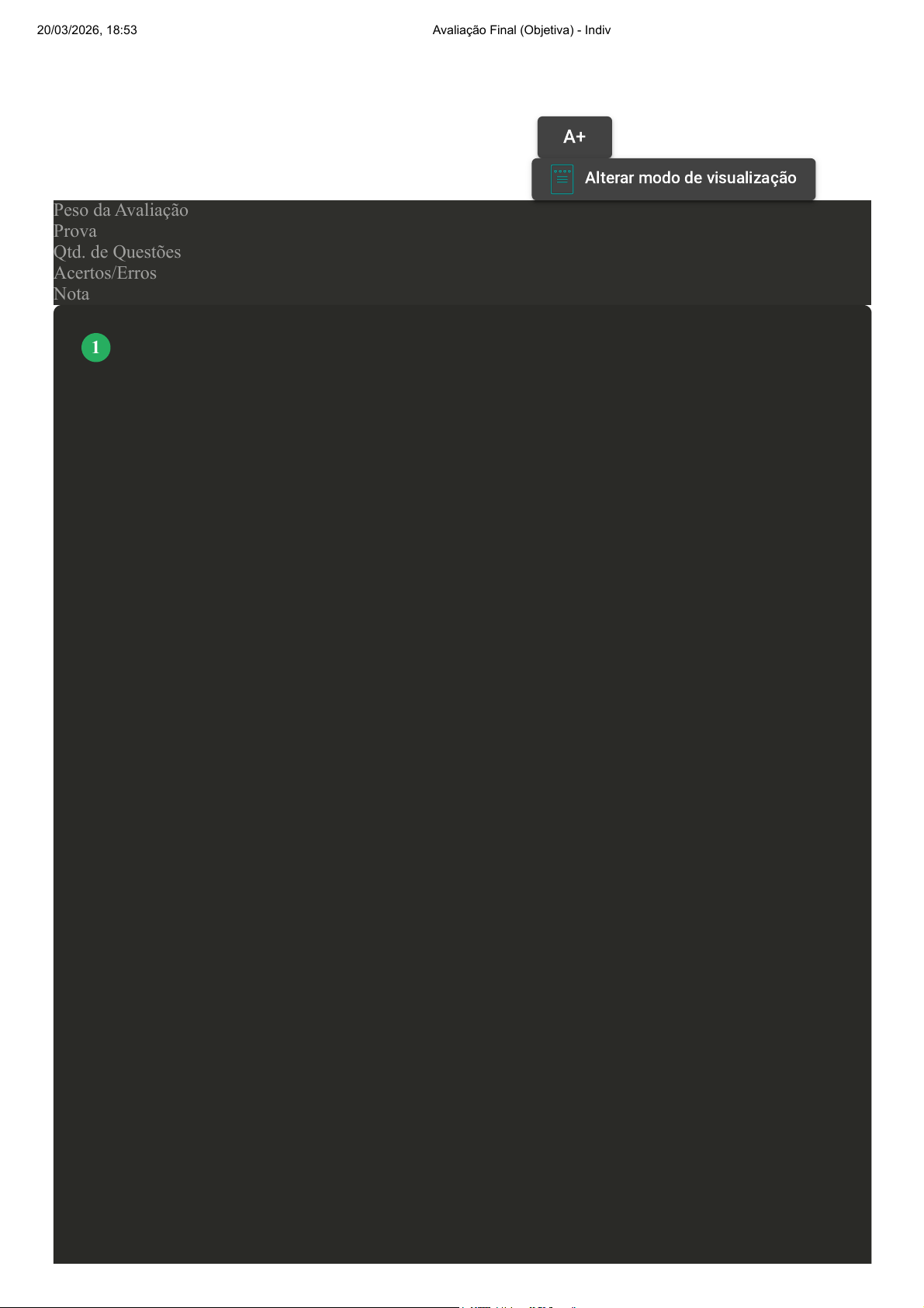 Prova Impressa GABARITO | Avaliação Final (Objetiva) - Individual (Cod.:1592016) Peso da Avaliação 4,00 Prova 116630552 Qtd. de Questões 10 Acertos/Erros 7/3 Nota 7,00 A pele quando hidratada apresenta um aspecto brilhante e elasticidade, sendo a hidratação essencial para o aspecto dela. Já uma pele desidratada apresenta um aspecto opaco, áspero, sem elasticidade e com tendência à descamação. Existem três mecanismos de ação que auxiliam na hidratação da pele. Sobre os três mecanismos de ação dos cosméticos utilizados na hidratação, associe os itens, utilizando o código a seguir: I- Oclusão. II- Hidratação Ativa. III- Umectação. ( ) Os ativos são semelhantes estruturalmente às substâncias naturais do estrato córneo. ( ) Os ativos promovem a retenção de água nas camadas inferiores ou superficiais da pele. ( ) Os ativos formam um filme na superfície da pele que minimizam a perda de água. ( ) Utiliza substâncias oleosas, que produzem uma fina camada oleosa sobre a pele e assim aumenta a ação do manto hidrolipídico em retardar a evaporação da água. ( ) Sorbitol e glicerol são exemplos desse mecanismo de hidratação. Assinale a alternativa que apresenta a sequência CORRETA: VOLTAR A+Aumentar, Fonte Alterar modo de visualização 1 20/03/2026, 18:53 Avaliação Final (Objetiva) - Individual about:blank 1/9 A I - II - III - II - I. B III - I - II - I - II. C III - II - I - III - I. D II - III - I - I - III. A limpeza de pele é um dos procedimentos mais procurados dentro da estética facial. Dependendo do tipo de pele ela pode ser realizada mensalmente ou com intervalos maiores. No entanto, existe uma sequência de passos que o profissional deve cuidar na hora de realizar tal procedimento. Sobre os passos realizados em uma limpeza de pele, associe os itens, utilizando o código a seguir: I- Emoliência. II- Remoção dos comedões. III- Esfoliação. IV- Higienização. ( ) Pode ser realizado de duas maneiras: manual ou com auxílio de extrator. ( ) Possui a finalidade em remover as células mortas da pele. ( ) Prepara a pele para a extração ou permeação dos ativos e aumenta a circulação. ( ) Possui a finalidade em remover as impurezas e maquiagem. Assinale a alternativa que apresenta a sequência CORRETA: 2 20/03/2026, 18:53 Avaliação Final (Objetiva) - Individual about:blank 2/9 A I - II - III - IV. B III - II - IV - I. C II - III - I - IV. D II - IV - I - III. A obesidade não afeta apenas a saúde física, ela também pode comprometer o sono, a locomoção e o emocional. Nem sempre uma pessoa que esteja dentro do seu peso ideal está livre de problemas envolvendo o acúmulo de gordura. Sobre os tipos de gordura, associe os itens, utilizando o código a seguir: I- Gordura Essencial. II- Gordura Marrom. III- Gordura Visceral. IV- Gordura Subcutânea. ( ) Localizada por trás da parede abdominal e os órgãos que rodeia, no interior da cavidade peritoneal. ( ) É a gordura encontrada abaixo da pele, também chamada de hipoderme. ( ) É queimada em forma de calor, e a energia produzida não é utilizada para alimentar quaisquer reações químicas. ( ) Apresenta um importante papel de proteção, no sistema nervoso e no cérebro. Assinale a alternativa que apresenta a sequência CORRETA: 3 20/03/2026, 18:53 Avaliação Final (Objetiva) - Individual about:blank 3/9 A III - II - IV - I. B III - IV - II - I. C I - IV - III - II. D II - I - III - IV. A pele é vista como uma importante proteção para o organismo humano, servindo como barreira para bloquear a passagem de microrganismos, porém muitas vezes também pode agir impedindo a absorção de substâncias aplicadas sobre ela, como os ativos cosméticos. Sobre os promotores da permeação cutânea, analise as afirmativas a seguir: I- A eletroporação consiste em aumentar o poder de captação celular, devido à facilitação da passagem de substâncias através da membrana celular. II- A microdermoabrasão utiliza dois eletrodos condutores, que permitem a penetração de substâncias através da barreira que é a pele. III- Os agentes em forma de gel apresentam-se como tipo de formulação mais apropriado para a realização da sonoforese. IV- Os agentes em forma de gel e creme apresentam-se como tipo de formulação mais apropriado para realização do microagulhamento. Assinale a alternativa CORRETA: A As afirmativas I e II estão corretas. B As afirmativas I e III estão corretas. C As afirmativas III e IV estão corretas. Revisar Conteúdo do Livro 4 20/03/2026, 18:53 Avaliação Final (Objetiva) - Individual about:blank 4/9 D As afirmativas II e IV estão corretas. O profissional da saúde e beleza é um profissional que utiliza diversos cosméticos e equipamentos para o tratamento das alterações inestéticas. Por esse motivo, é importante que conheça as condições de saúde e as condições de pele do cliente mediante realização da avaliação facial. Sobre a estrutura uma avaliação facial, assinale a alternativa CORRETA: A A avaliação facial é composta por uma entrevista, ficha de anamnese e um exame físico, realizados pelo profissional de estética. B A avaliação facial consiste em um exame para olhar a pele do cliente/paciente e, com isso, encontrar possíveis alterações inestéticas. C A avaliação facial é feita mediante o preenchimento de uma ficha pelo próprio cliente para formalização do tratamento. D A avaliação facial consiste em um exame palpatório e deve ser realizada depois do procedimento de limpeza de pele. Em meados de 1980, na Itália, uma técnica chamada de Peeling de Diamante foi criada, sendo amplamente utilizada, principalmente na Europa. O peeling de diamante é um procedimento de esfoliação mecânica superficial que remove parcialmente o estrato córneo. Sobre as indicações do peeling de diamante, assinale a alternativa CORRETA: A Fotoenvelhecimento e diminuição do grau da acne. B Clareamento de manchas e rejuvenescimento da p