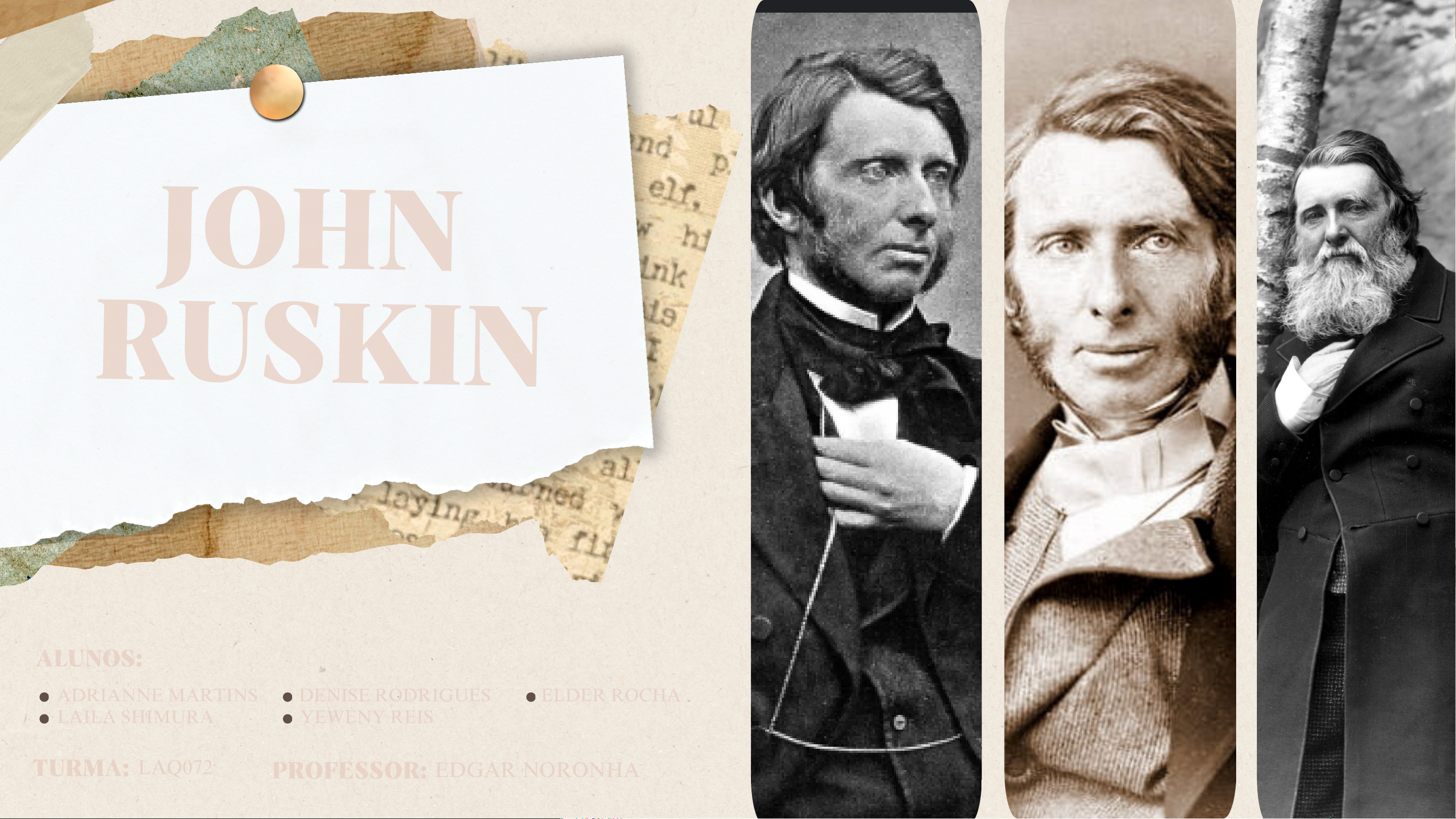 ADRIANNE MARTINSADRIANNE MARTINS DENISE RODRIGUESDENISE RODRIGUES ELDER ROCHAELDER ROCHA LAILA SHIMURALAILA SHIMURA YEWENY REISYEWENY REIS JOHNJOHN RUSKINRUSKIN ALUNOS:ALUNOS: TURMA:TURMA: LAQ072LAQ072 PROFESSOR:PROFESSOR: EDGAR NORONHAEDGAR NORONHA John Ruskin Nascido em Londres em 1819, foi um destacado crítico de arte e teórico da preservação de monumentos no século XIX. Filho de uma família escocesa, teve uma educação rígida e solitária, focada no estudo da Bíblia. Estudou na Universidade de Oxford e, após se formar em 1842, iniciou sua carreira como artista e crítico, publicando o livro Modern Painters. Realizou várias viagens pela Europa, especialmente à Itália, o que levou à publicação de obras importantes como As Sete Lâmpadas da Arquitetura e As Pedras de Veneza. Ruskin foi professor na Universidade de Oxford de 1869 a 1879, mas teve que se afastar devido a problemas de saúde mental, com crises de depressão e esquizofrenia que impactaram sua carreira e sua vida. Apesar das dificuldades, suas obras continuaram influentes, especialmente na teoria da conservação de monumentos. Ele morreu em 1900, mas seu legado permanece significativo na arquitetura contemporânea. Crítica à arquitetura da Revolução Industrial: Vê a arquitetura dessa época como desumanizada, mecanizada e sem sensibilidade artística e tradicional. Busca pela autenticidade e verdade material: Defende que a arquitetura deve refletir a sinceridade do artesão e usar materiais que mostrem sua verdadeira natureza. Arquitetura como preservação da memória histórica: Acredita que os edifícios servem como "guardas" da história, conectando o passado com o futuro. Arquitetura como ferramenta moral e cultural: A arquitetura deve ser construída com integridade, honestidade e respeito pelas tradições, preservando valores culturais e históricos. O PAPEL DE RUSKIN À CRITICA DE ARQUITETURA Para Ruskin, a arquitetura vai além da estética, afetando a moral e a cultura de uma sociedade. Ele acredita que edifícios bem-feitos refletem valores positivos, enquanto construções malfeitas indicam falhas morais. Ruskin critica a produção em massa da Revolução Industrial e defende o valor do trabalho artesanal, o respeito à natureza e às tradições culturais. TEORIAS E ABORDAGENS EM RELAÇÃO À RESTAURAÇÃO ARQUITETÔNICA. Mantenha e não restaure. Segundo sua teoria, o monumento, assim como o ser humano tem uma trajetória vital. É preferível uma ruína, por sua autenticidade, do que uma restauração que crie uma falsidade. Só se restaura a matéria, sem a ideia de que foi seu criador, para evitar a manipulação e a invenção, e não dar lugar ao falso. Ruskin se posiciona contra qualquer manipulação de edifício que mude sua aparência, depois das obras pertinentes a seus criadores, e nós só podemos contemplar e desfrutar de sua decadência. A Verdade dos Materiais: Uso autêntico dos materiais, sem disfarces ou imitações. Inspiração na Natureza: Formas orgânicas como fonte essencial de design arquitetônico. Valorização do Trabalho Manual: Crítica à produção em massa e ênfase no artesanato. Critica À restauração vitoriana : Acreditava na importância de integrar as estruturas restauradas ao ambiente natural e cultural. Seu contexto naquela sociedade. A valorização da harmonia entre a arquitetura e o meio ambiente . Valorização da Autenticidade e Originalidade: Ruskin defendia que a restauração não deveria envolver mudanças ou "melhorias" que desfigurassem a obra original. Para ele, um edifício histórico não deveria ser alterado para parecer novo, mas sim preservado com todas as suas características originais e imperfeições, pois estas são parte de sua história e beleza. Prática de Restauração: Isso significava que, em vez de fazer mudanças estéticas ou arquitetônicas modernas, as restaurações deveriam se concentrar em evitar a deterioração e a destruição do que fosse original, respeitando a forma e os detalhes do edifício conforme foram concebidos pelos seus arquitetos originais. Sua contribuição foi essencial para as reformas sociais, urbanísticas e de proteção ao meio ambiente, pouco a pouco conquistadas. Não menos importante do que a dimensão política do pensamento de John Ruskin é sua reflexão sobre o papel da arquitetura e sua preservação para a sociedade moderna; aspecto por vezes obscurecido pela aversão contemporânea ao exacerbado romantismo oitocentista, do qual constitui um dos pilares. O Respeito pela Patina e pelo Envelhecimento: Uma das visões mais controversas de Ruskin foi a sua defesa da "patina" (a mudança estética que ocorre com o tempo, como o desgaste das superfícies). Para ele, a aparência envelhecida de um edifício, com suas marcas do tempo, era uma prova do seu caráter e do seu valor histórico. Em vez de tentar eliminar esses sinais de envelhecimento, ele acreditava que eles deveriam ser respeitados, pois eram a evidência da vida do edifício.. Conservação em vez de Restauração Completa Ruskin, em "The Seven Lamps of Architecture", argumenta que restaurar edifícios a estados anteriores é uma falsificação, criando versões do passado que nunca existiram. Ele defende a conservação, protegendo os edifícios de danos e permitindo seu envelhecimento natural em vez de reparos. A Visão do "Estilo Gótico“: Embora Ruskin fosse crítico de muitas formas de restauração, ele era um grande defensor do estilo gótico, como um exemplo de arquitetura que, para ele, tinha uma conexão autêntica com a espiritualidade e a sociedade. em 1849, Ruskin viajou para Veneza, Itália e estudou a arquitetura gótica veneziana e sua influência pelos bizantinos A "Destruição Criativa“: Quando um edifício estivesse em um estado tão avançado de deterioração que não pudesse ser preservado, Ruskin defendia a ideia de "destruição criativa". Em vez de tentar restaurá-lo ou reconstruí-lo, ele 