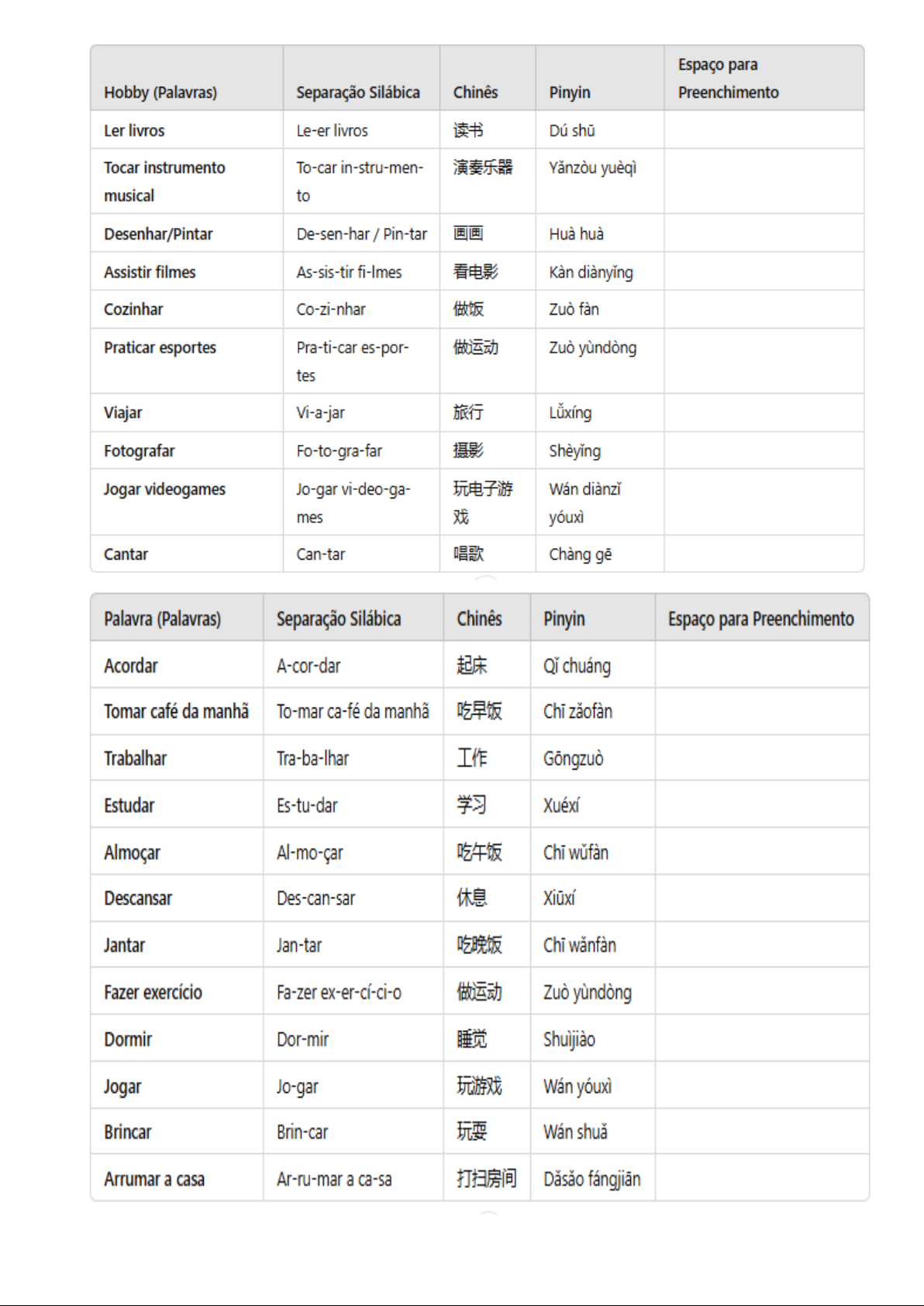 Atividade Hobbies e Atividades de Lazer em Inglês