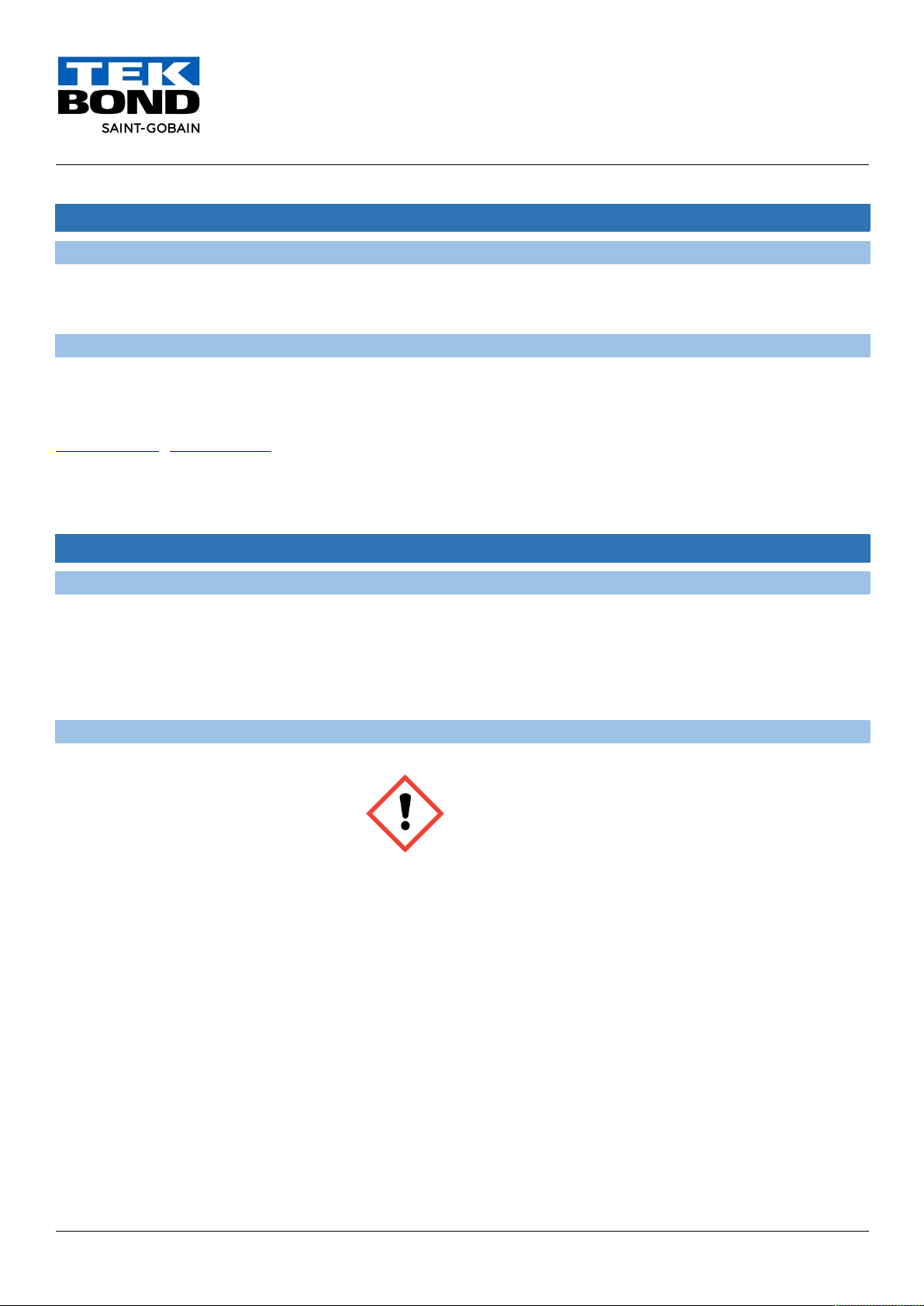 PU40FIX Ficha de Informações de Segurança de Produtos Químicos De acordo com ABNT NBR 14725-4: 2014 Data de emissão: 29/09/2020 Data de revisão: 22/02/2022 Versão: 02.2022 22/02/2022 (Data de revisão) PT (português - BR) 1/8 SEÇÃO 1: Identificação do Produto e da Empresa 1.1. Identificação do produto Nome comercial : PU40FIX Código do produto : ED-2004C Uso recomendado : Colagem e vedação 1.2. Identificação da Empresa Distribuidor Saint-Gobain do Brasil Produtos Industriais e para Construção Ltda Rodovia Régis Bittencourt 1.962 - Km 282 - DVR BUSINESS PARK EMBU - Galpão 8 06818-000 Embu das Artes SP Brasil T + 55 (11) 2246 - 7655 sac@tekbond.com - www.tekbond.com Número de emergência : WGRA - 0800-720-8000 (Em caso de emergência Química - 24 horas) CEATOX - Centro de Assistência Toxicológica: 0800-0148110 SEÇÃO 2: Identificação de perigos 2.1. Classificação da substância ou mistura Classificação de acordo com GHS BR (ABNT NBR 14725-2: 2019) Toxicidade aguda (Oral), Categoria 5 Toxicidade aguda (Dérmica), Categoria 5 Corrosão/Irritação à pele, Categoria 3 Lesões oculares graves/irritação ocular, Categoria 2A Sensibilização à pele, Categoria 1 2.2. Elementos apropriados de rotulagem GHS BR rotulagem Pictogramas de perigo (GHS BR) : Palavra de advertência (GHS BR) : Atenção Frases de perigo (GHS BR) : H303+H313 - Pode ser nocivo se ingerido ou em contato com a pele H316 - Provoca irritação moderada à pele H317 - Pode provocar reações alérgicas na pele H319 - Provoca irritação ocular grave Frases de precaução (GHS BR) : P261 - Evite inalar névoa, vapores. P264 - Lave as mãos, os antebraços e o rosto cuidadosamente após o manuseio. P272 - A roupa de trabalho contaminada não pode sair do local de trabalho. P280 - Use luvas de proteção. P302+P352 - EM CASO DE CONTATO COM A PELE: Lave com água e sabão em abundância. P305+P351+P338 - EM CASO DE CONTATO COM OS OLHOS: Enxágue cuidadosamente com água durante vários minutos. No caso de uso de lentes de contato, remova-as, se for fácil. Continue enxaguando. P312 - Caso sinta indisposição, contate um CENTRO DE INFORMAÇÃO TOXICOLÓGICA, um médico P321 - Tratamento específico (veja instruções suplementares de primeiros socorros nesse rótulo). P332+P313 - Em caso de irritação cutânea: Consulte um médico. P333+P313 - Em caso de irritação ou erupção cutânea: Consulte um médico. P337+P313 - Caso a irritação ocular persista: consulte um médico. mailto:sac@tekbond.com http://www.tekbond.com/ PU40FIX Ficha de Informações de Segurança de Produtos Químicos De acordo com ABNT NBR 14725-4: 2014 22/02/2022 (Data de revisão) PT (português - BR) 2/8 P362+P364 - Retire a roupa contaminada e lave-a antes de usá-la novamente. P501 - Descarte o conteúdo/recipiente em Posto de coleta de resíduos perigosos ou especiais. 2.3. Outros perigos que não resultam em uma classificação Nenhuma informação adicional disponível SEÇÃO 3: Composição e informações sobre os ingredientes 3.1. Substâncias Não aplicável 3.2. Misturas Nome Identificação do produto % Classificação de acordo com GHS BR (ABNT NBR 14725-2: 2019) trimetoxivinilsilano nº CAS: 2768-02-7 0 – 5 Líq. Inflamável 3, H226 Tox. Aguda 5 (Dérmica), H313 Tox. Aguda 4 (Inalação), H332 Tox. Aguda 4 (Inalação: gás), H332 Aq. Agudo 3, H402 3-aminopropiltrimetoxissilano nº CAS: 13822-56-5 0 – 5 Líq. Inflamável 4, H227 Tox. Aguda 5 (Oral), H303 Irrit. Pele 2, H315 Les. Oculares Graves 1, H318 SEÇÃO 4: Medidas de primeiros-socorros 4.1. Descrição das medidas de emergência Medidas gerais de primeiros-socorros : Procurar orientação médica imediatamente. As pessoas com problemas de hipersensibilidade não devem manipular ou serem expostas ao produto. Medidas de primeiros-socorros após inalação : Nenhuma intervenção específica é indicada porque o composto não é perigoso por inalação. Se exposto a fumos provenientes de superaquecimento ou combustão saia ao ar livre. Consulte um médico se necessário. Remova a pessoa para local ventilado e a mantenha em repouso numa posição que não dificulte a respiração. Medidas de primeiros-socorros após contato com a pele : Após contato com a pele, retirar imediatamente toda a roupa contaminada e lavar com água em abundância. Tenha cuidado, o produto pode permanecer preso debaixo da roupa, calçado ou de um relógio de pulso. Em caso de irritação ou erupção cutânea: Consulte um médico. Medidas de primeiros-socorros após contato com os olhos : EM CASO DE CONTATO COM OS OLHOS: Enxágue cuidadosamente com água durante vários minutos. No caso de uso de lentes de contato, remova-as, se for fácil. Continue enxaguando. Caso a irritação ocular persista: consulte um médico. Medidas de primeiros-socorros após ingestão : Em caso de mal estar, consulte um médico. 4.2. Sintomas e efeitos mais importantes, agudos ou tardios Sintomas/efeitos : Provoca irritação ocular. Pode ser nocivo em contato com a pele. Pode provocar reações alérgicas na pele. Provoca irritação ocular grave. Sintomas/efeitos em caso de inalação : Pode provocar irritação das vias respiratórias. Pode causar irritação no trato respiratório, espirros, tosse, sensação de queimaduras na garganta com sensação de constrição da laringe e dificuldade de respiração. Sintomas/efeitos em caso de contato com a pele : Pode provocar reações alérgicas na pele. Pode ser nocivo em contato com a pele. Provoca irritação moderada à pele. Coceira. Fissuras na pele. O contato repetido ou prolongado pode causar o ressecamento da pele. irritação (coceira, vermelhidão, formação de bolhas). Sintomas/efeitos em caso de contato com os olhos : Provoca irritação ocular grave. Ardência. vermelhidão, coceira, lágrimas. Sintomas/efeitos em caso de ingestão : Pode causar irritação no trato digestivo. Pode ser nocivo se ingerido. A ingestão pode causar ná