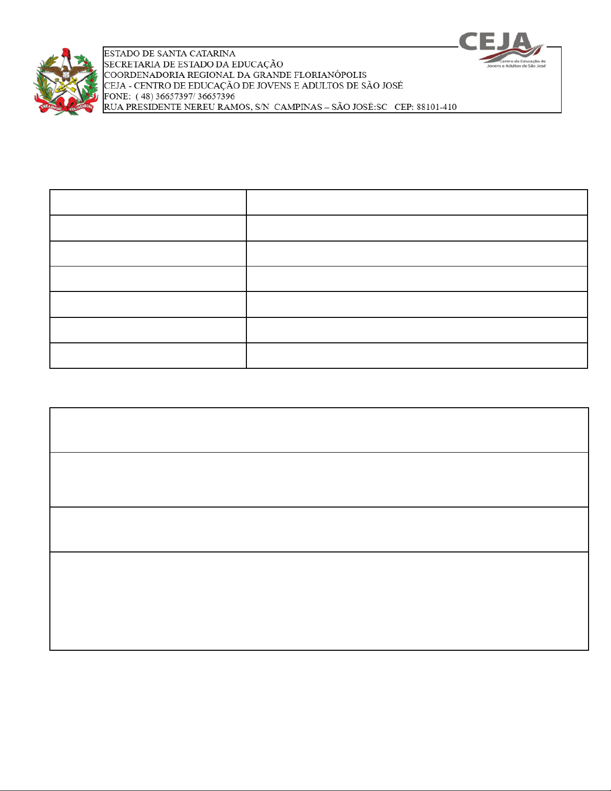 1 Planejamento Pedagógico Integrado I. Identificação Instituição de Ensino CEJA - Centro de Educação de Jovens e Adultos de São José Professor(a) Ministrante CELENUBIA LIRA DE OLIVEIRA Disciplina/ Área de conhecimento CIENCIAS DA NATUREZA E SUAS TECNOLOGIAS Série/Ano 1º SÉRIE ENSINO MÉDIO Turma(s) 402 e 398 Período 1º Semestre de 2026 Nº de Horas-Aula Totais Semanais 10 II. Objetivos Objetivos Gerais ● Compreender a importância da Física e suas aplicações no cotidiano: Os estudantes devem identificar e descrever situações do dia a dia em que os conceitos da física são aplicados, ser capazes de entender como a física influencia e molda o mundo ao seu redor, entre outros. Objetivos Específicos Desenvolver habilidades de pensamento crítico e analítico: Através da exploração e discussão dos conceitos de Ciências, os estudantes devem ser incentivados a pensar criticamente e analiticamente, a fazer conexões entre diferentes ideias e a aplicar o conhecimento adquirido em novas situações. Através de exemplos práticos e atividades interativas, os estudantes devem ser motivados a se envolverem ativamente no processo de aprendizagem e a desenvolverem um interesse duradouro pela Ciências da natureza. III. Conteúdo Programático e Habilidades 2 Unidade Temática Objeto(s) de Conhecimento Habilidade(s) Unidade 1 COMO FAZEMOS E ARGUMENTAMOS COM CIÊNCIA História e Filosofia das Ciências da Natureza − Cientistas brasileiros e catarinenses − Fontes e espaços de divulgação científica − Processos de produção do conhecimento científico − Linguagens próprias da Ciência da Natureza − Metodologia de pesquisa científica − Uso de novas tecnologias sustentáveis − Saúde e bem-estar da população negra e dos povos originários − Educação ambiental, sustentabilidade e preservação da biodiversidade: “crítica e emancipatória”, sustentabilidade e preservação e “conservação” da biodiversidade “brasileira” Carta de Belgrado − Carta da Terra − Conferência de Tbilisi − Ética e conhecimento científico (EM13CNT303)-Interpretar textos de divulgação científica que tratem de temáticas das Ciências da Natureza, disponíveis em diferentes mídias, considerando a apresentação dos dados, tanto na forma de texto como em equações, gráficos e/ou tabelas, a consistência dos argumentos e a coerência das conclusões, visando a construir estratégias de seleção de fontes confiáveis de informações.3 (EM13CNT301)-Construir questões, elaborar hipóteses, previsões e estimativas, empregar instrumentos de medição e representar e interpretar modelos explicativos, dados e/ou resultados experimentais, para construir, avaliar e justificar conclusões no enfrentamento de situações problema sob uma perspectiva científica.3 (EM13CNT302)-Comunicar, a públicos variados, em diversos contextos, resultados de análises, pesquisas e/ou experimentos, elaborando e/ou interpretando textos, gráficos, tabelas, símbolos, códigos, sistemas de classificação e equações, por meio de diferentes linguagens, mídias, tecnologias digitais de informação e comunicação (TDIC), de modo a participar de debates em torno de temas científicos e/ou tecnológicos de relevância sociocultural e ambiental, e/ou promovê-los. Unidade 2 Conhecimento (senso comum, científico, filosófico) − Teoria do Big Bang − Matéria escura − Nucleossíntese estelar − Níveis de organização da vida − Evolução histórica das teorias da gravitação e movimentos dos astros − Descrição e (EM13CNT201)-Analisar e discutir modelos, teorias e leis propostos em diferentes épocas e culturas para comparar distintas explicações sobre o surgimento e a evolução da Vida, da Terra e do Universo com as teorias científicas aceitas atualmente. 3 Unidade Temática Objeto(s) de Conhecimento Habilidade(s) ORIGEM E EVOLUÇÃO NO UNIVERSO interpretação de movimentos de translação e rotação − Visões cosmológicas de povos nativos − Teorias sobre a origem da vida − Teorias e evidências da evolução celular e da vida − História da classificação biológica − Evolução dos modelos atômicos − Estrutura da matéria e espectroscopia − Fenômenos e instrumentos ópticos − Especiação e árvores filogenéticas − Evolução do Homo sapiens − Respeito à diversidade − Direitos humanos − História da ocupação do ambiente terrestre − Visões cosmológicas de povos “nativos/originários e comunidades tradicionais” − Respeito à diversidade - étnica, biológica/ambiental, territorial, cultural, de gênero, social, linguística, religiosa, musical, entre outros. (EM13CNT208)-Aplicar os princípios da evolução biológica para analisar a história humana, considerando sua origem, diversificação, dispersão pelo planeta, e diferentes formas de interação com a natureza, valorizando e respeitando a diversidade étnica e cultural humana. Unidade 3 ESTRUTURA DA TERRA E UNIVERSO Interações fundamentais da natureza − Evolução estelar − Fusão nuclear − Causas e efeitos dos movimentos dos objetos macroscópicos e corpos celestes − Teoria da gravitação de Einstein − Evolução do universo − Origem dos elementos químicos e organização da tabela periódica − Modelos explicativos da matéria e propriedades dos elementos − Ligações químicas − Bioquímica celular − Radiações ionizantes e suas aplicações − Astrobiologia: condicionantes do surgimento e manutenção da vida *Entender como são formados os elementos químicos pela nucleossíntese das estrelas e relacionar com a variabilidade e suas características, identificando as diversas aplicações tecnológicas, assim como os fatores determinantes para o funcionamento dos processos biológicos.1 (EM13CNT209)- Analisar a evolução estelar, associando-a aos modelos de origem e distribuição dos elementos químicos no universo, compreendendo sua