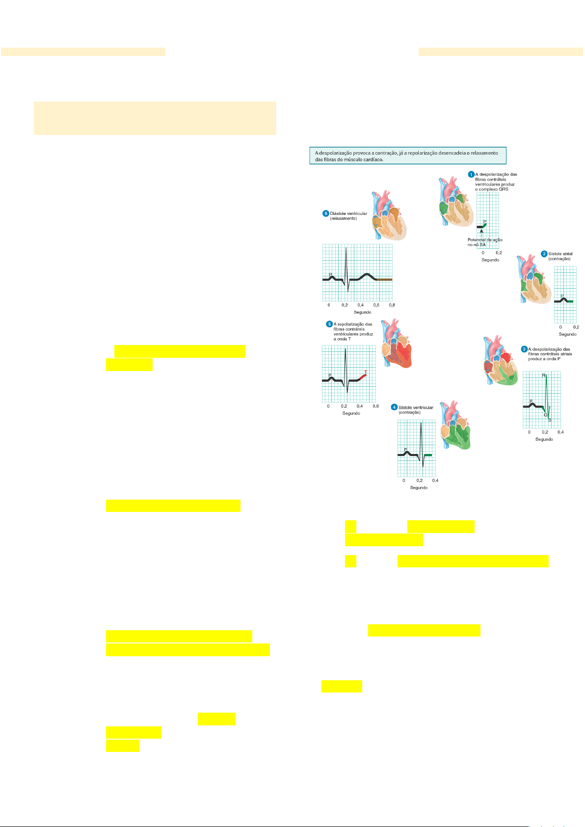 Mariana Jaques – Medicina 2 Fase (2025.2) Ciclo Cardíaco e Semiologia do Sistema Cardiovascular Normal O coração funciona como uma bomba que se enche (diástole - Relaxamento) e esvazia (sístole - Contração) Cada batimento é chamado de ciclo cardíaco Duração → Em repouso: ~0,8 segundos o 0,3 s = sístole (contração) o 0,5 s = diástole (relaxamento) Etapas do ciclo 1. Enchimento rápido (diástole inicial) o O ventrículo está relaxado o A válvula mitral/tricúspide abre → o sangue passa do átrio para o ventrículo 2. Diástase (enchimento lento) o Fluxo de sangue fica mais devagar 3. Contração atrial (sístole atrial) o O átrio “empurra” o sangue final para o ventrículo (famoso “kick atrial”) 4. Contração isovolumétrica o Ventrículo começa a contrair → válvulas atrioventriculares (mitral/tricúspide) fecham → aparece o 1º som cardíaco (S1, “tum”) o Pressão sobe, mas ainda não há saída de sangue 5. Ejeção ventricular o Quando a pressão do ventrículo supera a da aorta/artéria pulmonar, abre-se a válvula aórtica/pulmonar → o sangue é bombeado 6. Relaxamento isovolumétrico o Ventrículo relaxa → válvulas semilunares (aórtica/pulmonar) fecham → surge o 2º som cardíaco (S2, “tá”) o Tudo se fecha até que a pressão caia de novo e reabra a válvula AV → inicia outro ciclo Sons cardíacos principais o S1 (“tum”) = fechamento da mitral/tricúspide (início da sístole) o S2 (“tá”) = fechamento da aórtica/pulmonar (início da diástole) o S3 = pode ser normal em jovens/atletas, mas em adultos pode indicar falha cardíaca o S4 = quase sempre patológico (ventrículo rígido) Semiologia do Sistema Cardiovascular 1) Inspeção o Ver coloração da pele (sem cianose) o Observar veias do pescoço → não devem estar muito cheias em repouso o Procurar pulsação visível anormal no tórax 2) Palpação Habilidades Médicas – D1 Mariana Jaques – Medicina 2 Fase (2025.2) o Carótida: deve ter pulso forte, rápido e regular o Ictus cordis (ponta do coração): deve ser sentido no 5º espaço intercostal, na linha médio-clavicular, pequeno e bem localizado. o Não deve haver thrill (vibração) nem batida muito forte/larga 3) Ausculta (com estetoscópio nos 4 focos principais) o Foco aórtico: 2º espaço intercostal direito o Foco pulmonar: 2º espaço intercostal esquerdo o Foco tricúspide: 4º–5º espaço intercostal esquerdo o Foco mitral (apical): 5º espaço intercostal, linha médio-clavicular esquerda No normal: escuta-se S1 e S2 nítidos, sem sopros patológicos. Pode ter um desdobramento fisiológico de S2 na inspiração (normal) Primeira bulha (B1) o Som: “TUM” (do clássico “tum-tá”) o Início da sístole ventricular o Fechamento das válvulas atrioventriculares → mitral (esquerda) e tricúspide (direita) o Onde ouvir melhor: ápice cardíaco o Marca o começo da contração dos ventrículos o Sempre presente em corações normais Segunda bulha (B2) o Som: “TÁ” o Início da diástole ventricular o Fechamento das válvulas semilunares → aórtica e pulmonar o Onde ouvir melhor: base do coração (2º espaço intercostal direito = foco aórtico; 2º espaço intercostal esquerdo = foco pulmonar) o Pode apresentar desdobramento inspiratório normal (a válvula pulmonar fecha um pouquinho depois da aórtica na inspiração) o Sempre presente em corações normais Terceira bulha (B3) o Som: grave, baixo, lembrando um “tum-tá- tum” (ritmo de galope) o Logo após o B2, no início da diástole (fase de enchimento rápido ventricular) Mariana Jaques – Medicina 2 Fase (2025.2) o Entrada rápida de sangue no ventrículo, que gera vibração da parede ventricular o Onde ouvir melhor: ápice, com campânula, paciente em decúbito lateral esquerdo o Quando é normal: em crianças, adolescentes e atletas (coração complacente) o Quando é patológico: em adultos >40 anos → sinal de sobrecarga de volume (ex.: insuficiência cardíaca, insuficiência mitral ou aórtica, miocardiopatia dilatada) Quarta bulha (B4) o Som: grave, baixo, lembrando um “ta-tum- tá” (também chamado de galope). o Logo antes do B1, no fim da diástole (durante a contração atrial) o Contração atrial forçando sangue contra um ventrículo rígido ou com baixa complacência o Onde ouvir melhor: ápice, com campânula, paciente em decúbito lateral esquerdo o Nunca é normal o Patologias associadas: ventrículo rígido por hipertrofia ventricular (hipertensão, estenose aórtica), isquemia miocárdica, cardiomiopatia hipertrófica Semiologia do Sistema Respiratório Normal A avaliação do sistema respiratório é feita em quatro etapas clássicas da propedêutica: inspeção, palpação, percussão e ausculta Em cada uma, você observa o que é esperado no exame normal Inspeção Observar o paciente em repouso, sem tocar. Tipos de Tórax Tórax normal o Também chamado de elíptico o Mais comprido que largo o Ângulo de Charpy (entre as margens costais, na região do apêndice xifoide): ≈ 90° o Relação anteroposterior/lateral (AP/L) = 1:2 o Simetria entre os dois hemitórax 2. Tórax em tonel o Aumento do diâmetro ântero-posterior (fica quase igual ao transversal). o Ângulo de Charpy > 90° o O tórax parece “redondo”, como um barril o Associado a: DPOC (enfisema pulmonar), hiperinsuflação crônica 3. Tórax em funil (pectus excavatum) o Depressão do esterno em direção à coluna (afundado) o Pode comprimir coração e pulmões em casos graves o Pode ser congênito 4. Tórax em carena (pectus carinatum) o Proeminência do esterno para frente, como o peito de pombo o Mais raro que o excavatum o Geralmente congênito 5. Tórax cifótico o Predomínio da cifose dorsal o Alteração postural ou patológica (osteoporose, doenças reumatológicas) 6. Tórax escoliótico o Assimetria dos hemitórax por desvio lateral da coluna o Associado a escoliose o Pode prejudicar a função respiratória em cas