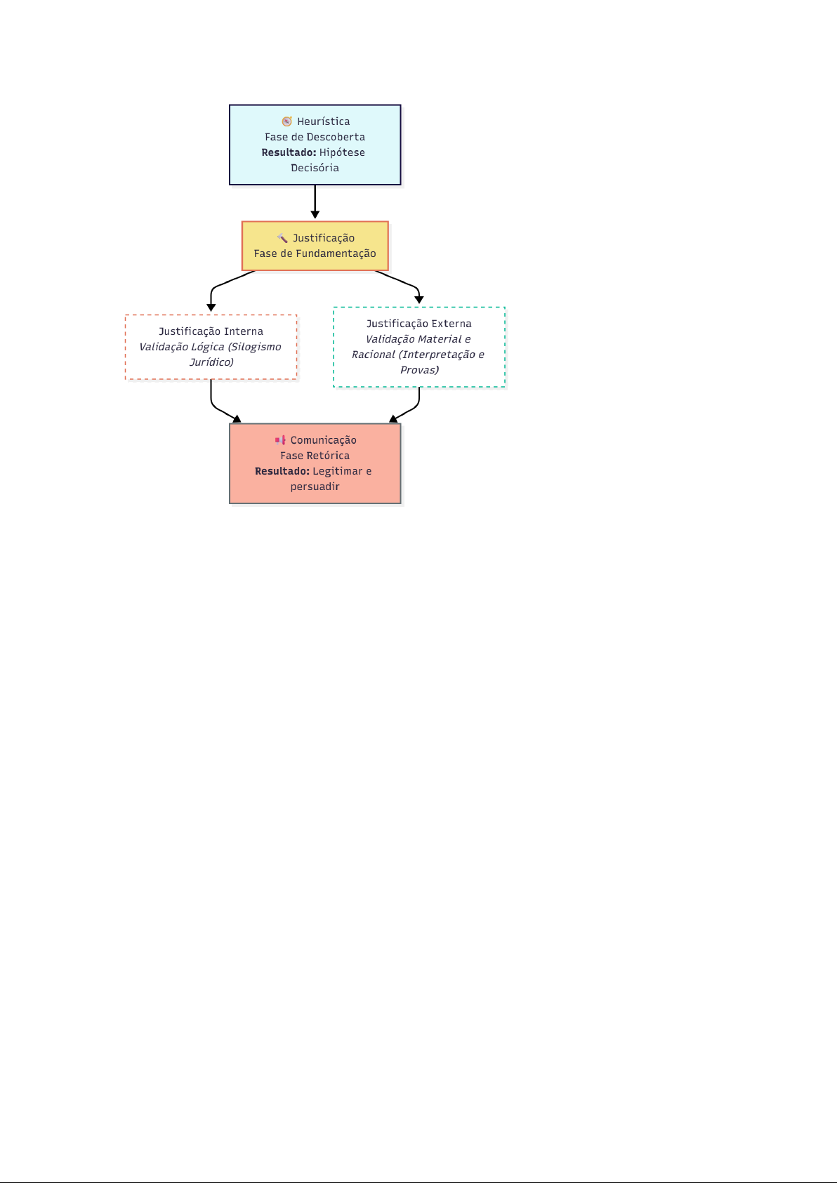 Em segundo lugar, destaca-se a sua estrutura em dois níveis de justificação, que combinam lógica e conteúdo. A justificação interna garante a correção formal do raciocínio, verificando se a conclusão (a decisão) segue logicamente das premissas (norma e fatos) por meio do silogismo jurídico. Contudo, a justificação externa é a que confere a solidez material, pois é nela que se defendem a validade da norma escolhida (o que exige interpretação) e a veracidade e adequação dos fatos apresentados (o que envolve a prova e o enquadramento jurídico).