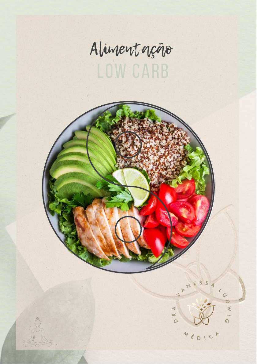 Alimentação LOW CARB Montando o seu prato LOW CARB “ C O M E R É U M A N E C E S S I D A D E M A S C O M E R C O M I N T E L I G Ê N C I A É U M A A R T E “ . Importância da ordem alimentar F i s i o l o g i c a m e n t e , c o n t r o l a o s n í v e i s d e g l i c o s e ( a ç ú c a r ) n o s a n g u e . A e s t r a t é g i a e n v o l v e i n i c i a r a s r e f e i ç õ e s n a s e g u i n t e o r d e m : I s s o a j u d a a r e d u z i r o s p i c o s d e g l i c o s e p ó s - r e f e i ç ã o , t r a z e n d o b e n e f í c i o s c o m o : m a i o r e n e r g i a , r e d u ç ã o d a f a d i g a ( c a n s a ç o ) a p ó s a s r e f e i ç õ e s , m e l h o r a d o h u m o r e m a i s s a c i e d a d e . F I B R A S ( F i b e r f o r , L i n h a ç a , P s y l l i u m , C h i a ) P Ã O , M A C A R R Ã O , A R R O Z . . F R U T A S O U D O C E S * * Alimentos para AUMENTAR O CONSUMO LOW CARB F R U T A S G O R D U R A S B O A S P E I X E S C A S T A N H A S Atum Sardinha Salmão Anchova Garoupa Truta Bacalhau Amora Mirtilo Framboesa Morango Romã Açaí Puro Abacate Limão Azeite de Oliva (para temperar) Manteiga (Ghee). Óleo de Coco Óleo de Gergelim Óleo de Abacate Óleo semente Uva Óleo semente Abóbora Ômega 3 Castanha do pará Amêndoas Macadâmia Nozes Avelã Pistache Castanha de Caju Á G U A Mínimo de 2,5 litros por dia ou 30ml/kg/dia L E G U M E S Abobrinha Beringela Brocolis Couve-flor Cenoura C H Á S Hibisco Chá Verde Tulsi Matcha Camomila Melissa Passiflora Erva Doce L E G U M E S Chuchu Pepino Beterraba Quiabo Vagem Couve Rúcula Agrião Alface Espinafre Repolho Acelga T E M P E R O S Escarola Cogumelos Aspargos Salsa Salsão Cacau Nibs Cacau Canela Gengibre Açafrão (Cúrcuma) Mirtilo De todos os tipos A N T I O X I D A N T E S V E R D U R A S V E R D U R A S CARNES Ervilha Lentilha Grão de bico Quinoa LEGUMINOSAS Folhas in natura Gengibre Açafrão (Cúrcuma) Pimenta G R Ã O S E S E M E N T E S Gergelim Abóbora Girassol Linhaça Chia Aveia Alimentos para eVITAR O CONSUMO LOW CARB A D O Ç A N T E S F A R I N H A S Se consumir, usar adoçantes de preferência: Stevia até 15gts/dia, Taumantina. O U T R O S S U C O S Consumir somente Limão ou Maracujá sem açucar Creme de leite Yogurt com sabor Bolachas Salgadinhos Conservas R E F R I G E R A N T E S De qualquer tipo L Á C T E O S Consumir com moderação e de preferência a queijos maturados (amarelos). Se conseguir evitar, melhor T E M P E R O S P R O N T O S G L Ú T E N Não consumir C O N G E L A D O S P R O N T O S Exemplo: Pizza, lasanha, risoto, carne congelada temperada.. F R I T U R A S A Ç Ú C A R E S Á L C O O L E N L A T A D O S E M B U T I D O S De qualquer tipo Se consumir prefira: Vinho Tinto uma taça Mortadela Presunto Peito de Peru Salame De qualquer tipo Se consumir: Sardinha e Atum em óleo de oliva são uma boa opção Se consumir, dê preferência: Semente de linhaça Farinha de amêndoas Farinha de coco De qualquer tipo Dicas e estratégias LOW CARB Nesta lista simples resume o que comer: Gorduras saudáveis como óleo de abacate, manteiga e óleo de coco. Folhas verdes como rúcula, espinafre e couve. Verduras com baixo teor de carboidratos que crescem acima do solo, como abobrinha, couve-flor e aspargos. Leguminosas – grão de bico, ervilha, lentilha, quinoa. Carne como carne de vaca e porco. Aves como frango e peru. Frutos do mar como peixe e marisco. Ovos. Bebidas sem açúcar como água, café e chá. Ervas e especiarias como manjericão, dill (endro) e canela. Condimentos com baixo teor de carboidratos como pimenta e mostarda. Frutas com baixo teor de carboidratos como abacates (essa é uma fruta que não precisam ser em moderação), framboesas, blueberries e coco, limão e maracujá. Nuts e sementes como amêndoas, castanha do pará, macadâmia e sementes de girassol. Farinhas de baixo carboidrato como farinha de amêndoa, farinha de coco e farinha de semente de linhaça. Dicas e estratégias LOW CARB Abaixo está uma lista de alimentos que devemos evitar: Grãos – incluindo trigo, pão, macarrão, arroz branco etc. Açúcar – incluindo açúcar refinado, doces, balas, bolos, sorvetes, chocolate, refrigerante, suco, mel, xarope de bordo, etc. Vegetais com alto teor de amido, consumir moderadamente – incluindo batatas, batata-doce, milho, rabanete, etc… Frutas com alto teor de açúcar – incluindo bananas, abacaxi, laranjas, maçãs, uvas, etc. Leite e leite com baixo teor de gordura – incluindo todo o leite de vaca (exceto creme de leite), queijo com baixo teor de gordura, etc. Óleos vegetais e de sementes – especialmente margarina, óleo de canola, óleo de milho e óleo de soja. Alimentos processados ”low carb” – isso depende dos ingredientes, por isso leia os rótulos em procura de açúcar escondido (sinônimos: xarope de glicose, sacarose, dextrose, glucose, maltodextrina, frutose..), amido e ingredientes artificiais. Alimentação LOW CARB Montando o seu prato LOW CARB Importância da ordem alimentar PÃO, MACARRÃO, ARROZ.. FRUTAS OU DOCES** Alimentos para AUMENTAR O CONSUMO LOW CARB ÁGUA CHÁS FRUTAS ANTI OXIDANTES CASTANHAS LEGUMES LEGUMES VERDURAS VERDURAS LEGUMINOSAS TEMPEROS GRÃOS E SEMENTES GORDURAS BOAS CARNES PEIXES Alimentos para eVITAR O CONSUMO LOW CARB AÇÚCARES ADOÇANTES FARINHAS GLÚTEN ENLATADOS EMBUTIDOS TEMPEROS PRONTOS CONGELADOS PRONTOS LÁCTEOS FRITURAS SUCOS OUTROS REFRIGERANTES ÁLCOOL Dicas e estratégias LOW CARB Nesta lista simples resume o que comer: Dicas e estratégias LOW CARB Abaixo está uma lista de alimentos que devemos evitar: