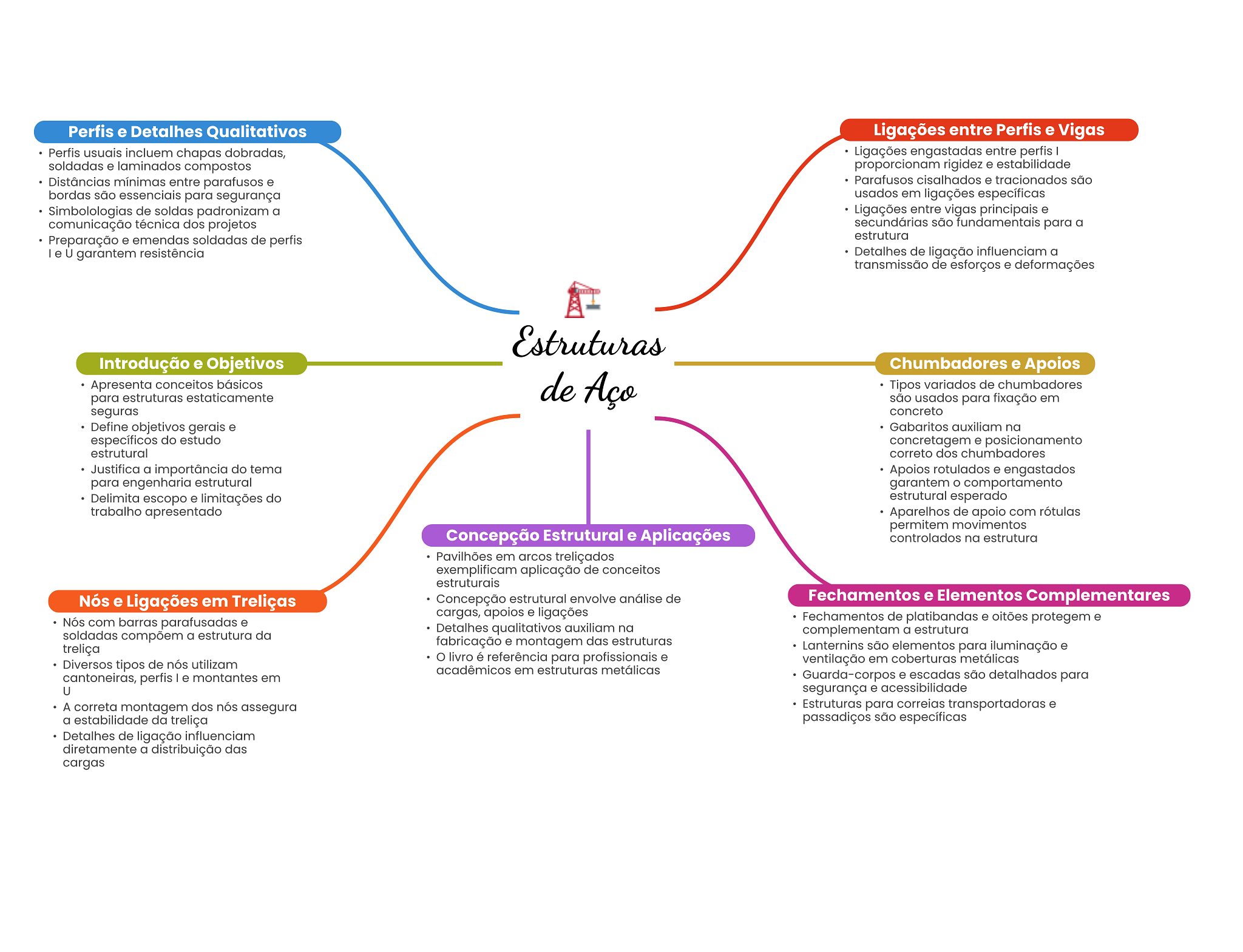 Perfis e Detalhes Qualitativos Ligações entre Perfis e Vigas Perfis usuais incluem chapas dobradas, Ligações engastadas entre perfis soldadas e laminados compostos proporcionam rigidez e estabilidade Distâncias mínimas entre parafusos e Parafusos cisalhados e tracionados são bordas são essenciais para segurança usados em ligações específicas Simbolologias de soldas padronizam a Ligações entre vigas principais e comunicação técnica dos projetos secundárias são fundamentais para a Preparação e emendas soldadas de perfis estrutura le U garantem resistência Detalhes de ligação influenciam a transmissão de esforços e deformações Estruturas Introdução e Objetivos Chumbadores e Apoios Apresenta conceitos básicos para estruturas estaticamente de Aço Tipos variados de chumbadores são usados para fixação em seguras concreto Define objetivos gerais e Gabaritos auxiliam na específicos do estudo concretagem e posicionamento estrutural correto dos chumbadores Justifica a importância do tema Apoios rotulados e engastados para engenharia estrutural garantem O comportamento Delimita escopo e limitações do estrutural esperado trabalho apresentado Aparelhos de apoio com rótulas permitem movimentos Concepção Estrutural e Aplicações controlados na estrutura Pavilhões em arcos treliçados exemplificam aplicação de conceitos estruturais Nós e Ligações em Treliças Concepção estrutural envolve análise de Fechamentos e Elementos Complementares cargas, apoios e ligações Nós com barras parafusadas e Fechamentos de platibandas e oitões protegem e Detalhes qualitativos auxiliam na soldadas compõem a estrutura da complementam a estrutura fabricação e montagem das estruturas treliça Lanternins são elementos para iluminação e livro é referência para profissionais e Diversos tipos de nós utilizam ventilação em coberturas metálicas acadêmicos em estruturas metálicas cantoneiras, perfis e montantes em Guarda-corpos e escadas são detalhados para U segurança e acessibilidade A correta montagem dos nós assegura Estruturas para correias transportadoras e a estabilidade da treliça passadiços são específicas Detalhes de ligação influenciam diretamente a distribuição das cargas