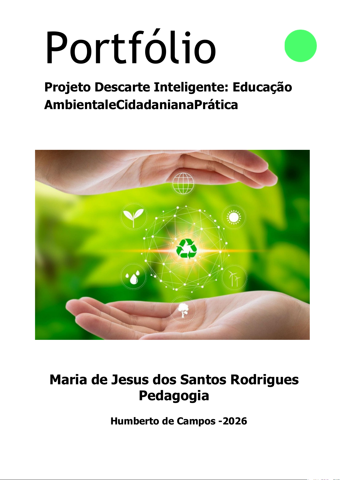 Portfólio Projeto Descarte Inteligente: Educação AmbientaleCidadanianaPrática Maria de Jesus dos Santos Rodrigues Pedagogia Humberto de Campos -2026 Introdução O crescimento do consumo de eletrônicos tem sido uma das principais características do mundo moderno. Com o avanço da tecnologia e a constante inovação, os aparelhos eletrônicos se tornaram parte essencial da vida cotidiana. Celulares, computadores, televisores e diversos outros dispositivos são substituídos com frequência, muitas vezes antes mesmo de apresentarem defeitos, o que gera um aumento significativo na produção de resíduos eletrônicos. Esse consumo acelerado contribui para a criação de um grave problema ambiental: o descarte inadequado desses materiais. O lixo eletrônico contém componentes tóxicos, como chumbo, mercúrio e cádmio, que, quando descartados de forma incorreta, contaminam o solo, a água e o ar. Pilhas e baterias, por exemplo, liberam substâncias químicas perigosas que afetam o meio ambiente e a saúde humana. Além disso, o descarte irregular também causa problemas sociais, pois em muitos locais pessoas trabalham em condições precárias na separação e reciclagem desses resíduos, sem proteção adequada. A questão do descarte correto dos eletrônicos é, portanto, um tema de grande relevância para a sociedade atual. É fundamental promover a conscientização sobre o consumo responsável e incentivar a destinação adequada desses materiais, por meio da reciclagem e de pontos de coleta específicos. Cuidar do lixo eletrônico não é apenas uma atitude ambiental, mas também um ato de responsabilidade social, essencial para garantir um futuro mais sustentável e equilibrado para o planeta. IMPACTOS O descarte incorreto de pilhas, baterias e lixo eletrônico é um dos grandes desafios da sociedade moderna. Como aumento do consumo de produtos tecnológicos, cresce também a quantidade de resíduos que contêm substâncias tóxicas e materiais de difícil decomposição. Quando esses produtos são jogados em locais inadequados, como terrenos baldios ou lixões, causam uma série de impactos negativos que afetam o meio ambiente, a economia e a sociedade como um todo. Do ponto de vista ambiental, os danos são graves e duradouros. As pilhas e baterias contêm metais pesados, como chumbo, mercúrio e cádmio, que contaminam o solo e a água, prejudicando plantas, animais e seres humanos. O lixo eletrônico, quando queimado, também libera gases poluentes que contribuem para o aquecimento global e pioram a qualidade do ar. Esse tipo de poluição é de difícil reversão e pode afetar ecossistemas inteiros por muitos anos. Os impactos sociais também são preocupantes. Em muitas regiões, pessoas de baixa renda trabalham na coleta e separação de resíduos eletrônicos sem proteção adequada, sendo expostas a substâncias tóxicas que colocam sua saúde em risco. Além disso, a falta de políticas públicas e de conscientização faz com que parte da população continue descartando esses materiais de forma incorreta, aumentando o problema. Do ponto de vista econômico, o descarte incorreto representa um desperdício de recursos valiosos. Muitos componentes presentes nos eletrônicos, como cobre, ouro e alumínio, poderiam ser reaproveitados pela indústria, gerando emprego e renda. A reciclagem adequada desses materiais reduz custos de produção, economiza energia e contribui para o desenvolvimento sustentável. Por isso, investir em coleta seletiva e educação ambiental é essencial para minimizar os impactos e transformar o lixo eletrônico em oportunidade. PESQUISA DE CAMPO Entrevista 1 Respondente: Mulher, 35 anos, funcionária de caixa, ensino médio completo. ● Você possui pilhas, baterias ou algum lixo eletrônico guardado em casa? Sim, tenho algumas pilhas velhas e um celular antigo que não uso mais. ● Como você descarta pilhas, baterias e produtos eletrônicos? Normalmente guardo até encontrar algum ponto de coleta, mas às vezes acabo jogando fora junto com o lixo comum por falta de opção. ● Você conhece algum local para destinação desses itens? Já vi caixas de coleta em algumas lojas, mas não sei se ainda existem. ● Você tem alguma sugestão de como deveria ser realizado esse descarte na região? Poderia ter mais pontos de coleta nos supermercados e escolas, porque são lugares que todo mundo frequenta. Entrevista 2 Respondente: Homem, 48 anos, repositor, ensino fundamental completo. ● Você possui pilhas, baterias ou algum lixo eletrônico guardado em casa? Sim, tenho várias pilhas e um controle remoto quebrado guardados em uma gaveta. ● Como você descarta pilhas, baterias e produtos eletrônicos? Sinceramente, não sei muito bem. Quando acumula, acabo jogando no lixo comum. ● Você conhece algum local para destinação desses itens? Não, nunca vi nenhum perto da minha casa. ● Você tem alguma sugestão de como deveria ser realizado esse descarte na região? Acho que o caminhão de coleta poderia ter um dia específico para recolher esse tipo de lixo. Conclusão: As respostas mostram que muitas pessoas acumulam pilhas, baterias e lixo eletrônico em casa por falta de informação ou de locais adequados para descarte. Embora algumas conheçam pontos de coleta, ainda há dificuldade de acesso e pouca divulgação. Isso demonstra a necessidade de ampliar os locais de recolhimento e investir em campanhas de conscientização. Supermercados, escolas e praças poderiam servir como pontos de coleta, facilitando o descarte correto e ajudando na preservação do meio ambiente. Entrevista 3 Respondente: Mulher, 28 anos, cliente, ensino superior incompleto. ● Você possui pilhas, baterias ou algum lixo eletrônico guardado em casa? Sim, tenho vários cabos, carregadores e um notebook antigo que não funciona mais. ● Como você descarta pilhas, baterias e produtos eletrônicos? Eu tento levar em lojas que têm coleta, mas às vezes é difíc