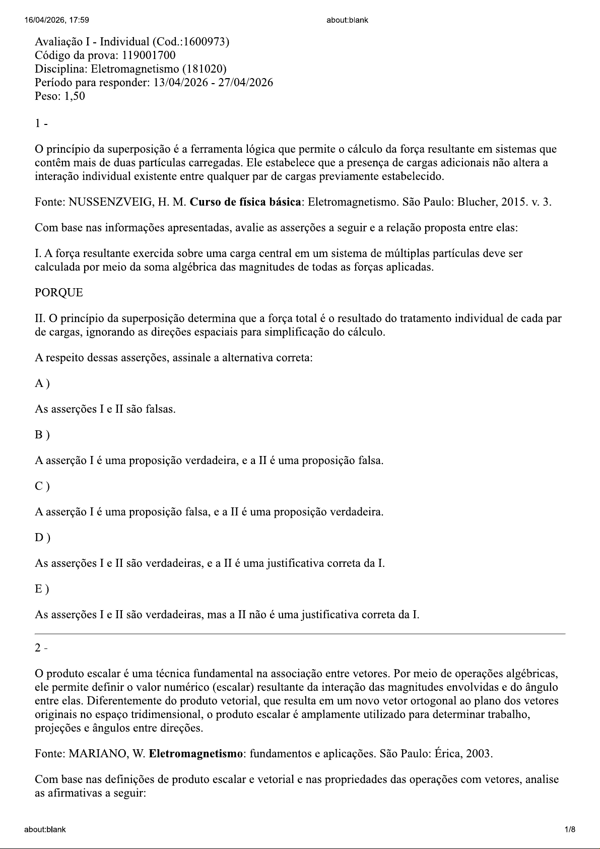 Avaliação de Eletromagnetismo