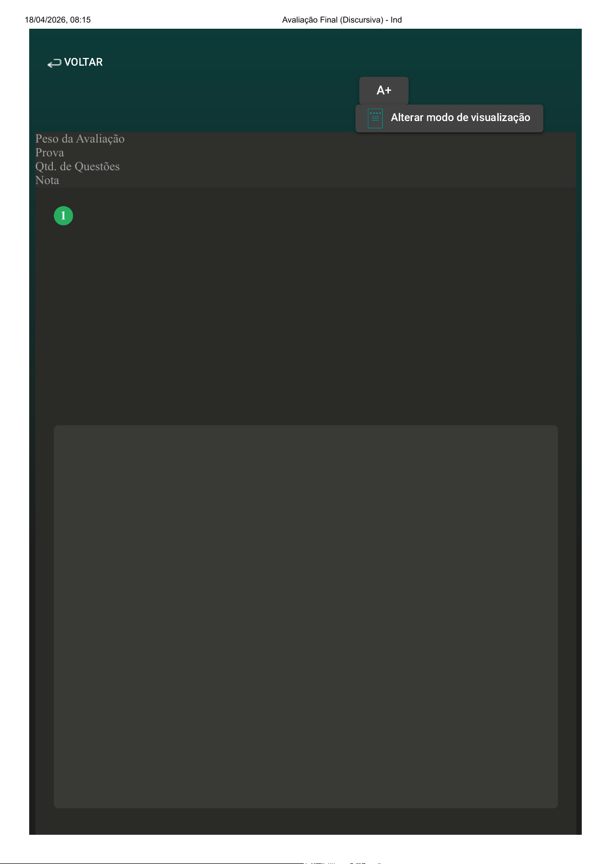 18/04/2026, 08:15 Avaliação Final (Discursiva) - Individual