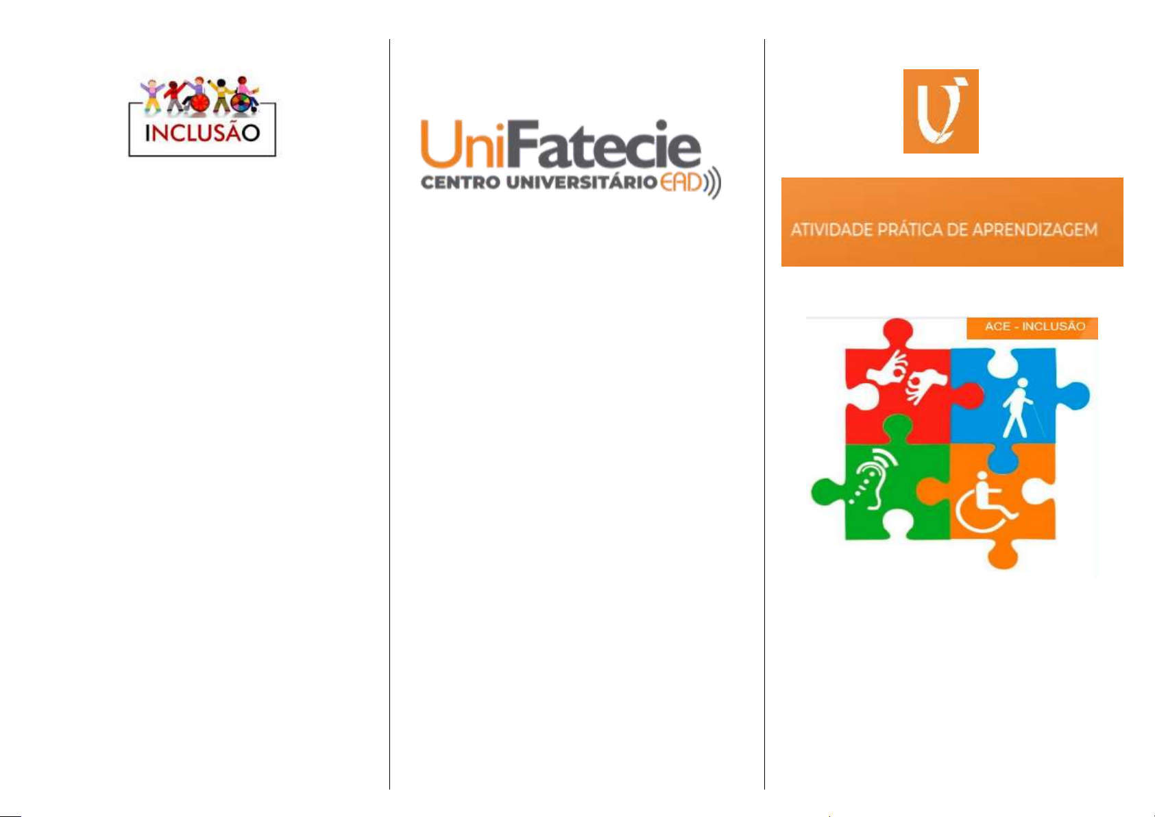 O projeto inclusão com uma equipe interdisciplinar com fonoaudióloga, psicóloga, assistente social, nutricionista à equipe de saúde e os profissionais da educação com o objetivo de comtemplá-los com atendimento e um emsino efetivo. Garantindo a sua caminhada no processo de aprendizagem e de construção das competências necessárias. Capacitando os profissionais da educação para um melhor atendimento às familias e aos alunos. DISCIPLINA: ACE – INCLUSÃO PROFESSORA MA. THAIS REGINA RAVAZI DE SOUZA ALUNO FRANCISCO NIVALDO ARAÚJO GOMES EEMTI ANTONIO PEREIRA DE FARIAS VÁRZEA DO GILÓ IPU - CEARÁ INCLUSÃO: UM ATO DE AMOR Diante do desafio de refletir sobre a importância da escola na vida de uma criança com deficiência, é fundamental destacar o papel crucial que o ambiente escolar desempenha na formação e desenvolvimento desses indivíduos. Ao absorver os ensinamentos do livro sobre educação especial, inclusão escolar e acessibilidade, percebi que a escola não é apenas um local de aprendizado acadêmico, mas um espaço crucial para a construção de habilidades sociais, emocionais e cognitivas. A inclusão escolar é um pilar fundamental, permitindo que crianças com deficiência façam parte do ambiente educacional convencional. Isso não apenas promove a diversidade, mas também enriquece a experiência de aprendizado para todos os alunos. Ao compreender as diversas formas de acessibilidade, desde adaptações curriculares até a estrutura física, reconheço que a escola desempenha um papel vital na criação de um ambiente acolhedor e igualitário. A educação especial, conforme abordada no livro, destaca a necessidade de práticas pedagógicas inclusivas, que atendam às especificidades de cada aluno. A individualidade é valorizada, e as diferenças são encaradas como riquezas a serem compartilhadas. Isso ressalta a importância de os educadores estarem preparados para lidar com a diversidade, adaptando métodos e recursos para atender às necessidades específicas de cada criança. Ao refletir sobre a proposta da atividade, fica claro que a escola é muito mais do que um local de transmissão de conhecimento; é um espaço de transformação, inclusão e desenvolvimento integral. A implementação efetiva de práticas inclusivas e a promoção da acessibilidade não apenas beneficiam as crianças com deficiência, mas enriquecem toda a comunidade escolar, preparando os alunos para conviverem em uma sociedade diversificada e igualitária. CONSTRUINDO SABERES INCLUSIVOS O objetivo desse projeto é sensibilizar a Comunidade Escolar, chamando a atenção para as potencialidades de todos e não as dificuldades, ressaltando a importância de dar oportunidade sempre e respeitar as diferenças. Compartilhar junto a equipe escolar discussões de casos, para juntos, atendermos da melhor forma, todas as crianças e famílias. Realizar campanhas de datas inclusivas nos horários de entrada ou saída dos alunos, trazendo informações a todos.