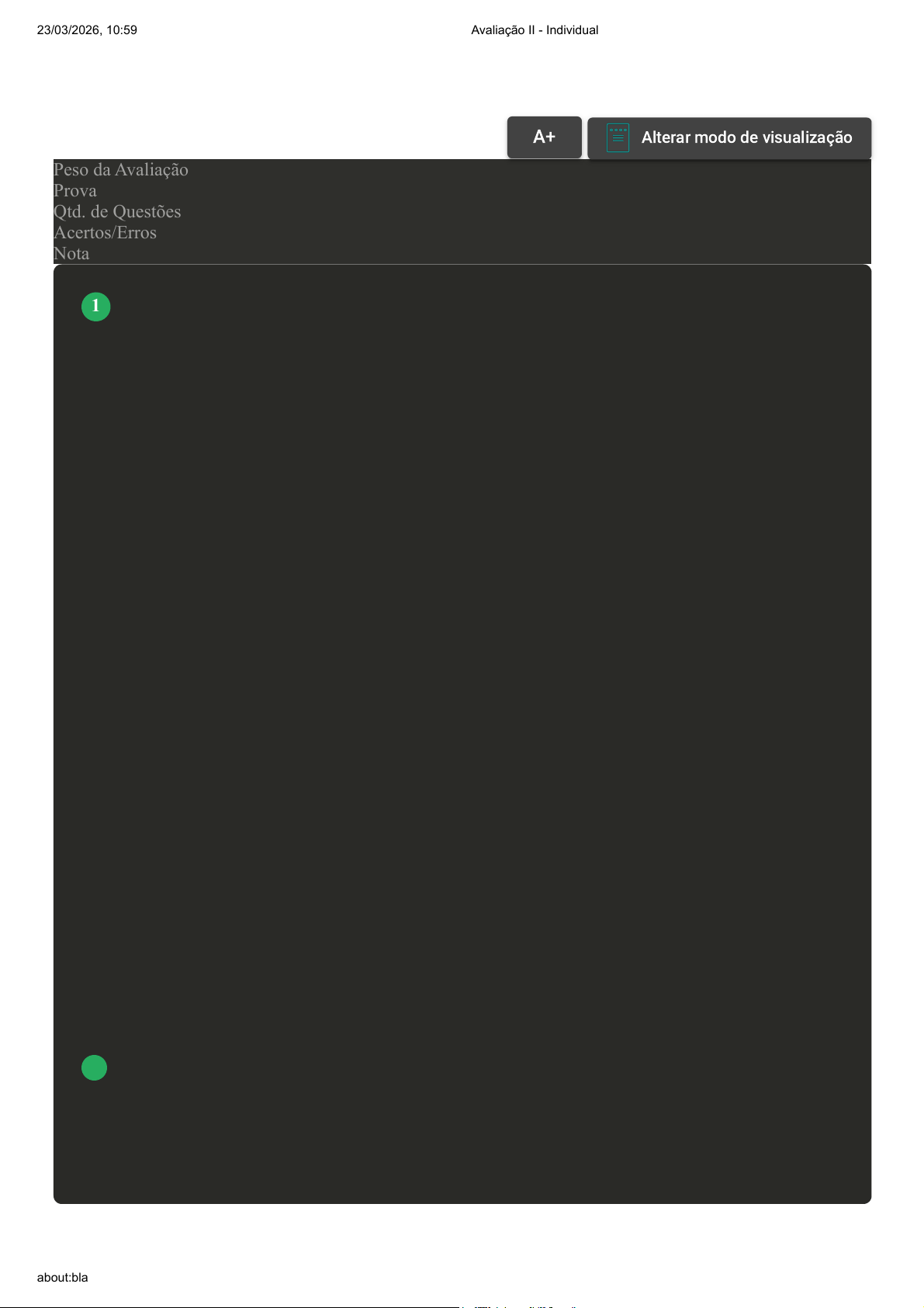 Prova Impressa GABARITO | Avaliação II - Individual (Cod.:1599442) Peso da Avaliação 1,50 Prova 116899477 Qtd. de Questões 10 Acertos/Erros 10/0 Nota 10,00 Leia o trecho na sequência. Historicamente, o controle da poluição do ar é tratado como um tema limitado à área ambiental, mas avanços do conhecimento científico evidenciam que o desafio vai além e é transversal, em áreas estratégicas, para o desenvolvimento sustentável do país. Novos estudos e novas políticas que tratam do assunto de forma mais ampla, com a abrangência de setores, como economia, saúde e clima, são fundamentais para os melhores entendimento e gestão da poluição do ar em todo o território brasileiro, em áreas urbanas e rurais (SANT’ANNA et al., 2021). Com base na classificação das medidas aplicadas para o controle da poluição atmosférica, analise as sentenças a seguir: I- Pode-se definir o controle de poluição do ar como o conjunto de ações que tem, como foco, a garantia e a manutenção da qualidade do ar, consideradas, principalmente, as fontes de emissão de poluentes. II- O grupo de medidas que engloba as tecnologias limpas, e visa, especialmente, evitar a formação, ou emissão de poluentes durante o processo produtivo, diz respeito às “medidas diretas” de controle. III- O uso de sistemas e ventilação local exaustora faz parte da aplicação de métodos diretos de controle de poluição, uma vez que impede, ou reduz, o acesso dos poluentes gerados à atmosfera, e é bloqueada, também, a dispersão. Assinale a alternativa CORRETA: Fonte: SANT’ANNA, A. et al. O estado da qualidade do ar no Brasil. 2021. Disponível em: https://www.wribrasil.org.br/sites/default/files/wri-o-estado-da-_qualidade-do-ar-no-brasil.pdf. Acesso em: 24 out. 2022. A Somente a sentença III está correta. B Somente a sentença II está correta. C As sentenças I e III estão corretas. D As sentenças I e II estão corretas. VOLTAR A+Aumentar, FonteAlterar modo de visualização 1 23/03/2026, 10:59 Avaliação II - Individual about:blank 1/7 Os modelos de dispersão atmosférica são versões simplificadas da realidade que buscam descrever o transporte atmosférico de partículas, o qual ocorre a partir da combinação de fenômenos, como difusão e advecção, que, muitas vezes, não podem ser explicados de forma experimental. Com base nos modelos de dispersão atmosférica, associe os itens, utilizando o código a seguir: I- Modelos empíricos. II- Modelos numéricos. III- Modelos semiempíricos. ( ) Requerem um grande volume de dados, pois têm a validação baseada em provas estatísticas. ( ) São modelos de fácil aplicabilidade e requerem um tempo bem menor do que os demais para uma solução. ( ) Utilizam dados experimentais obtidos a partir de análises da qualidade do ar e dos dados meteorológicos registrados no local. Assinale a alternativa que apresenta a sequência CORRETA: A II - III - I. B III - II - I. C I - II - III. D III - I - II. Amostradores passivos, quando comparados aos ativos, inclusive, monitores contínuos, apresentam as vantagens de dispensar a utilização de energia elétrica, ser de fácil manipulação e ter um baixo custo. A aplicação simultânea de um grande número desses dispositivos permite uma grande resolução espacial, adequada a mapeamentos e calibrações de modelos atmosféricos. Com base nas características dos amostradores passivos, classifique V para as sentenças verdadeiras e F para as falsas: ( ) A amostragem passiva ocorre devido à difusão das moléculas gasosas dentro do amostrador, processo descrito pela Lei de Fick. ( ) Após bem avaliados como amostradores de ar, esses equipamentos passaram a ser utilizados como monitores passivos na avaliação da exposição ocupacional. ( ) Segundo a Lei de Fick, o fluxo do gás é proporcional ao gradiente de concentração. ( ) Uma das vantagens principais dos amostradores passivos é a dependência direta do fluxo de ar, facilitada pelas condições meteorológicas. Assinale a alternativa que apresenta a sequência CORRETA: 2 3 23/03/2026, 10:59 Avaliação II - Individual about:blank 2/7 A V - F - F - V. B V - F - V - F. C F - V - F - F. D F - F - V - V. Na amostragem ativa, ocorre a sucção do ar para o dispositivo de amostragem, e com o auxílio de uma bomba a vácuo. São utilizados, ainda, medidores de fluxo de ar para a determinação do volume ou da taxa de amostragem. Com base nos amostradores ativos, classifique V para as sentenças verdadeiras e F para as falsas: ( ) Os amostradores dicotômicos são equipamentos que selecionam o tamanho das partículas a partir do uso da força centrífuga. ( ) O amostrador HIVOL pode ser adaptado para a medição de um material particulado com as frações fina e grossa. ( ) Os amostradores tipo ciclone separam as partículas grandes, não respiráveis, de partículas menores, respiráveis, por meio da força centrípeta. ( ) Chama-se “impactador em cascata” o equipamento que posiciona várias superfícies de impactação em série. Assinale a alternativa que apresenta a sequência CORRETA: A F - F - V - V. B F - V - V - V. C V - F - F - V. D V - F - V - F. O dióxido de nitrogênio é um dos poluentes mais preocupantes da troposfera, visto que participa de reações fotoquímicas que provocam a formação de ácido nítrico e ozônio, os quais são, extremamente, danosos. É possível determinar a concentração de NO2 pelo uso das amostragens ativa e passiva. A amostragem ativa ocorre com o uso de bombas, as quais controlam a vazão de ar atmosférico, enquanto a amostragem passiva funciona por meio da difusão do analito até o meio 4 5 23/03/2026, 10:59 Avaliação II - Individual about:blank 3/7 solvente, que é impregnado com um reagente seletivo ao analito (NEGRELLO et al., 2020). Com base na amostragem ativa de NO2, analise as sentenças a seguir: I- A avaliação da presença de dióxido de nitrogênio pode ser realizada pela amostrage