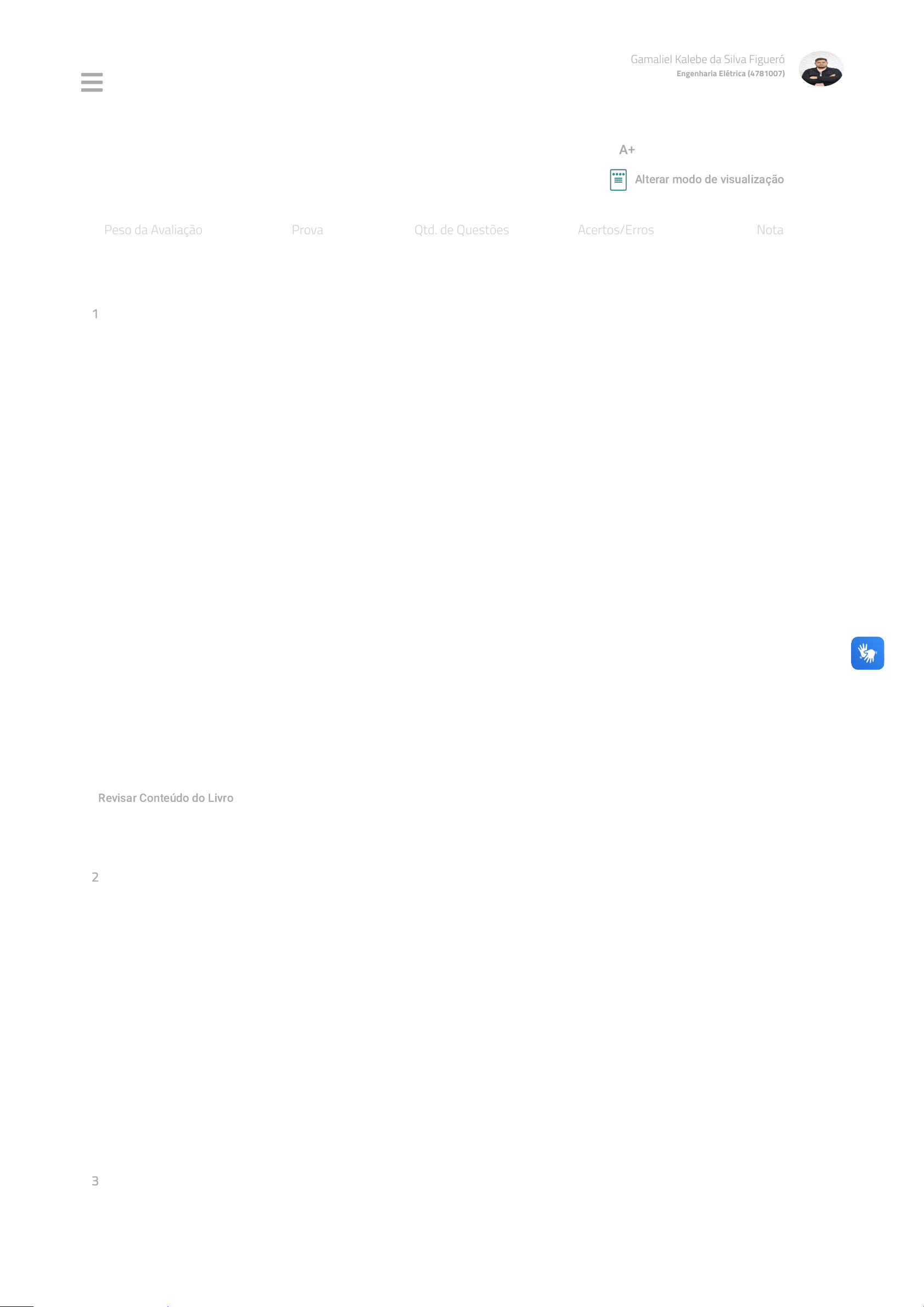 GABARITO | Avaliação Final (Objetiva) - Individual (Cod.:1594522) Peso da Avaliação 4,00 Prova 116613611 Qtd. de Questões 10 Acertos/Erros 6/4 Nota 6,00 O transporte da energia é realizado através de linhas aéreas ou subterrâneas. As linhas aéreas apresentam em geral, condutores nus, suportados por estruturas, das quais são isolados através de isoladores. As linhas subterrâneas, em geral, apresentam cabos isolados, instalados em redes de dutos. Existem dois tipos principais de linhas para transporte da energia elétrica, as de transmissão e as de distribuição. O transporte da energia gerada nas usinas até as estações transformadoras ou subestações, bem como a interligação com outros sistemas de transmissão, é realizado através das linhas de transmissão, que operam em alta tensão, permitindo que a energia seja transportada a partir de longas distâncias. Com base nas linhas de transmissão, analise as sentenças a seguir: I- As dimensões das estruturas das linhas de transmissão são definidas pela tensão de nominal de exercício, por sobretensões previstas, por flecha dos condutores, pela forma de sustentação dos condutores e pelo diâmetro dos condutores. II- A classificação das linhas de transmissão se dá pela função da estrutura nas linhas quanto à suportação de cargas verticais, cargas horizontais longitudinais e transversais. III- As linhas são projetadas para a capacidade suportar estruturas em ancoragem, estruturas para ângulos, estruturas de derivação e de transposição. IV- Para a estrutura das linhas de transmissão são utilizados materiais como alumínio e ligas para linhas inferiores a 230 kV, e essas estruturas são preferencialmente usadas em locais acidentados ou que exijam um transporte menos convencional. Assinale a alternativa CORRETA: A As sentenças II, III e IV estão corretas. B As sentenças I, II e IV estão corretas. C As sentenças I e IV estão corretas. D As sentenças I, II e III estão corretas. A matriz energética compreende o conjunto de recursos disponíveis para realizar todas as atividades do dia a dia, não somente a eletricidade, mas também todas as fontes de energia utilizadas como, por exemplo, os combustíveis que abastecem os veículos. Já a matriz elétrica compreende apenas o conjunto dos recursos disponíveis para a geração de energia elétrica, ou seja, pode-se concluir que a matriz energética engloba a matriz elétrica. Sobre a matriz energética e a matriz elétrica brasileira, assinale a alternativa CORRETA: A A matriz energética do Brasil, utiliza mais fontes renováveis do que no resto do mundo, mesmo que o consumo de energia não renovável seja maior do que o de renováveis. B A matriz energética brasileira é uma das menos renováveis do mundo industrializado. C O Nordeste e o Sul são os maiores produtores de energia eólica do país. No entanto, a energia solar é pouco difundida mundialmente devido ao alto custo e a baixa eficiência associada a este tipo de energia. D Em termos mundiais, o Brasil emite mais gases de efeito estufa por habitante do que a maioria das nações do mundo. Inicialmente no setor elétrico brasileiro, as empresas eram verticalizadas e, dessa forma, eram responsáveis por todas as etapas para o suprimento da demanda de energia elétrica. Entretanto, no Novo Modelo, tornaram-se claras as funções de cada empresa do setor. Sobre as distribuidoras, classifique V para as sentenças verdadeiras e F para as falsas: VOLTAR A+Aumentar, Fonte Alterar modo de visualização 1 Revisar Conteúdo do Livro 2 3 Gamaliel Kalebe da Silva Figueró Engenharia Elétrica (4781007) ( ) Atualmente, o Brasil possui 63 concessionárias e 38 permissionárias, sob controle dos estados. ( ) As distribuidoras podem adquirir energia elétrica por meio de leilões, nos quais as geradoras são escolhidas consoante a preferência da distribuidora. ( ) Cada distribuidora, permissionária e/ou autorizada, informa ao MME a quantidade de energia elétrica para o atendimento dos seus consumidores. ( ) Os consumidores pequenos, são atendidos pelas empresas de distribuição de energia elétrica e configuram a última etapa da cadeia. ssinale a alternativa que apresenta a sequência correta: A F, V, F, V. B V, F, F, V. C F, F, V, F. D V, V, F, V. E V, F, V, F. O conceito de qualidade de energia elétrica está associado às alterações que podem ocorrer no sistema elétrico. Entre os problemas que afetam a qualidade de energia, estão as flutuações de tensão e corrente, distorções harmônicas e baixo fator de potência. A respeito das principais falhas no sistema de distribuição, classifique V para as sentenças verdadeiras e F para as falsas: ( ) Os indicadores DRP e DRC estão relacionados à qualidade do serviço de distribuição. ( ) As harmônicas são causadas pela relação não linear entre tensão e corrente de algumas cargas e consistem em deformações periódicas nessas formas de onda. ( ) A assimetria das redes provoca desequilíbrios de tensão, ainda que não haja desequilíbrios de corrente. Assinale a alternativa que apresenta a sequência correta: A F, F, V. B V, V, V. C F, V, F. D F, V, V. E V, F, V. Os cabos condutores aéreos usados em linhas de transmissão têm evoluído nos últimos 130 anos, tanto no que diz respeito aos materiais, quanto às formas. Os materiais condutores evoluíram do cobre para o alumínio, por motivação de preço, devido à abundancia do metal na crosta terrestre. Os materiais mecanicamente resistentes evoluíram do cobre para o aço e, mais recentemente, para nanomateriais em cerâmicas e polímeros. Os materiais mecanicamente resistentes foram combinados aos materiais condutores para melhorar o desempenho mecânico dos cabos suspensos, aumentando os vãos de suspensão dos cabos. Para o pleno funcionamento das linhas de transmissão, os condutores são ditos como elementos ativos e fundamentais; portanto, o dimensionamento e a espe