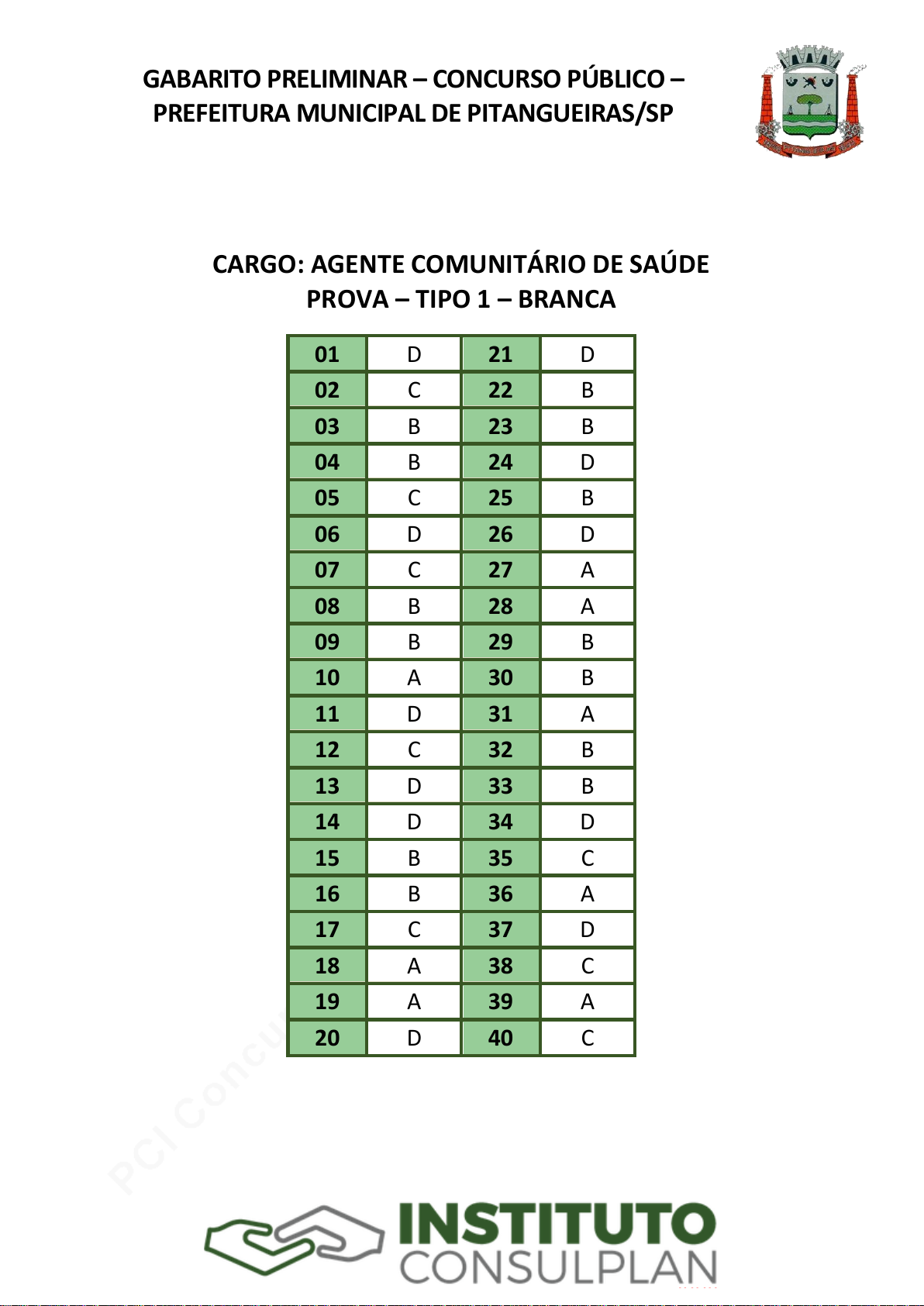 pcimarkpci MjgwNDo2ZmU4OjAxYzI6NzcwMDoxMWI1Ojg0NDU6MDY5OTo5MmVi:TW9uLCAyMCBBcHIgMjAyNiAxNzozMTo0MyAtMDMwMA== www.pciconcursos.com.br GABARITO PRELIMINAR – CONCURSO PÚBLICO – PREFEITURA MUNICIPAL DE PITANGUEIRAS/SP CARGO: AGENTE COMUNITÁRIO DE SAÚDE PROVA – TIPO 1 – BRANCA 01 D 21 D 02 C 22 B 03 B 23 B 04 B 24 D 05 C 25 B 06 D 26 D 07 C 27 A 08 B 28 A 09 B 29 B 10 A 30 B 11 D 31 A 12 C 32 B 13 D 33 B 14 D 34 D 15 B 35 C 16 B 36 A 17 C 37 D 18 A 38 C 19 A 39 A 20 D 40 C pcimarkpci MjgwNDo2ZmU4OjAxYzI6NzcwMDoxMWI1Ojg0NDU6MDY5OTo5MmVi:TW9uLCAyMCBBcHIgMjAyNiAxNzozMTo0MyAtMDMwMA== www.pciconcursos.com.br GABARITO PRELIMINAR – CONCURSO PÚBLICO – PREFEITURA MUNICIPAL DE PITANGUEIRAS/SP CARGO: AGENTE PREVIDENCIÁRIO PROVA – TIPO 1 – BRANCA 01 D 21 D 02 C 22 B 03 B 23 B 04 B 24 D 05 C 25 B 06 D 26 D 07 C 27 A 08 B 28 A 09 B 29 B 10 A 30 B 11 D 31 C 12 C 32 A 13 D 33 D 14 D 34 B 15 B 35 A 16 B 36 A 17 C 37 B 18 A 38 C 19 A 39 A 20 D 40 D pcimarkpci MjgwNDo2ZmU4OjAxYzI6NzcwMDoxMWI1Ojg0NDU6MDY5OTo5MmVi:TW9uLCAyMCBBcHIgMjAyNiAxNzozMTo0MyAtMDMwMA== www.pciconcursos.com.br GABARITO PRELIMINAR – CONCURSO PÚBLICO – PREFEITURA MUNICIPAL DE PITANGUEIRAS/SP CARGO: ASSISTENTE SOCIAL PROVA – TIPO 1 – BRANCA 01 B 21 C 02 B 22 B 03 D 23 D 04 D 24 D 05 A 25 B 06 A 26 B 07 B 27 C 08 D 28 D 09 B 29 D 10 B 30 B 11 C 31 A 12 B 32 A 13 A 33 A 14 D 34 C 15 D 35 C 16 B 36 C 17 B 37 B 18 A 38 A 19 A 39 D 20 D 40 B pcimarkpci MjgwNDo2ZmU4OjAxYzI6NzcwMDoxMWI1Ojg0NDU6MDY5OTo5MmVi:TW9uLCAyMCBBcHIgMjAyNiAxNzozMTo0MyAtMDMwMA== www.pciconcursos.com.br GABARITO PRELIMINAR – CONCURSO PÚBLICO – PREFEITURA MUNICIPAL DE PITANGUEIRAS/SP CARGO: AUXILIAR DE CIRURGIÃO DENTISTA PROVA – TIPO 1 – BRANCA 01 D 21 D 02 C 22 B 03 B 23 B 04 B 24 D 05 C 25 B 06 D 26 D 07 C 27 A 08 B 28 A 09 B 29 B 10 A 30 B 11 D 31 D 12 C 32 D 13 D 33 A 14 D 34 D 15 B 35 B 16 B 36 B 17 C 37 A 18 A 38 B 19 A 39 A 20 D 40 C pcimarkpci MjgwNDo2ZmU4OjAxYzI6NzcwMDoxMWI1Ojg0NDU6MDY5OTo5MmVi:TW9uLCAyMCBBcHIgMjAyNiAxNzozMTo0MyAtMDMwMA== www.pciconcursos.com.br GABARITO PRELIMINAR – CONCURSO PÚBLICO – PREFEITURA MUNICIPAL DE PITANGUEIRAS/SP CARGO: CIRURGIÃO DENTISTA ESF PROVA – TIPO 1 – BRANCA 01 B 21 C 02 B 22 B 03 D 23 D 04 D 24 D 05 A 25 B 06 A 26 D 07 B 27 C 08 D 28 B 09 B 29 D 10 B 30 A 11 C 31 B 12 B 32 D 13 A 33 C 14 D 34 B 15 D 35 D 16 B 36 D 17 B 37 B 18 A 38 C 19 A 39 B 20 D 40 B pcimarkpci MjgwNDo2ZmU4OjAxYzI6NzcwMDoxMWI1Ojg0NDU6MDY5OTo5MmVi:TW9uLCAyMCBBcHIgMjAyNiAxNzozMTo0MyAtMDMwMA== www.pciconcursos.com.br GABARITO PRELIMINAR – CONCURSO PÚBLICO – PREFEITURA MUNICIPAL DE PITANGUEIRAS/SP CARGO: DENTISTA PROVA – TIPO 1 – BRANCA 01 B 21 C 02 B 22 B 03 D 23 D 04 D 24 D 05 A 25 B 06 A 26 D 07 B 27 C 08 D 28 B 09 B 29 D 10 B 30 A 11 C 31 B 12 B 32 D 13 A 33 C 14 D 34 D 15 D 35 B 16 B 36 C 17 B 37 B 18 A 38 D 19 A 39 B 20 D 40 B pcimarkpci MjgwNDo2ZmU4OjAxYzI6NzcwMDoxMWI1Ojg0NDU6MDY5OTo5MmVi:TW9uLCAyMCBBcHIgMjAyNiAxNzozMTo0MyAtMDMwMA== www.pciconcursos.com.br GABARITO PRELIMINAR – CONCURSO PÚBLICO – PREFEITURA MUNICIPAL DE PITANGUEIRAS/SP CARGO: DESENHISTA PROJETISTA PROVA – TIPO 1 – BRANCA 01 D 21 D 02 C 22 B 03 B 23 B 04 B 24 D 05 C 25 B 06 D 26 D 07 C 27 A 08 B 28 A 09 B 29 B 10 A 30 B 11 D 31 A 12 C 32 B 13 D 33 C 14 D 34 A 15 B 35 C 16 B 36 B 17 C 37 B 18 A 38 A 19 A 39 D 20 D 40 B pcimarkpci MjgwNDo2ZmU4OjAxYzI6NzcwMDoxMWI1Ojg0NDU6MDY5OTo5MmVi:TW9uLCAyMCBBcHIgMjAyNiAxNzozMTo0MyAtMDMwMA== www.pciconcursos.com.br GABARITO PRELIMINAR – CONCURSO PÚBLICO – PREFEITURA MUNICIPAL DE PITANGUEIRAS/SP CARGO: EDUCADOR FÍSICO PROVA – TIPO 1 – BRANCA 01 B 21 C 02 B 22 B 03 D 23 D 04 D 24 D 05 A 25 B 06 A 26 D 07 B 27 C 08 D 28 B 09 B 29 D 10 B 30 A 11 C 31 C 12 B 32 A 13 A 33 B 14 D 34 D 15 D 35 D 16 B 36 A 17 B 37 B 18 A 38 C 19 A 39 C 20 D 40 A pcimarkpci MjgwNDo2ZmU4OjAxYzI6NzcwMDoxMWI1Ojg0NDU6MDY5OTo5MmVi:TW9uLCAyMCBBcHIgMjAyNiAxNzozMTo0MyAtMDMwMA== www.pciconcursos.com.br GABARITO PRELIMINAR – CONCURSO PÚBLICO – PREFEITURA MUNICIPAL DE PITANGUEIRAS/SP CARGO: ENFERMEIRO PADRÃO PROVA – TIPO 1 – BRANCA 01 B 21 C 02 B 22 B 03 D 23 D 04 D 24 D 05 A 25 B 06 A 26 D 07 B 27 C 08 D 28 B 09 B 29 D 10 B 30 A 11 C 31 C 12 B 32 D 13 A 33 C 14 D 34 B 15 D 35 D 16 B 36 C 17 B 37 D 18 A 38 C 19 A 39 B 20 D 40 C pcimarkpci MjgwNDo2ZmU4OjAxYzI6NzcwMDoxMWI1Ojg0NDU6MDY5OTo5MmVi:TW9uLCAyMCBBcHIgMjAyNiAxNzozMTo0MyAtMDMwMA== www.pciconcursos.com.br GABARITO PRELIMINAR – CONCURSO PÚBLICO – PREFEITURA MUNICIPAL DE PITANGUEIRAS/SP CARGO: ENGENHEIRO CIVIL PROVA – TIPO 1 – BRANCA 01 B 21 C 02 B 22 B 03 D 23 D 04 D 24 D 05 A 25 B 06 A 26 B 07 B 27 C 08 D 28 D 09 B 29 D 10 B 30 B 11 C 31 B 12 B 32 B 13 A 33 B 14 D 34 B 15 D 35 A 16 B 36 C 17 B 37 D 18 A 38 A 19 A 39 D 20 D 40 C pcimarkpci MjgwNDo2ZmU4OjAxYzI6NzcwMDoxMWI1Ojg0NDU6MDY5OTo5MmVi:TW9uLCAyMCBBcHIgMjAyNiAxNzozMTo0MyAtMDMwMA== www.pciconcursos.com.br GABARITO PRELIMINAR – CONCURSO PÚBLICO – PREFEITURA MUNICIPAL DE PITANGUEIRAS/SP CARGO: FARMACÊUTICO PROVA – TIPO 1 – BRANCA 01 B 21 C 02 B 22 B 03 D 23 D 04 D 24 D 05 A 25 B 06 A 26 D 07 B 27 C 08 D 28 B 09 B 29 D 10 B 30 A 11 C 31 D 12 B 32 B 13 A 33 D 14 D 34 A 15 D 35 C 16 B 36 B 17 B 37 D 18 A 38 B 19 A 39 C 20 D 40 D pcimarkpci MjgwNDo2ZmU4OjAxYzI6NzcwMDoxMWI1Ojg0NDU6MDY5OTo5MmVi:TW9uLCAyMCBBcHIgMjAyNiAxNzozMTo0MyAtMDMwMA== www.pciconcursos.com.br GABARITO PRELIMINAR – CONCURSO PÚBLICO – PREFEITURA MUNICIPAL DE PITANGUEIRAS/SP CARGO: FISCAL DE OBRAS PROVA – TIPO 1 – BRANCA 01 D 21 D 02 C 22 B 03 B 23 B 04 B 24 D 05 C 25 B 06 D 26 D 07 C 27 A 08 B 28 A 09 B 29 B 10 A 30 B 11 D 31 D 12 C 32 A 13 D 33 D 14 D 34 D 15 B 35 C 16 B 36 B 17 C 37 B 18 A 38 A 19 A 39 C 20 D 40 C pcimarkpci MjgwNDo2ZmU4OjAxYzI6NzcwMDoxMWI1Ojg0NDU6MDY5OTo5MmVi:TW9uLCAyMCBBcHIgMjAyNiAxNzozMTo0MyAtMDMwMA== www.pciconcursos.com.br GABARITO PRELIMINAR – CONCURSO PÚBLICO – PREFEITURA MUNICIPAL DE PITANGUEIRAS/SP CARGO: FISCAL AMBIENTAL PROVA – TIPO 1 – BRANCA 01 B 21 C 02 B 22 B 03 D 23 D 04 D 24 D 