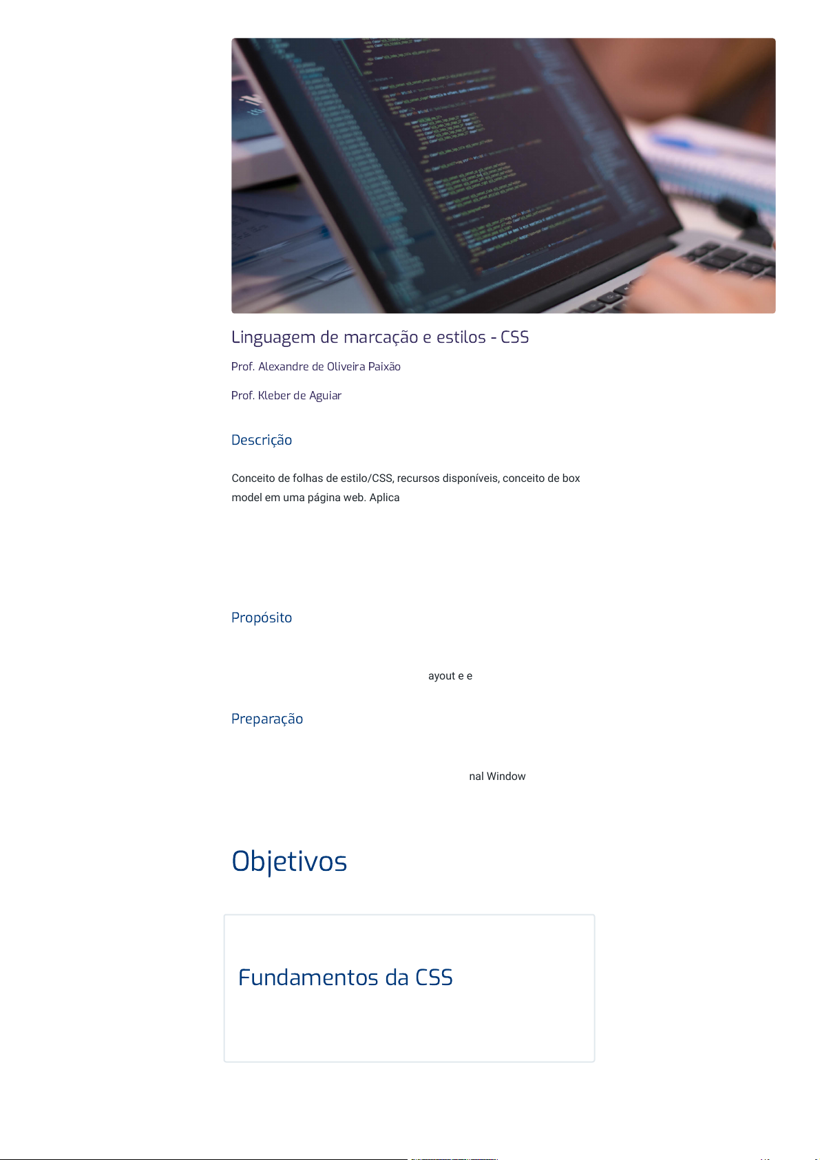 model em uma página web. Aplicação de CSS a boxes em uma página